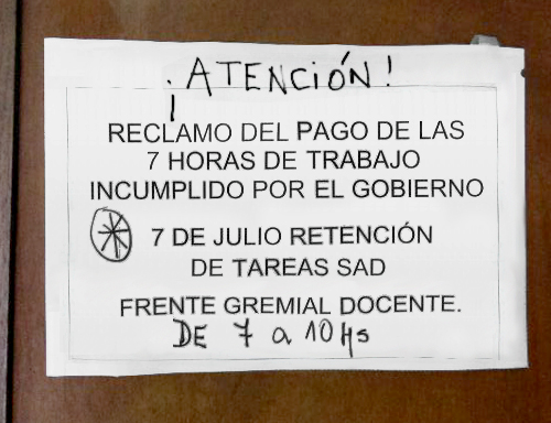 Con alto acatamiento hoy se está llevando adelante la medida de acción de retención de tareas de la Secretaría de Asuntos Docentes, Secretarios de Jefatura y representantes de Tribunales Centrales y Descentralizados por el pago efectivo de las siete horas de trabajo. En función del rechazo a la última propuesta realizada por el Gobierno de la Provincia de Buenos Aires, que si bien ahora contempla a los cuatro sectores en debate, tiene diferencias muy fuertes hacia su interior.