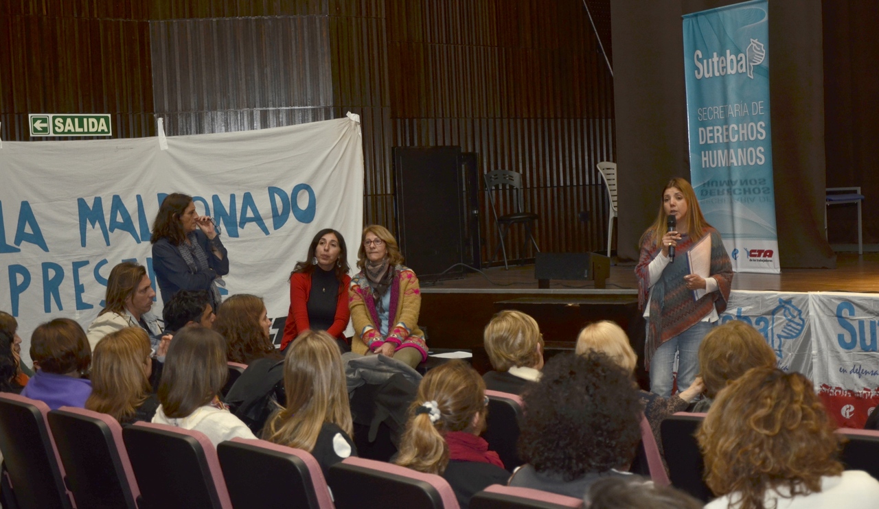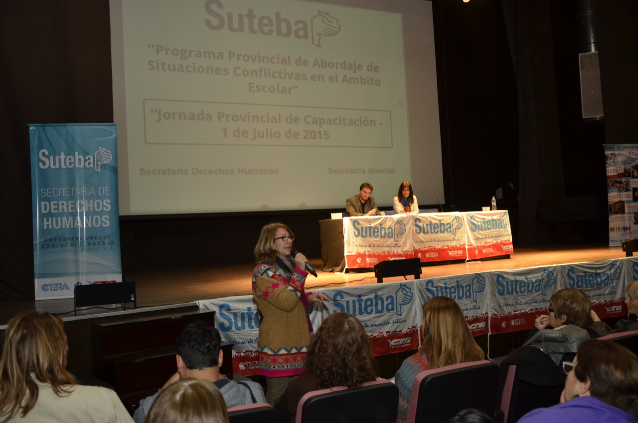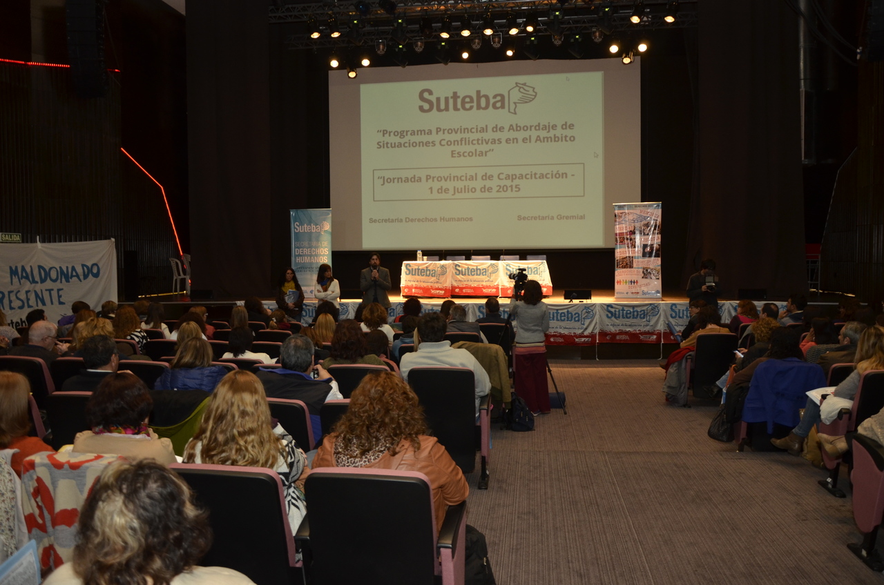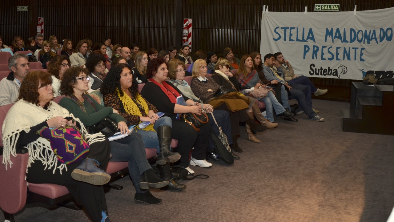 El encuentro se llevó a cabo en la UMET (Universidad Metropolitana para la Educación y el Trabajo), su rector Nicolás Trotta, agradeció la presencia del sindicato y elogió el trabajo de formación que lleva adelante SUTEBA. Luego, la Secretaria de DDHH del SUTEBA, Rosana Merlos dió la bienvenida a los cientos de compañeros de toda la provincia y expresó: "La Secretaría de DDH tiene una larga historia que desemboca, entre otras propuestas en el Programa de Abordaje Situaciones Conflictivas en la escuela. Una historia en la que Stella Maldonado está presente con toda la fuerza de sus convicciones. En este sentido quiero destacar que este encuentro es fundamental para la consolidación de propuestas y el trabajo a partir de la experiencia de cada uno de ustedes. Es a partir de toda esta historia que nos proponemos avanzar para canalizar y generar espacios de articulación que luego se transformen en un Acuerdo Paritario por medidas de Reparación y Resguardo para docentes, alumnos y la comunidad educativa en general."