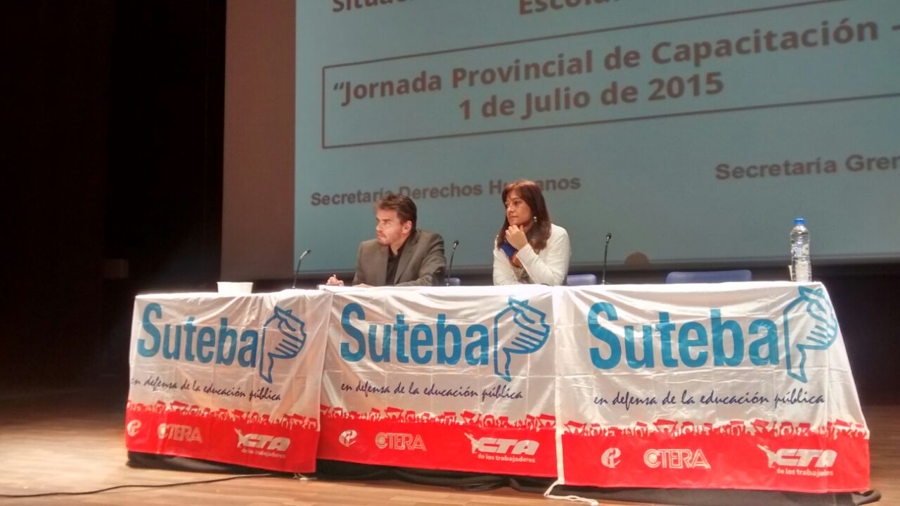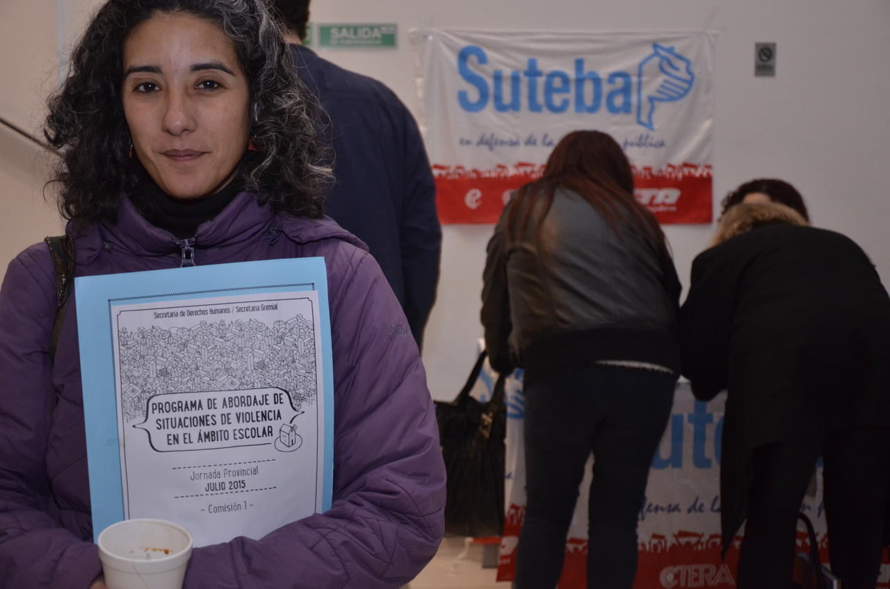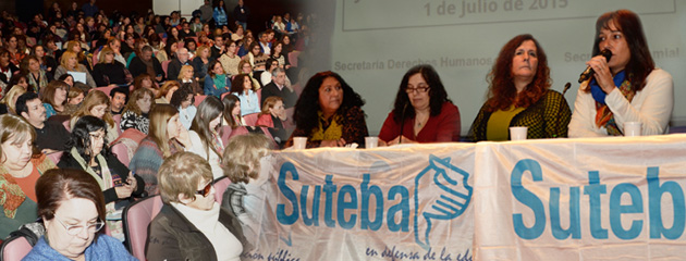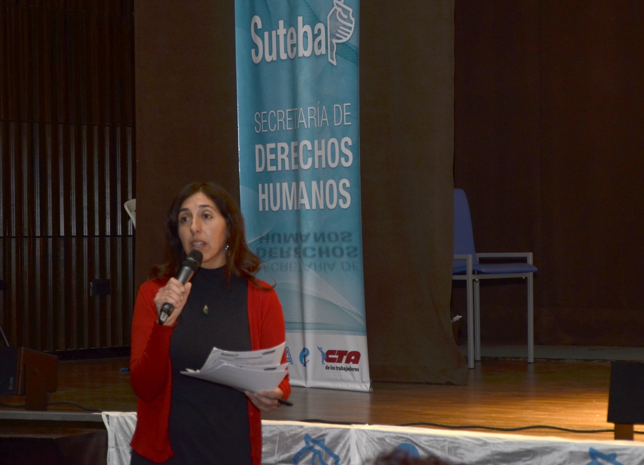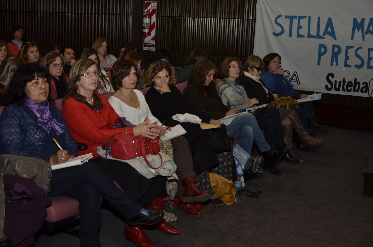 El encuentro se llevó a cabo en la UMET (Universidad Metropolitana para la Educación y el Trabajo), su rector Nicolás Trotta, agradeció la presencia del sindicato y elogió el trabajo de formación que lleva adelante SUTEBA. Luego, la Secretaria de DDHH del SUTEBA, Rosana Merlos dió la bienvenida a los cientos de compañeros de toda la provincia y expresó: "La Secretaría de DDH tiene una larga historia que desemboca, entre otras propuestas en el Programa de Abordaje Situaciones Conflictivas en la escuela. Una historia en la que Stella Maldonado está presente con toda la fuerza de sus convicciones. En este sentido quiero destacar que este encuentro es fundamental para la consolidación de propuestas y el trabajo a partir de la experiencia de cada uno de ustedes. Es a partir de toda esta historia que nos proponemos avanzar para canalizar y generar espacios de articulación que luego se transformen en un Acuerdo Paritario por medidas de Reparación y Resguardo para docentes, alumnos y la comunidad educativa en general."