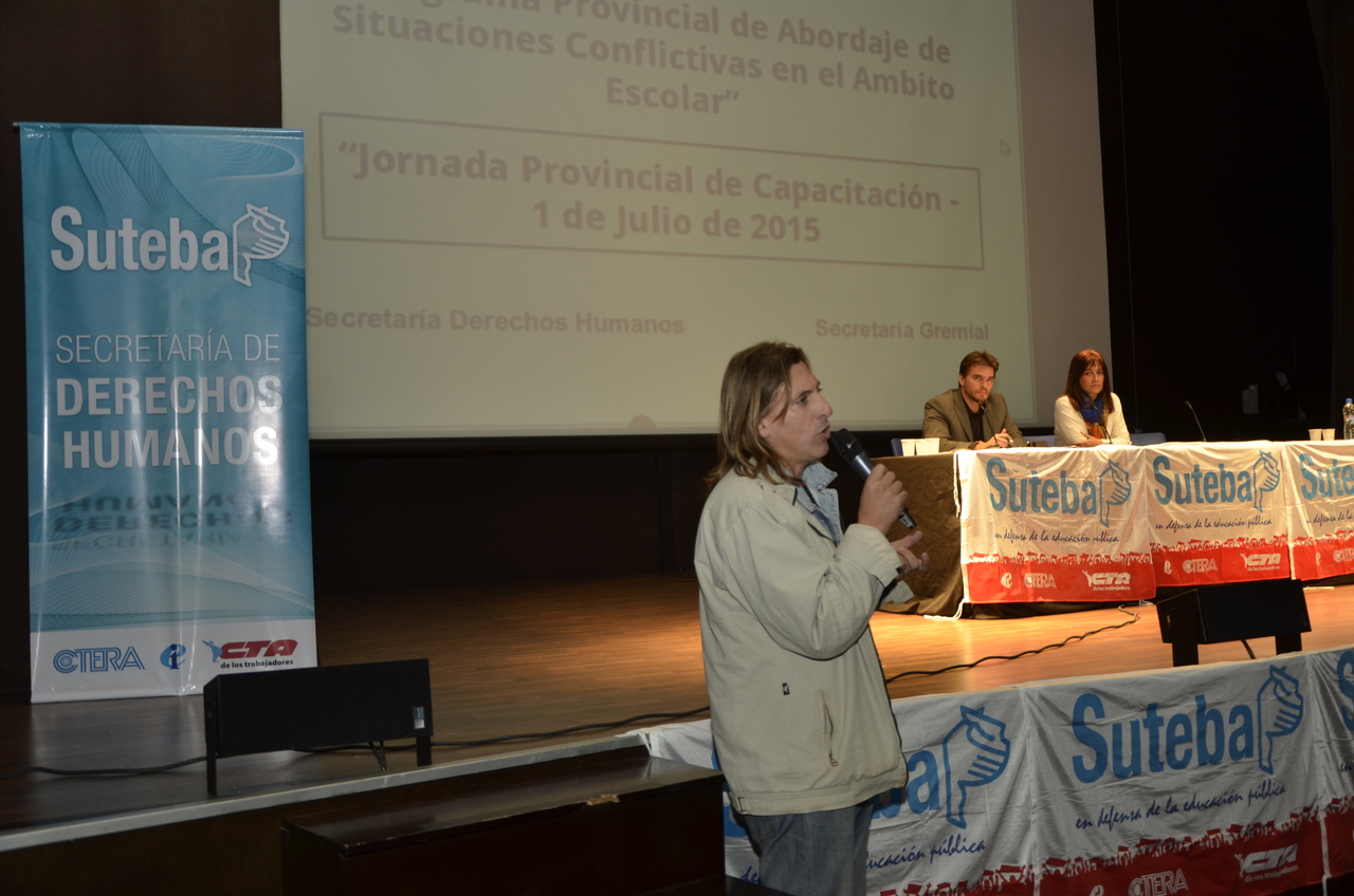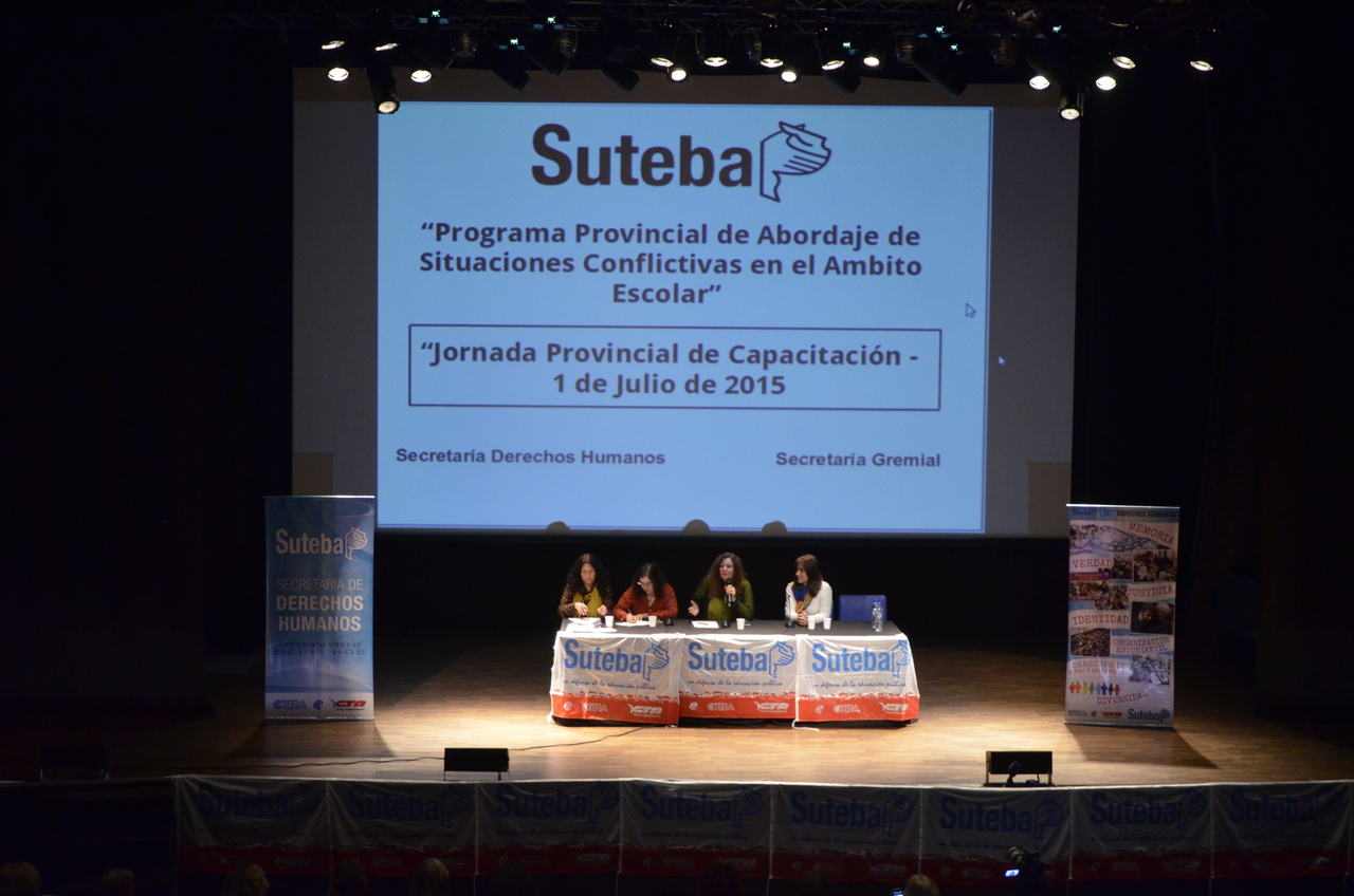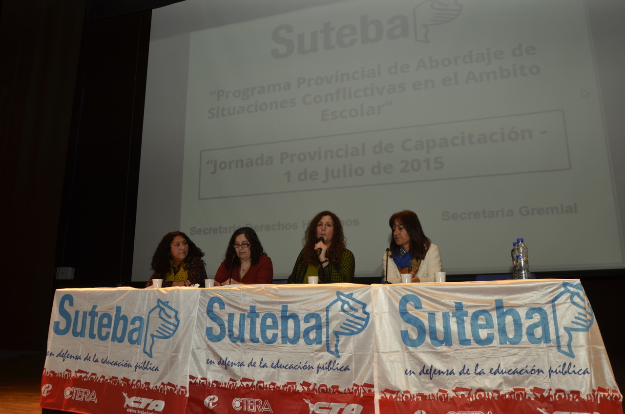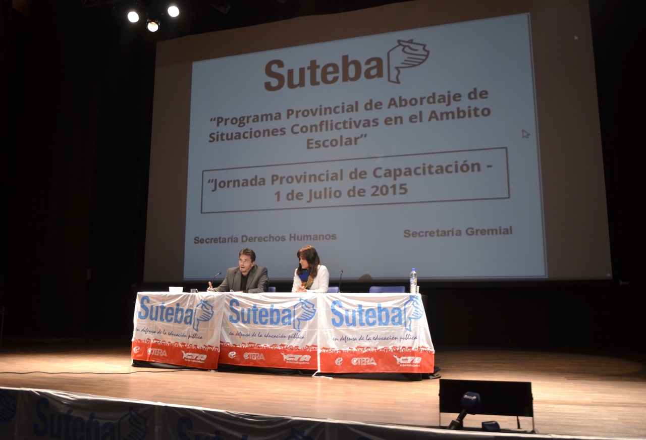 El miércoles 1º de julio se desarrolló la jornada a nivel provincial de capacitación del "Programa de Abordaje de Situaciones Conflictivas en el Ámbito Escolar" que el SUTEBA, a partir de la Secretaría de DDHH, en conjunto con la Secretaría Gremial y de Salud, organizó en la sede de la Universidad Metropolitana para la Educación y el Trabajo (UMET).