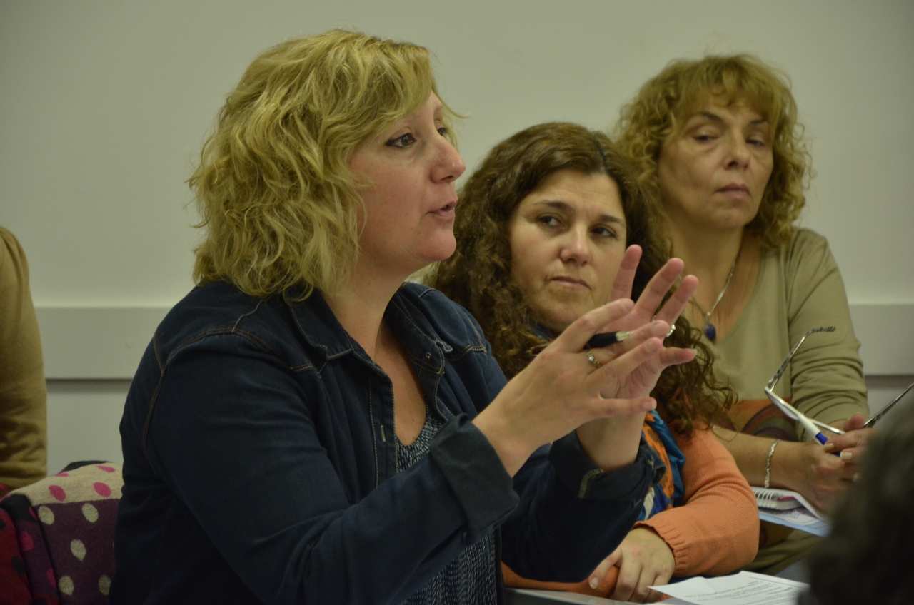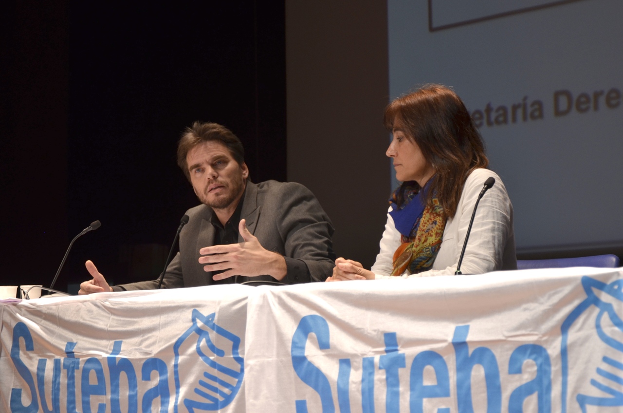 Por la tarde los compañeros se agruparon para realizar trabajos en comisiones con el fin de realizar aportes sobre los temas propuestos. Luego el Licenciado Gabriel Brener, Subsecretario de Equidad y Calidad Educativa del Ministerio de Educación de la Nación estuvo a cargo de la conferencia:"Construcción de herramientas y estrategias para la anticipación de situaciones de conflicto en la escuela". Espacio en el que expresó " Hablar de situaciones conflictivas en la escuela no es mala palabra ni retroceder, sino pensar en la escuela como un lugar clave de construcción de ciudadanía democrática. En estas horas es prioritario ligar la discusión de la herramienta de abordaje, las Políticas Públicas en Educación, con la profundización de las Políticas de inclusión. Estos son tiempos de extremo cuidado de lo conquistado como se ha hecho históricamente desde los sindicatos docentes".