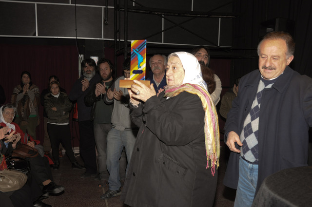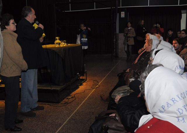 Tras sus palabras, y en medio de un ruidoso aplauso, la presidenta de la Asociación, Hebe de Bonafini, recibió de manos del Secretario de la Central un presente en homenaje. "Esto se lo entregamos solamente a Cristina y a Néstor Kirchner, se lo vamos a entregar a Evo Morales, se lo entregamos a Lula, a Chávez y se lo entregamos a la familia de Mariano Ferreyra, a la viuda de Fuentealba y al hijo de Felipe Vallese", añadió Yasky.