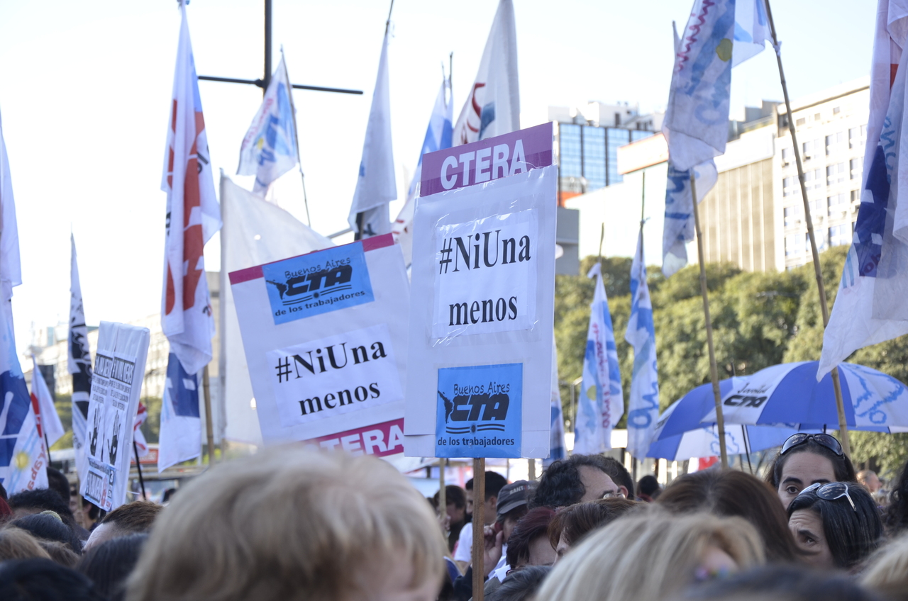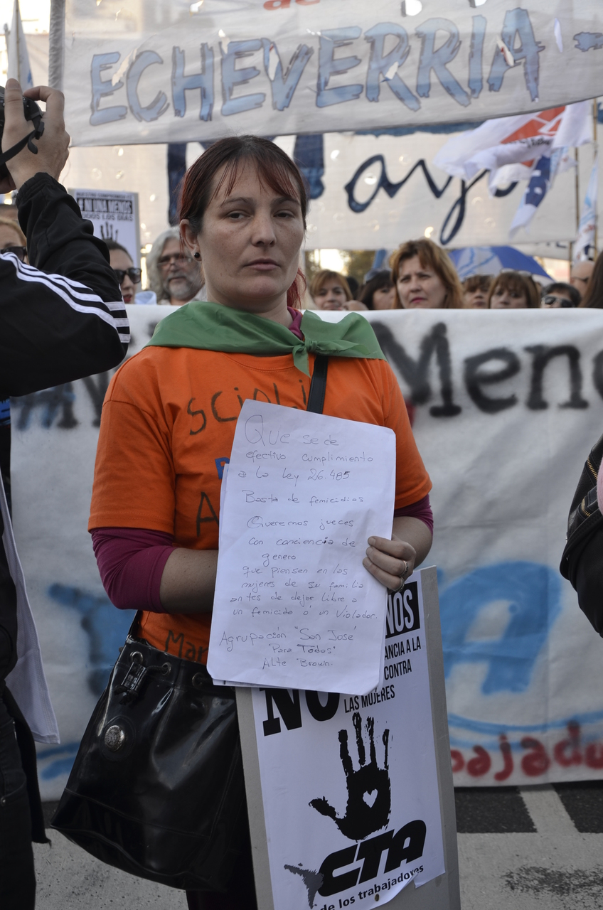 Asimismo, la Secretaria de DDHH de CTA Provincia de Buenos Aires, María Reigada, dijo: "Hoy al tema de la igualdad de género se le está dando una visibilidad muy importante, la sociedad comienza a responder a partir de la muerte de tantas mujeres. Todos estamos confluyendo en esto que es un grito por "Ni Una Menos", pero también decimos que hay que avanzar en proyectos y leyes que tienen que estar en plena vigencia, por lo que vamos a exigirle a los jueces y fiscales que se tienen que hacer cargo y buscar a los verdaderos culpables de la violencia de género y el femicidio".