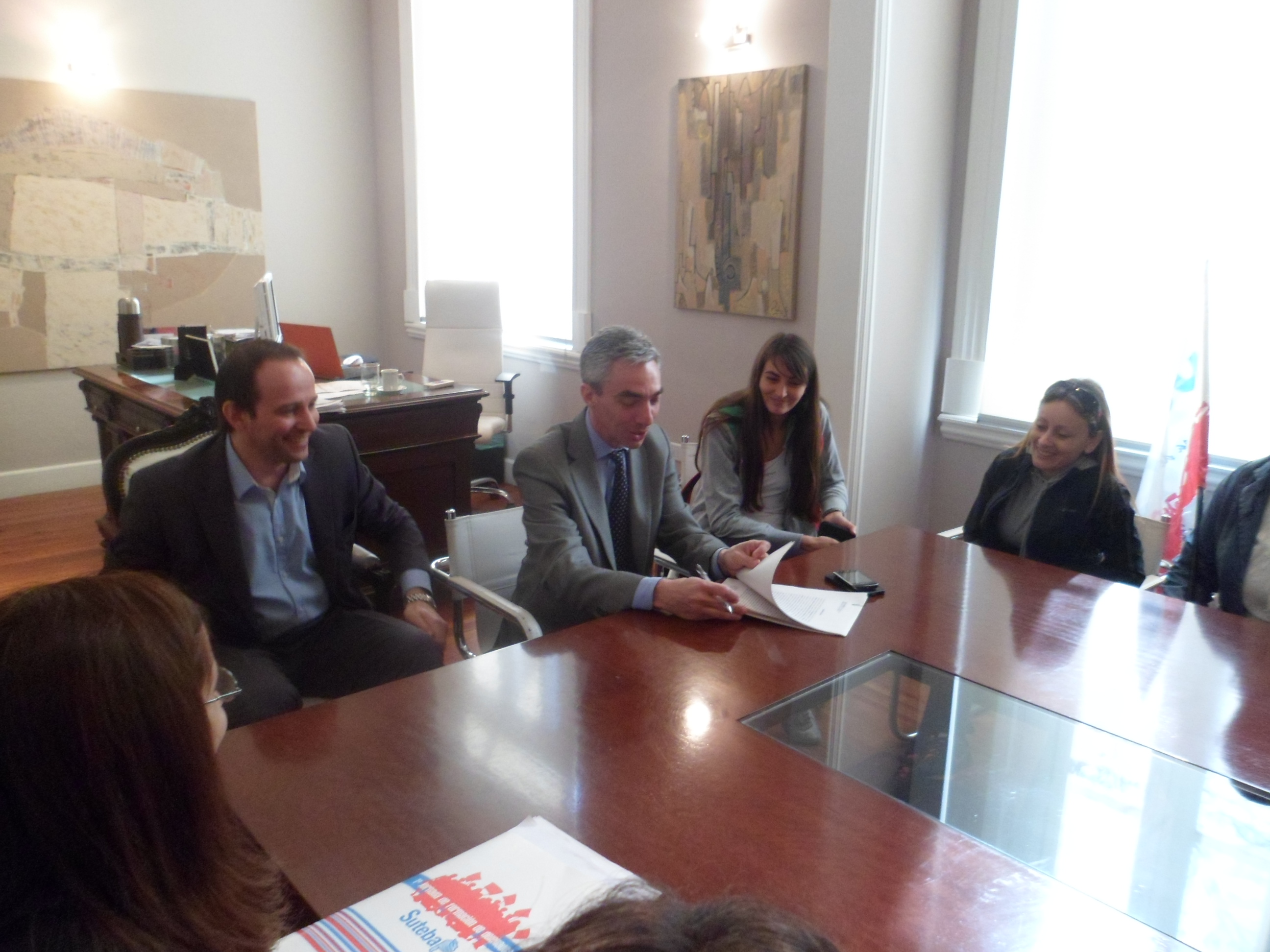 El miércoles 11 de septiembre, los compañeros de la la Cooperativa de Vivienda y Consumo de los Trabajadores de la Educación de Buenos Aires (COOPTEBA), acompañados por los integrantes del Consejo Ejecutivo del SUTEBA Junín y varios afiliados, firmaron con el Intendente Mario Meoni y el Secretario de Gobierno Mauro Gorer la toma de posesión de 26 lotes de terrenos fiscales destinados a la construcción de viviendas del Plan N°1.