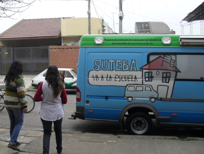 La actividad fue organizada y coordinada por la Conducción de SUTEBA Lanús, junto a Intersecretarías y la Responsable Gremial del Centro de Atención Primaria de esta localidad. Con el objetivo de reforzar la presencia del sindicato en cada rincón de la provincia de Buenos Aires, la Campaña SUTEBA va a la Escuela se hizo presente en dos establecimientos de Villa Caraza. El Secretario Adjunto de la seccional anticipó la llegada de la UMP a las autoridades de ambos colegios, explicando en qué consisten las acciones de los Programas Preventivos de Salud, entregando material explicativo, afiches y folletos. De esta manera, se generaron las condiciones ideales para la participación de los maestros y profesores.