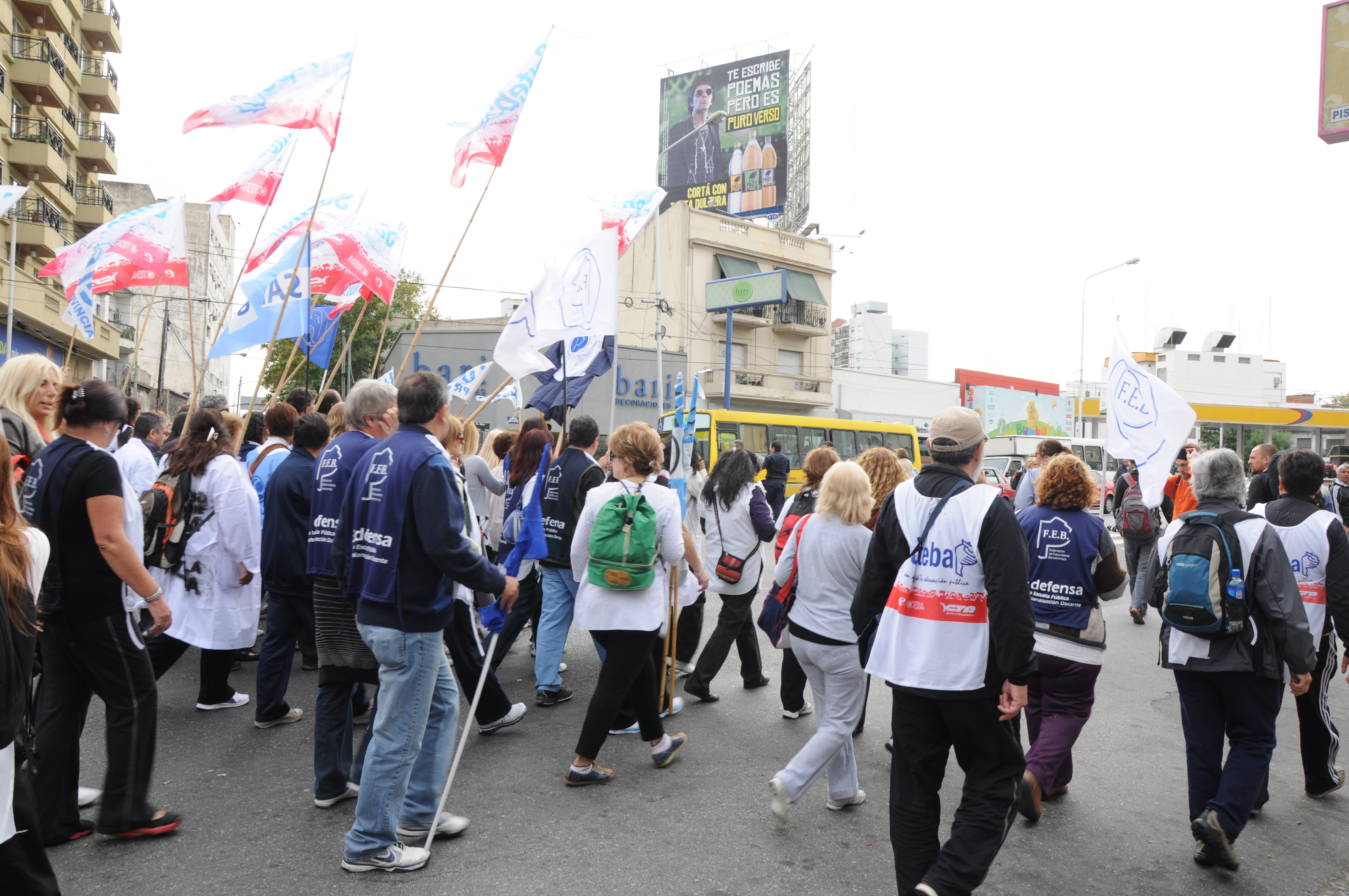 13/03/13 El Frente Gremial Docente Bonaerense (SUTEBA, AMET, FEB, SADOP y UDA) comenzó la “Caminata y Caravana por la Escuela Pública” en reclamo de salarios dignos, por mayor inversión en educación, por edificios escolares aptos para enseñar y aprender, por el normal funcionamiento de los comedores escolares (sin bajar la calidad ni los cupos), por el normal funcionamiento del IOMA y el pago de los aportes patronales a la misma, por Asignaciones Familiares para todos los trabajadores y para que no haya más cortes en el Transporte Escolar.