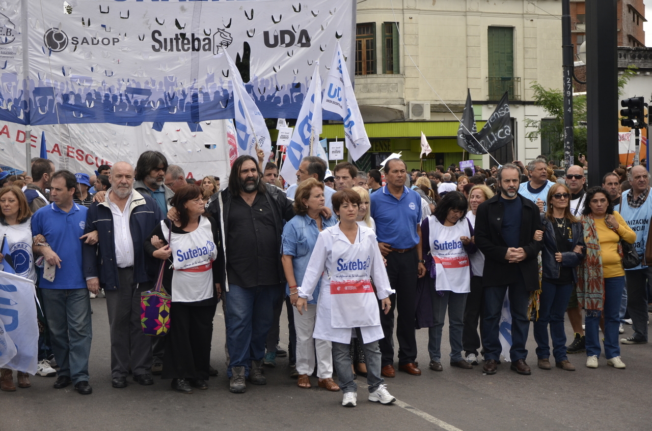Durante el acto frente a la gobernación hablaron Roberto Baradel, Secretario General de SUTEBA; Mirta Petrocini, Presidenta de la FEB; y Jorge Doval, Secretario General de AMET. Además, el respetuoso silencio de los Trabajadores de la Educación escuchando a los oradores y respondiendo con consignas, hacía pensar que se estaba estableciendo un diálogo entre los oradores y los presentes, en el que todos podían dar su opinión y ser escuchados.