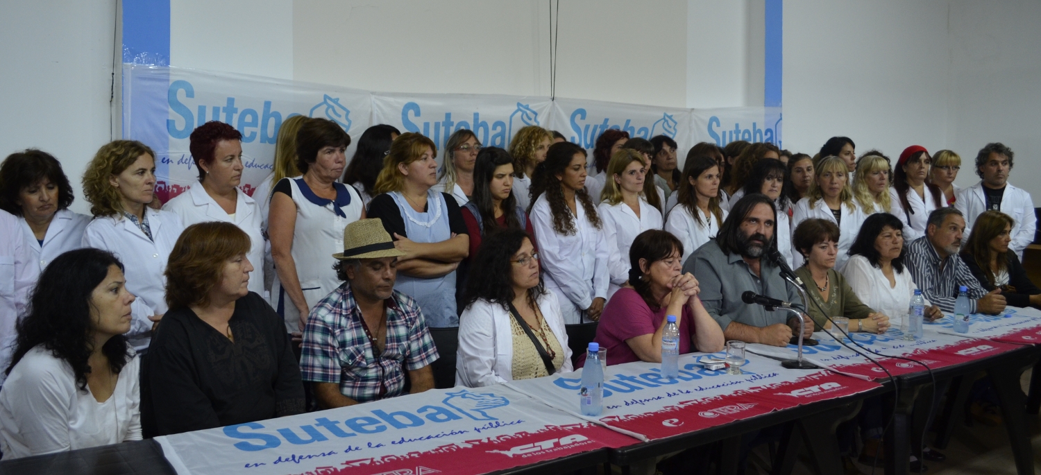 El SUTEBA realizó una conferencia de prensa para expresar su absoluto repudio a las agresiones sufridas por los miembros del gobierno bonaerense, señalando que se suman a las recibidas por la dirigente Mirta Petrocini recientemente, responsabilizando al gobierno Provincial por no propiciar las garantías  para el desarrollo de estas reuniones.