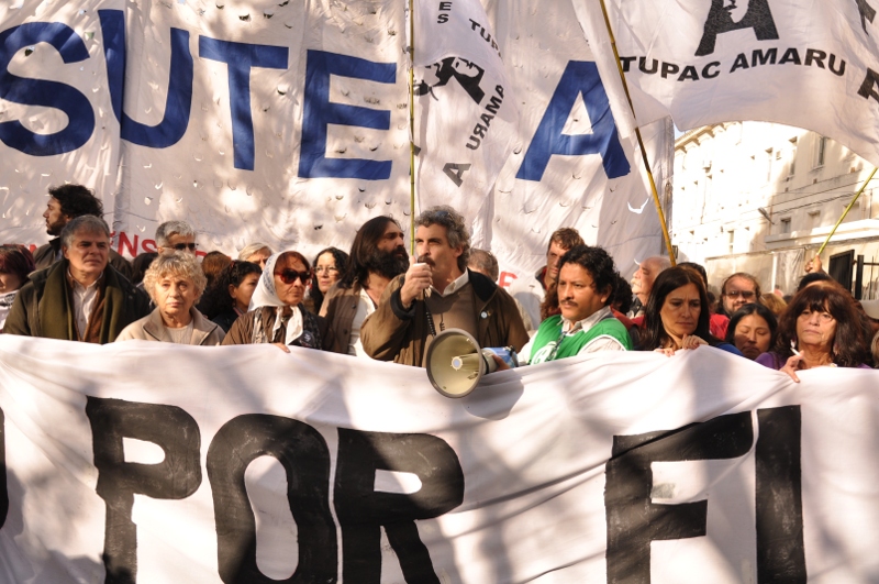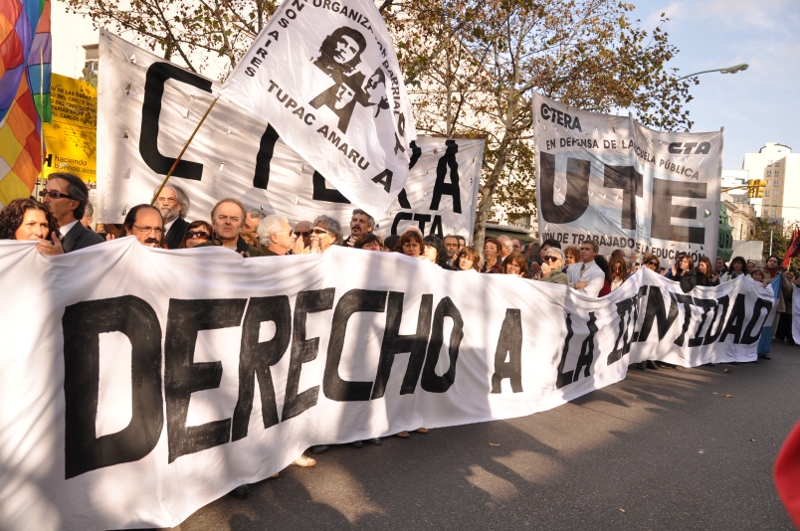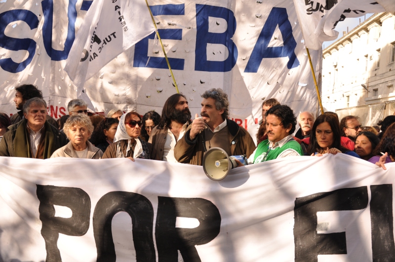 “Es Central defender al Banco Nacional de Datos Genéticos, que ha permitido la recuperación de la identidad de muchos chicos apropiados. Esto no es por un caso particular, sino que hay que defender la idoneidad y la seriedad del Banco Nacional de Datos Genéticos. Hoy, abogados inescrupulosos, grupos mediáticos y grupos económicos lo están atacando vilmente y, por eso, hacemos este abrazo, por el derecho a la identidad", remarcó Roberto Baradel.