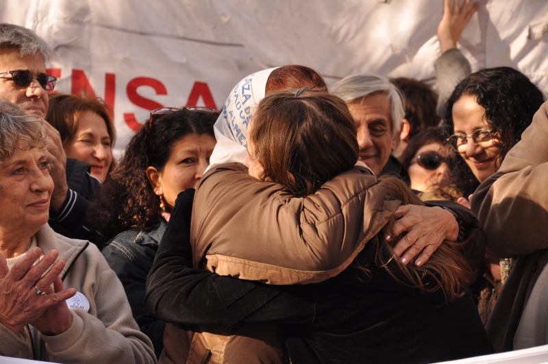 La Secretaria General de CTERA, Stella Maldonado, destacó la necesidad de "acompañar, una vez más, la lucha contra la impunidad y por la identidad de los jóvenes apropiados por los genocidas. La causa que involucra a Felipe y Marcela Noble Herrera nos conmueve a todos en tanto ciudadanos. Este abrazo simboliza una de las causas más profundas que hacen a la posibilidad de reconstituir y recordar a la sociedad argentina lo que significó la dictadura militar, el genocidio, la apropiación de niños, y la necesidad de decir que todavía hay 400 jóvenes que no han recuperado su identidad. Es un momento muy importante para que la ciudadanía toda acompañe a las Abuelas y a todos los organismos de derechos humanos en la búsqueda de los nietos que faltan encontrar”, reclamó Maldonado.