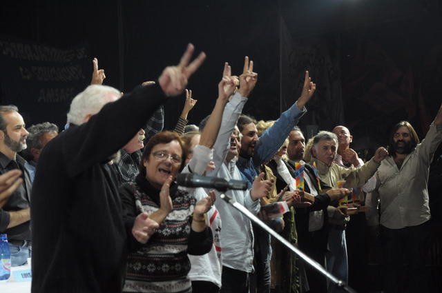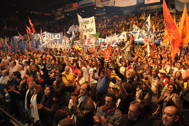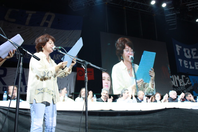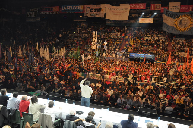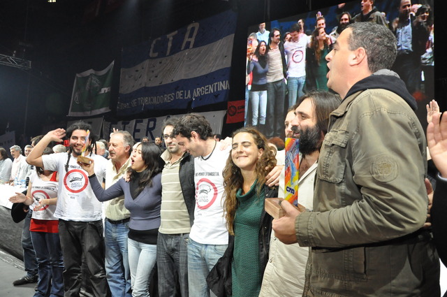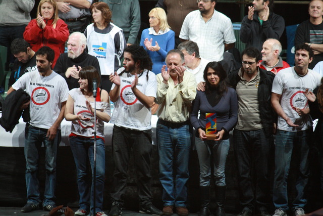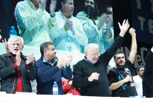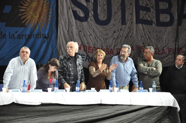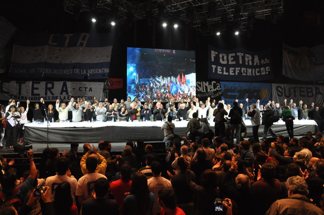 Ante un estadio con más de 14 mil trabajadores, el Secretario General de la CTA, Hugo Yasky, el Secretario General de CTA Buenos Aires y SUTEBA, Roberto Baradel, el Secretario Adjunto de la CTA, Pedro Waisejko y decenas de dirigentes, conformaron la mesa nacional de la CTA sobre el escenario.
