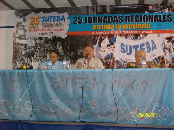 La jornada comenzó con la historia del sindicato a través del video SUTEBA 25 años. Luego Baradel dirigió unas palabras a los presentes, para después comenzar con el primer panel.
