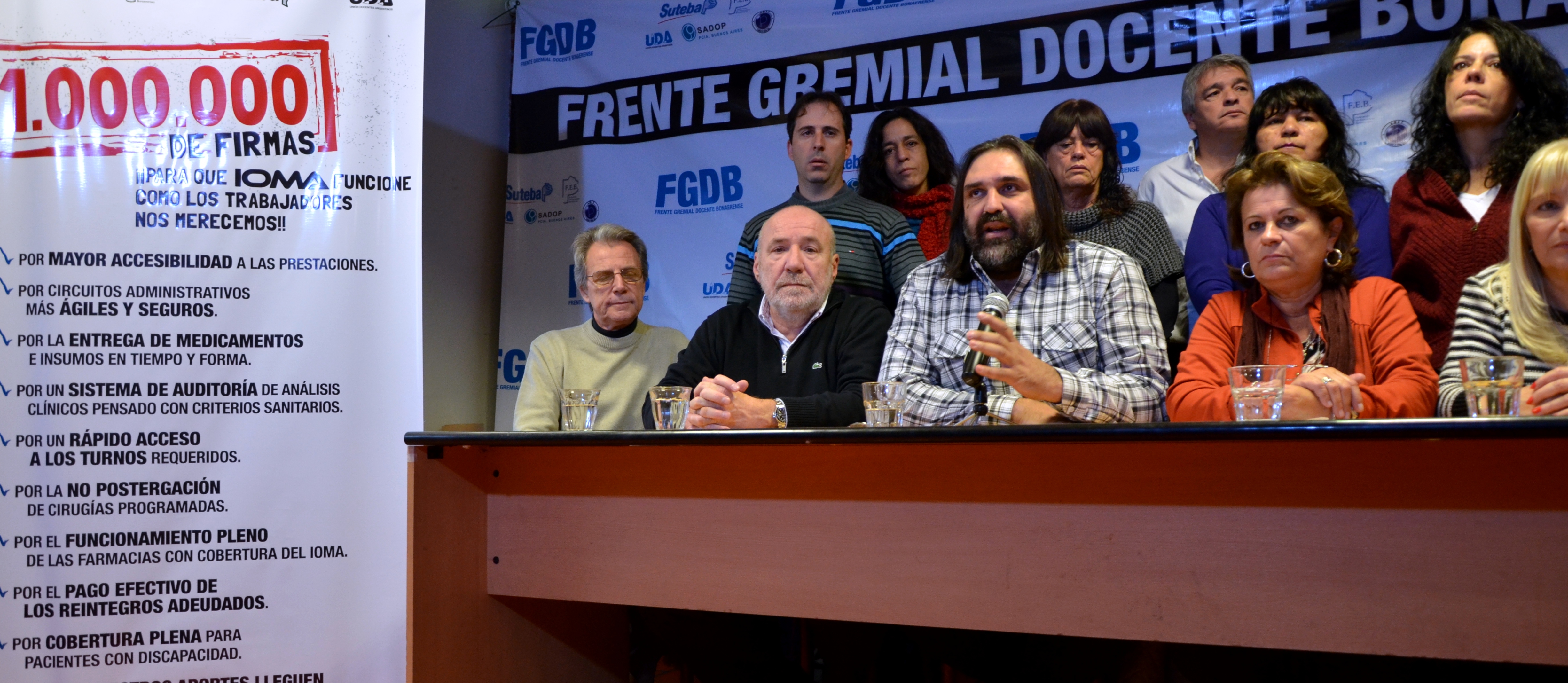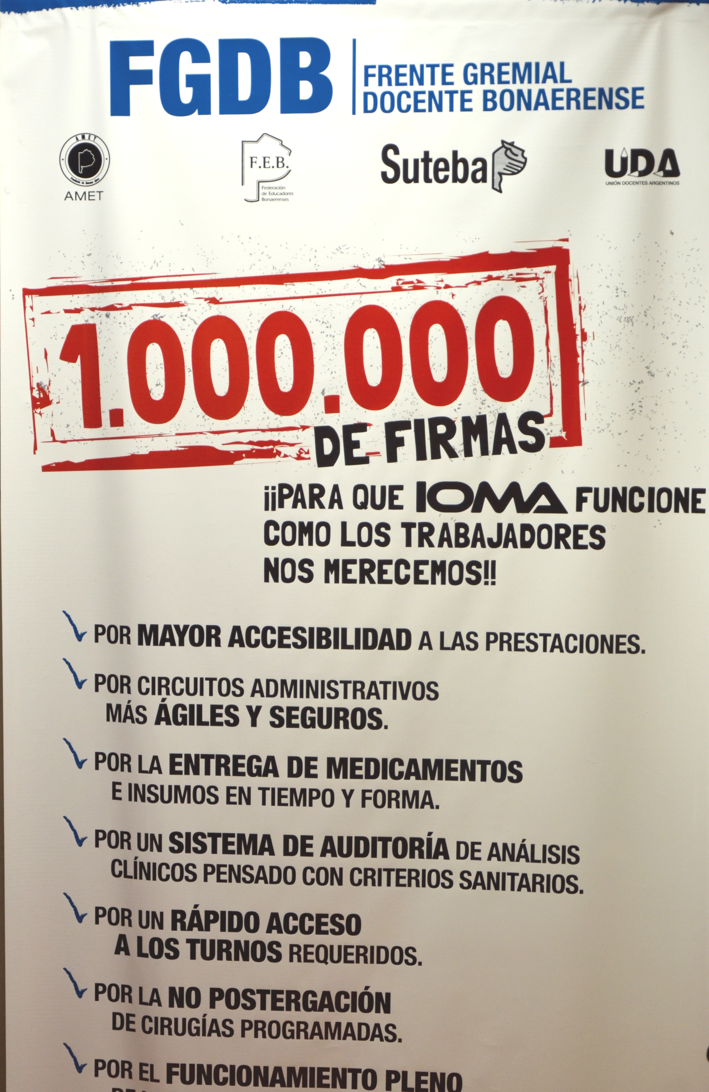 El segundo eje de la conferencia estuvo relacionado con el IOMA, sobre eso, el Secretario General de SUTEBA comentó: “Mañana en la sede central de IOMA (en La Plata), comienza una campaña en defensa de la obra social recolectando más de un millón de firmas, que a su vez ya se vienen recolectando en cada una de las escuelas, para que la obra social vuelva a funcionar como se debe”.