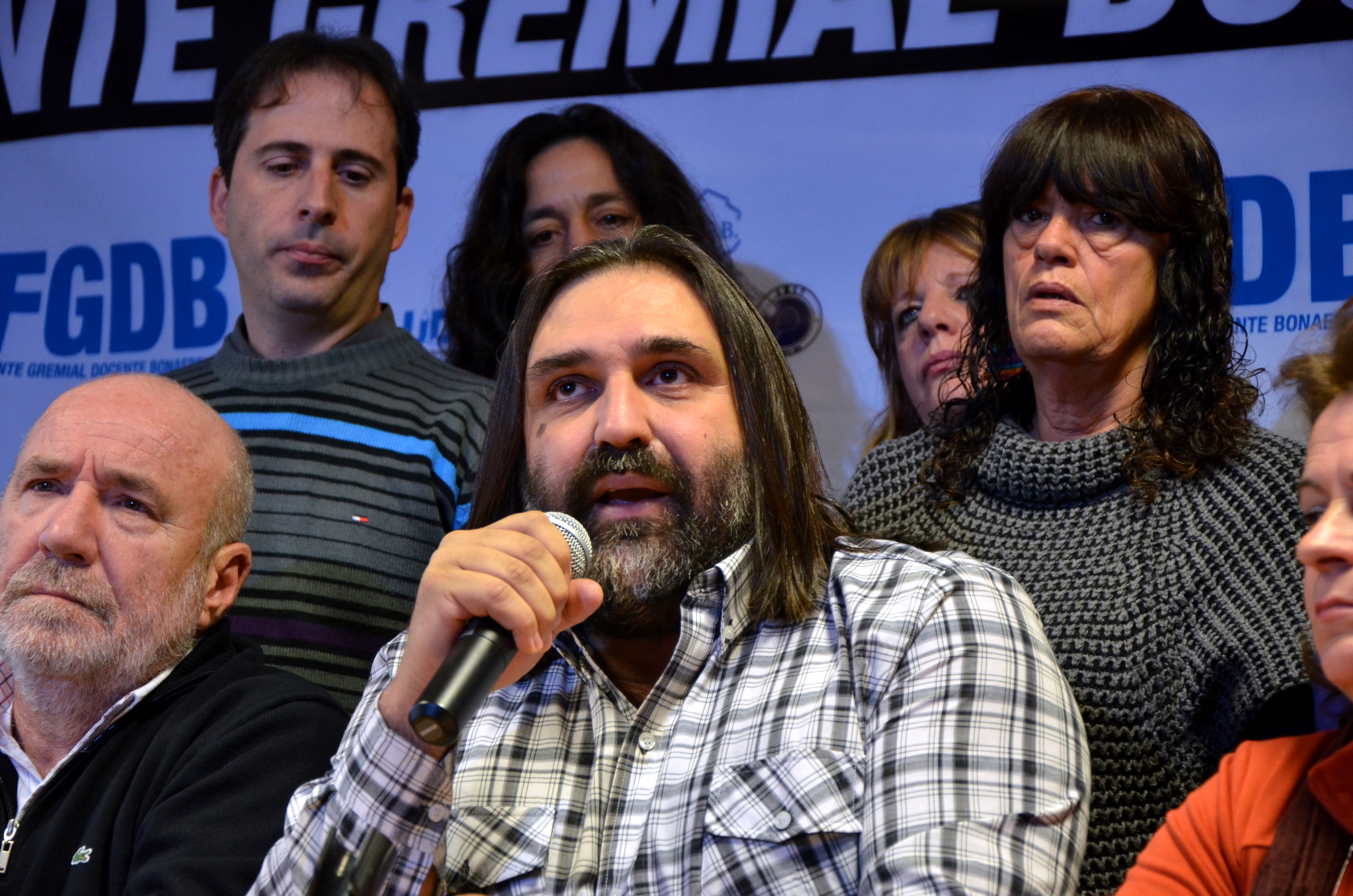 “En primer lugar, queremos decirle a la sociedad que hoy vence la conciliación obligatoria que ha dictado el Gobierno de la Provincia de Buenos Aires, la cual tenía como objetivo llegar a un acuerdo para poder resolver este conflicto que tenemos los docentes con la Provincia”, declaró Roberto Baradel, Secretario General de SUTEBA y CTA Pcia. de Buenos Aires durante la conferencia de prensa.