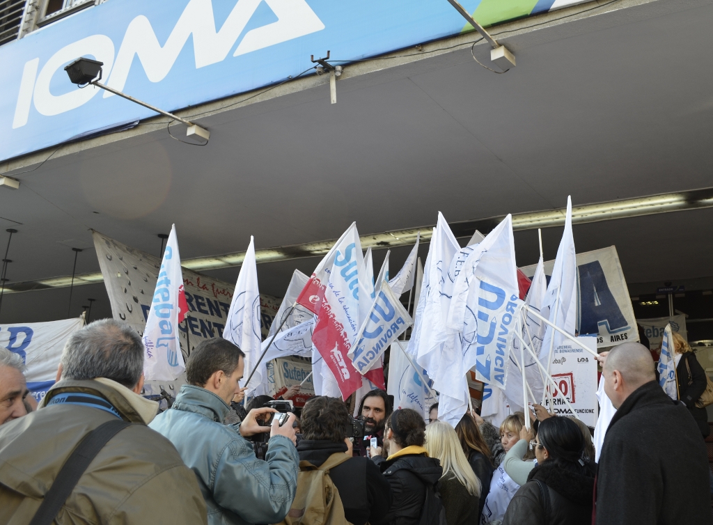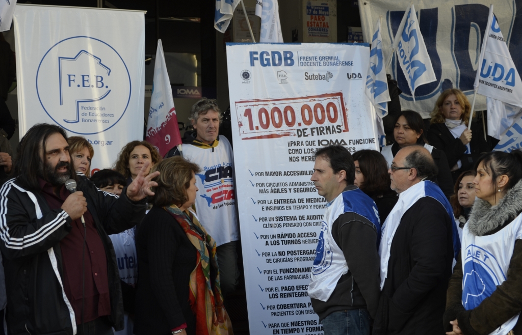 Durante la acto, el Secretario General de SUTEBA, Roberto Baradel, declaró: “Estamos acá en el IOMA planteando una Campaña en defensa de la obra social, porque el Gobierno debe hacerle los aportes de Ley a la obra social, lo que produce que suspendan servicios, demoran los turnos y cobran aranceles. La obra social de los estatales de la Provincia de Buenos Aires, con los aportes que hacemos los trabajadores, debería funcionar como una obra social de excelencia”.