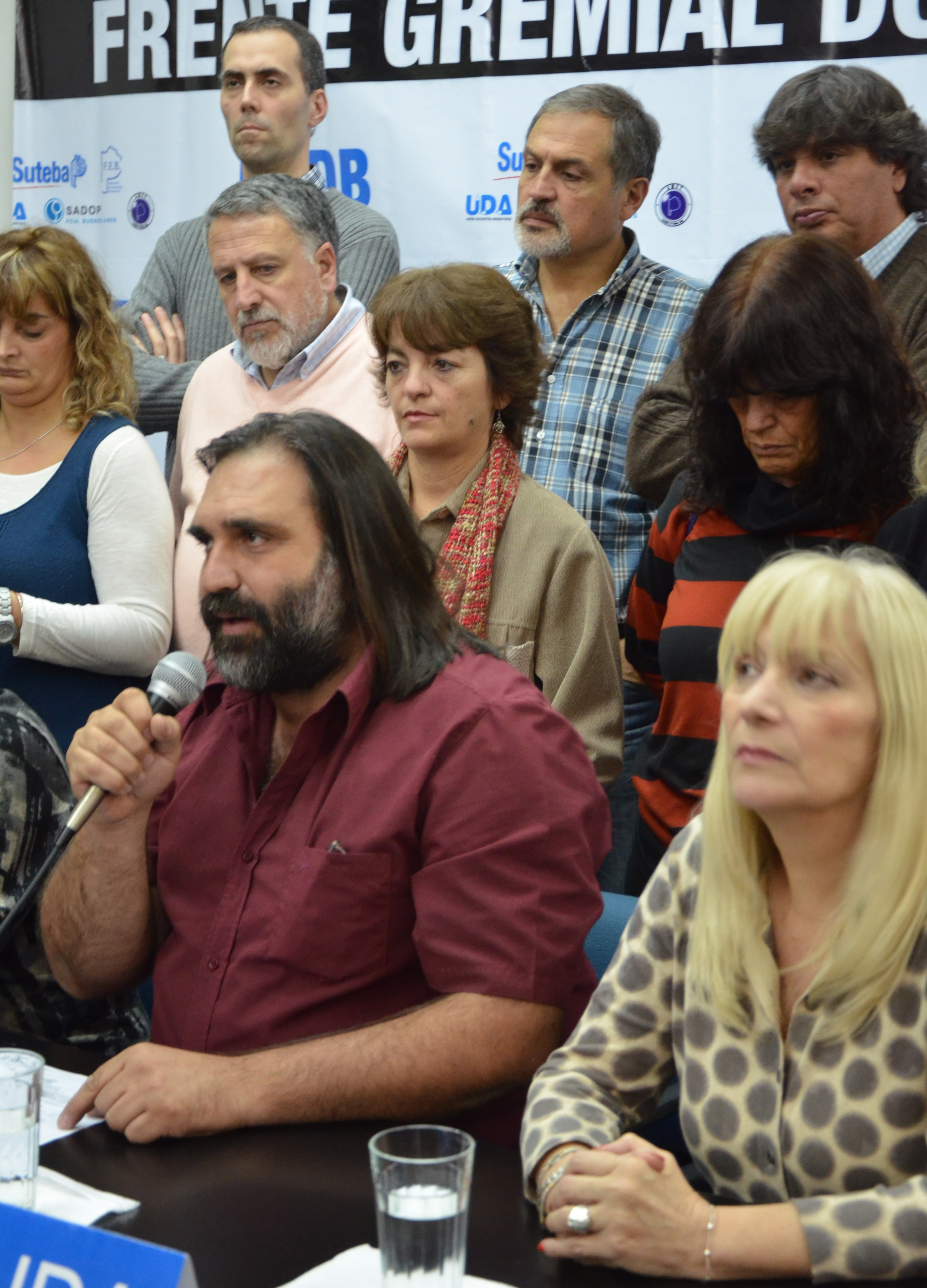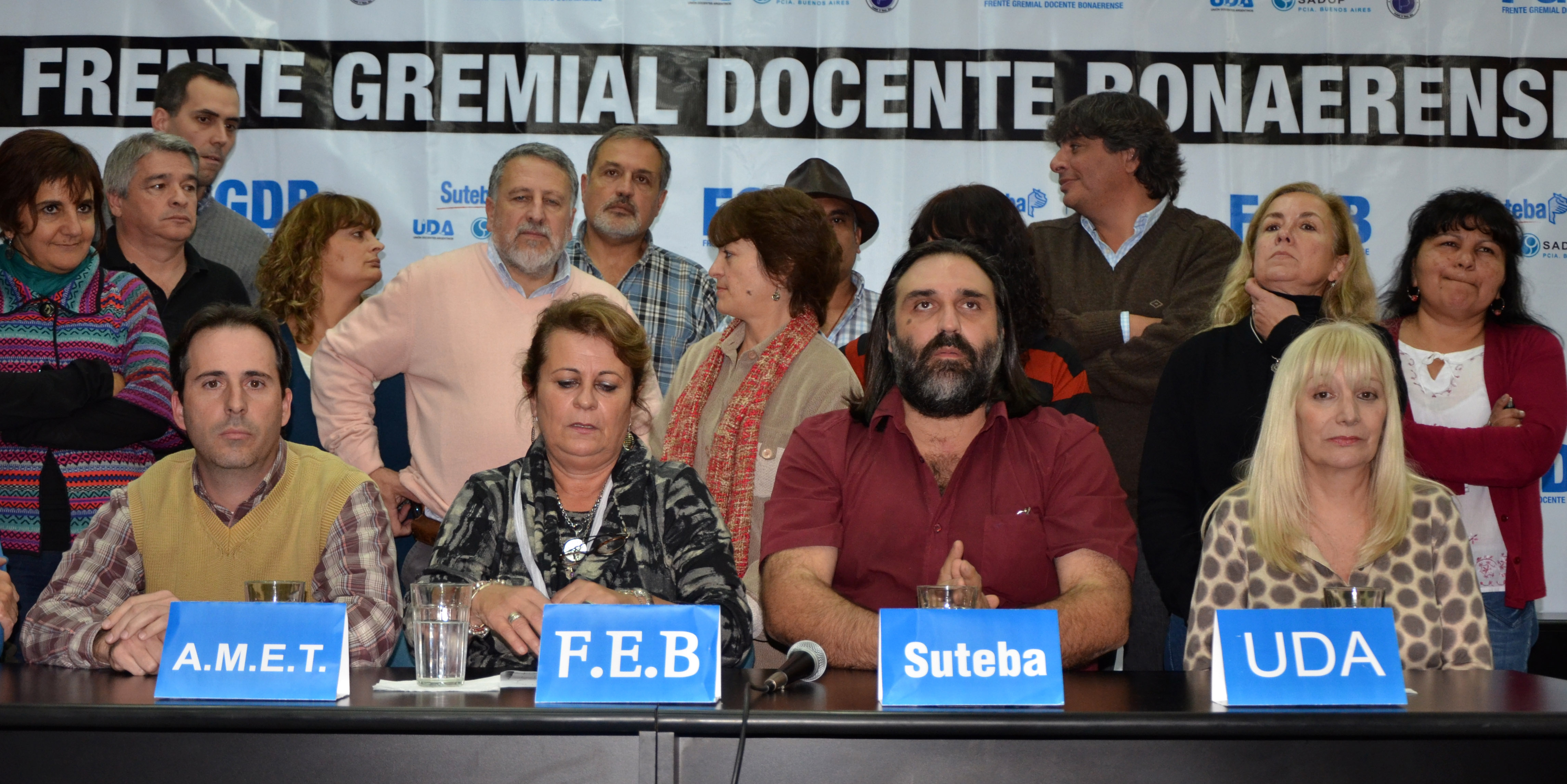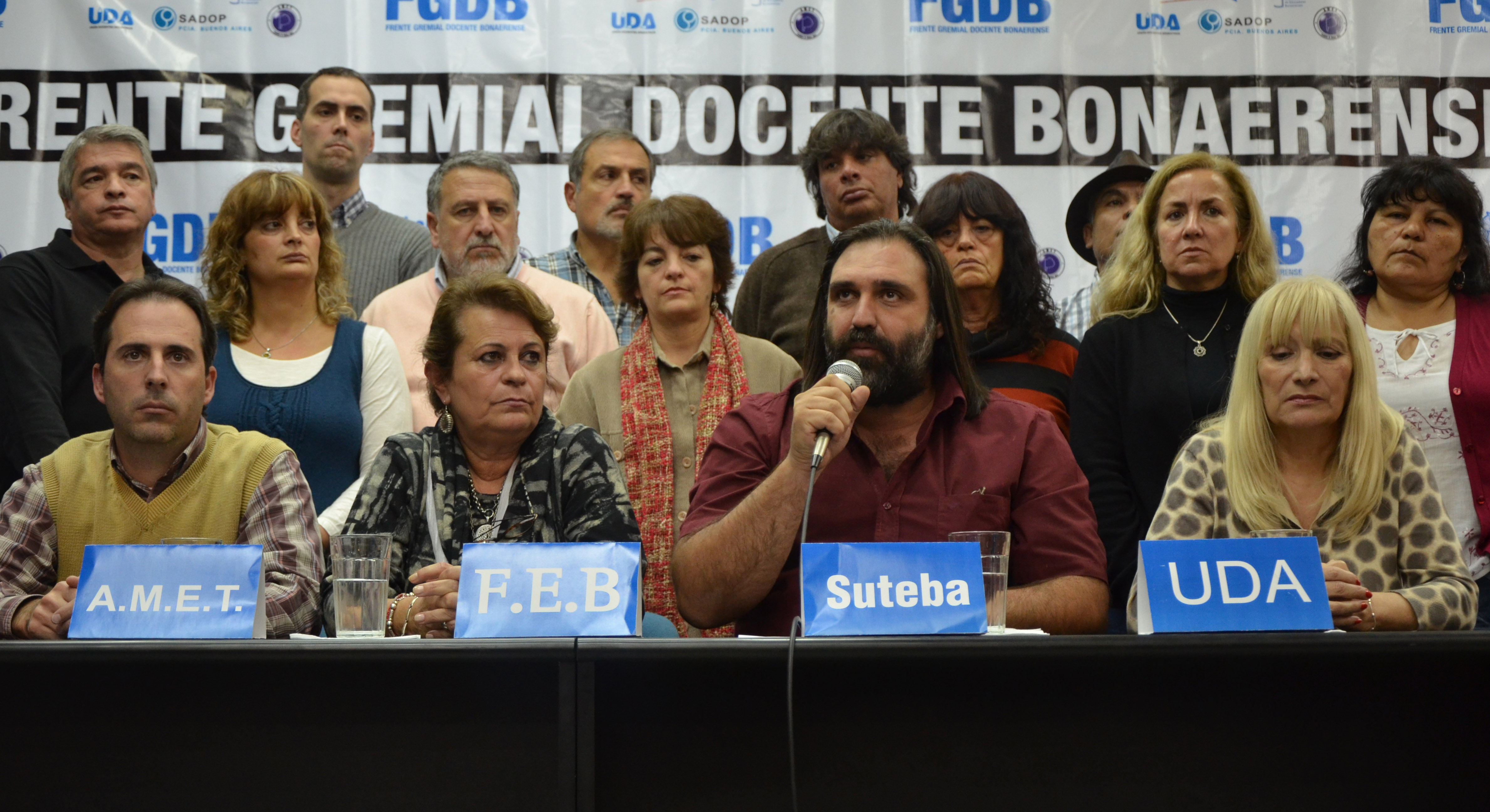 El Frente Gremial Docente Bonaerense (FGDB) realizó una conferencia de prensa en el marco de las 48 horas de paro que se están llevando adelante en las escuelas de la Provincia de Buenos Aires.