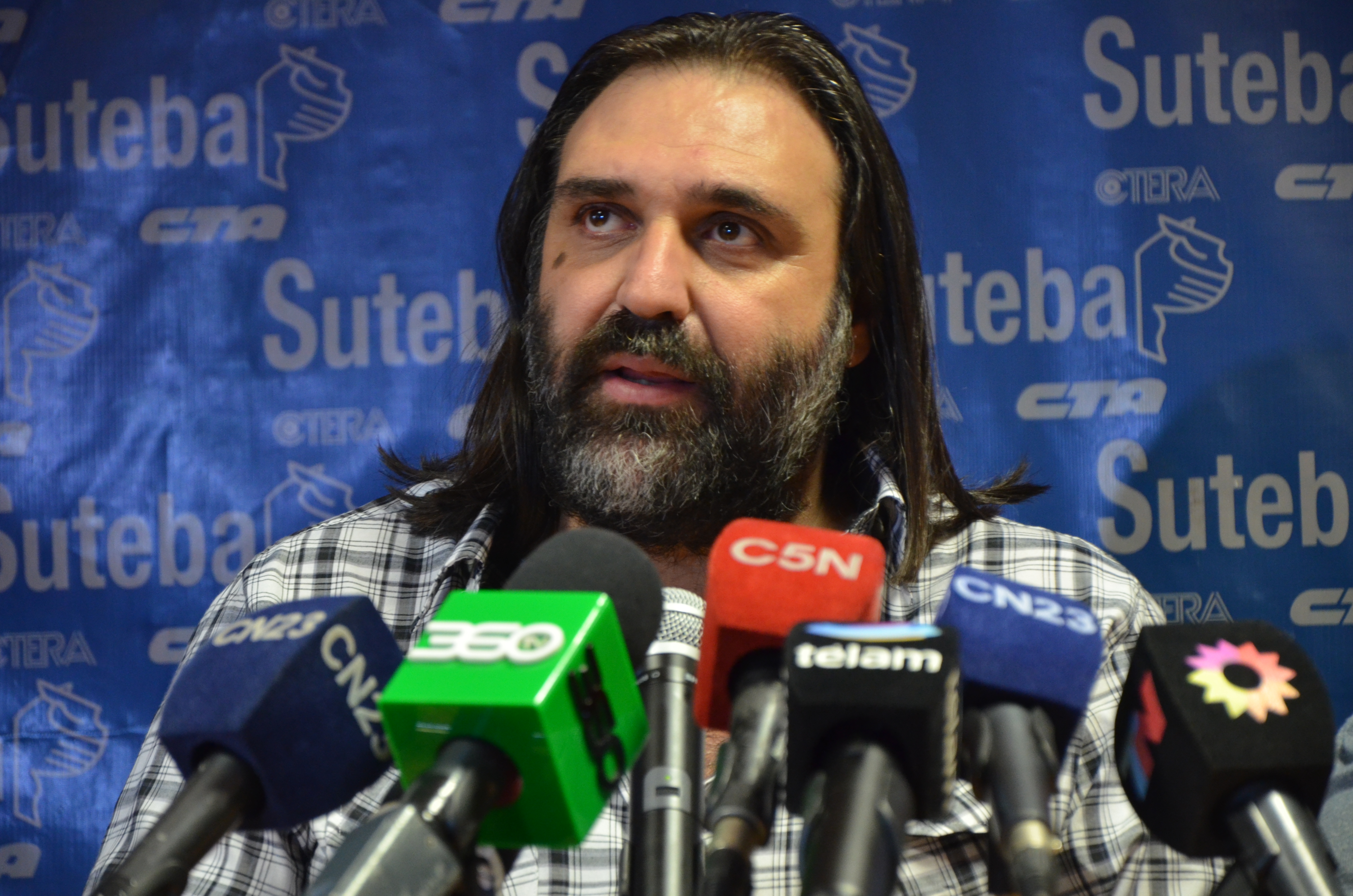 Baradel dio inicio a la conferencia solidarizándose con los familiares de los docentes y las personas que fallecieron en el día de ayer en una ruta en Santa Fe. Luego expresó: “Este conflicto se ha dilatado mucho en el tiempo y debería resolverse, no entendemos porqué el Gobierno de la Provincia de Buenos Aires no toma iniciativa, no hace una propuesta que pueda aumentar el porcentaje y que acorte los tramos del pago. El aumento que ha dado la Provincia a los docentes no es del 22,6%, hoy es del 12,5% hasta el mes de octubre que se llega al 19%. Es un aumento de un poco más de $300, inclusive por debajo del aumento que se otorgó en la paritaria nacional. Nosotros estamos en desacuerdo porque es insuficiente”.