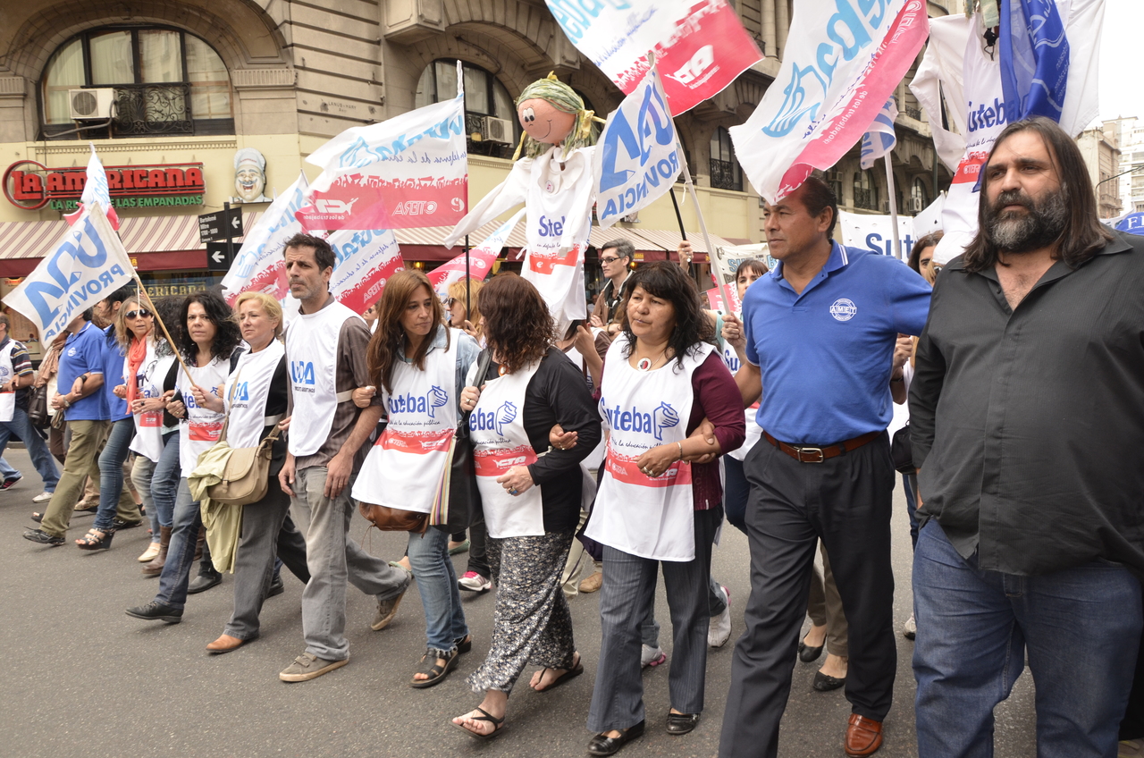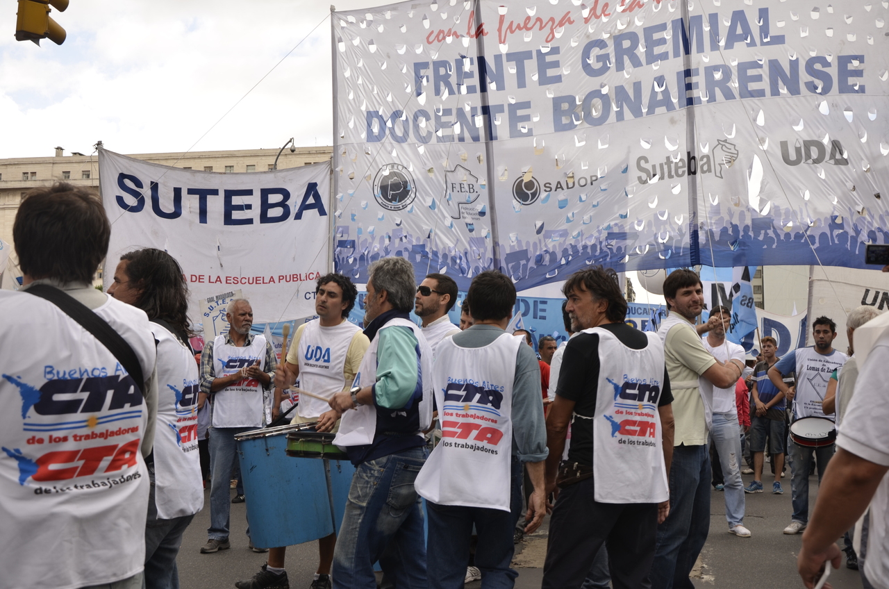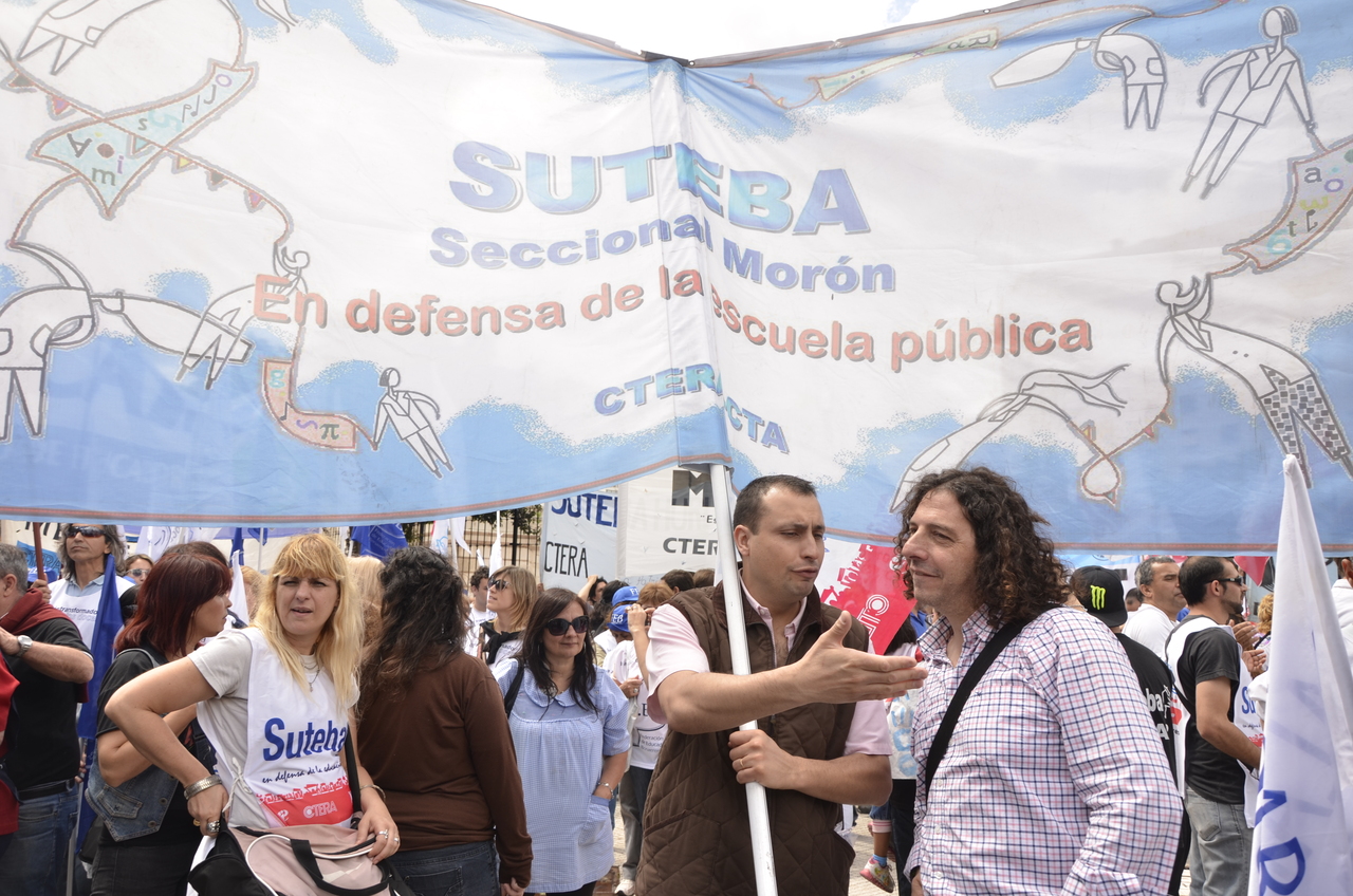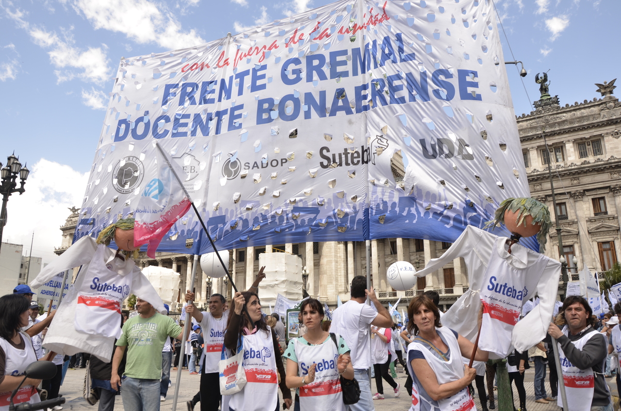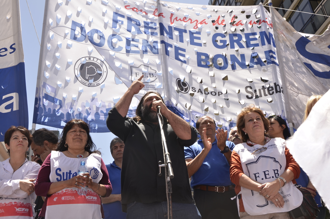 Allí, el Secretario General de SUTEBA, Roberto Baradel, declaró: "Esta movilización de hoy se enmarca en la unidad y en la lucha del Frente Gemial Docente Bonaerense que viene peleando por los derechos de todos los Trabajadores de la Educación desde el conflicto con el aguinaldo del año pasado".