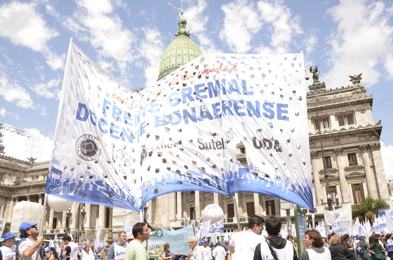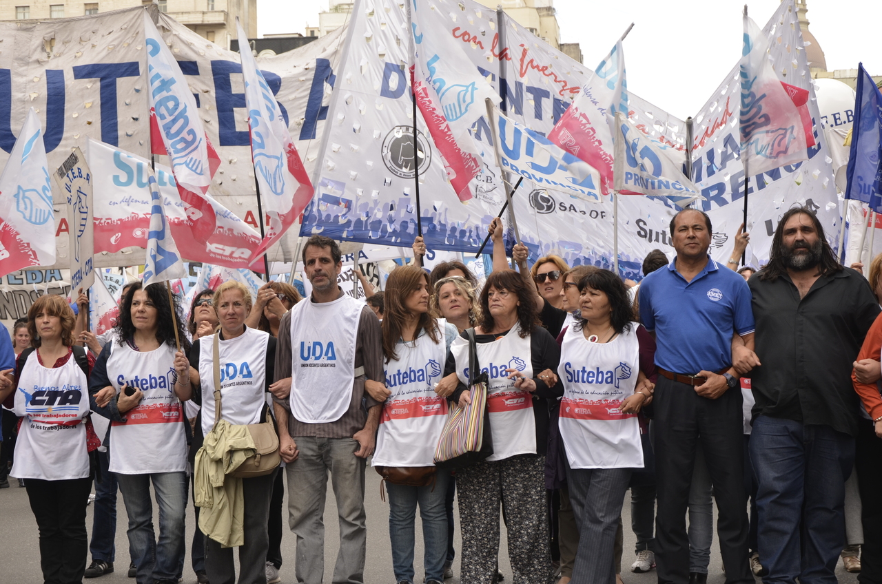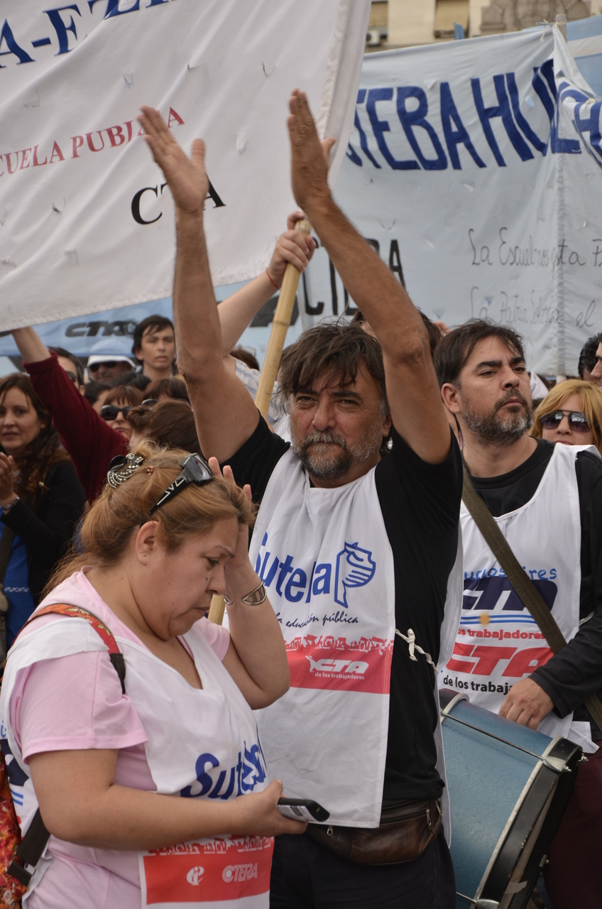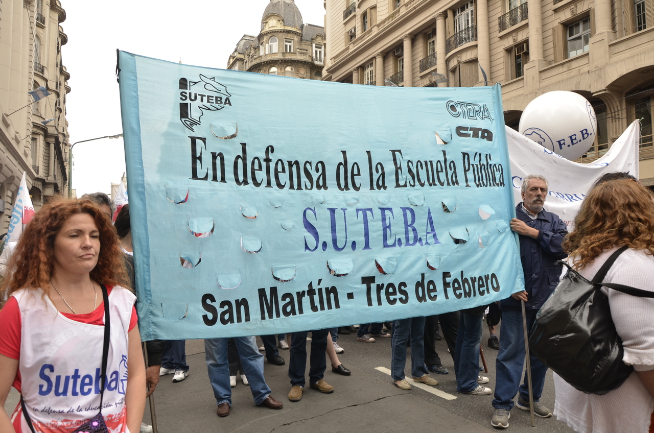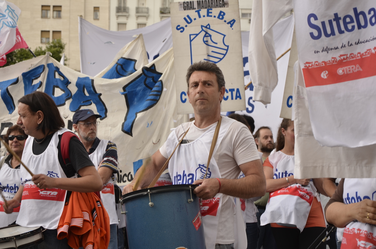 Allí, el Secretario General de SUTEBA, Roberto Baradel, declaró: "Esta movilización de hoy se enmarca en la unidad y en la lucha del Frente Gemial Docente Bonaerense que viene peleando por los derechos de todos los Trabajadores de la Educación desde el conflicto con el aguinaldo del año pasado".