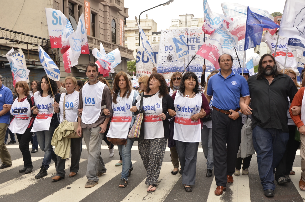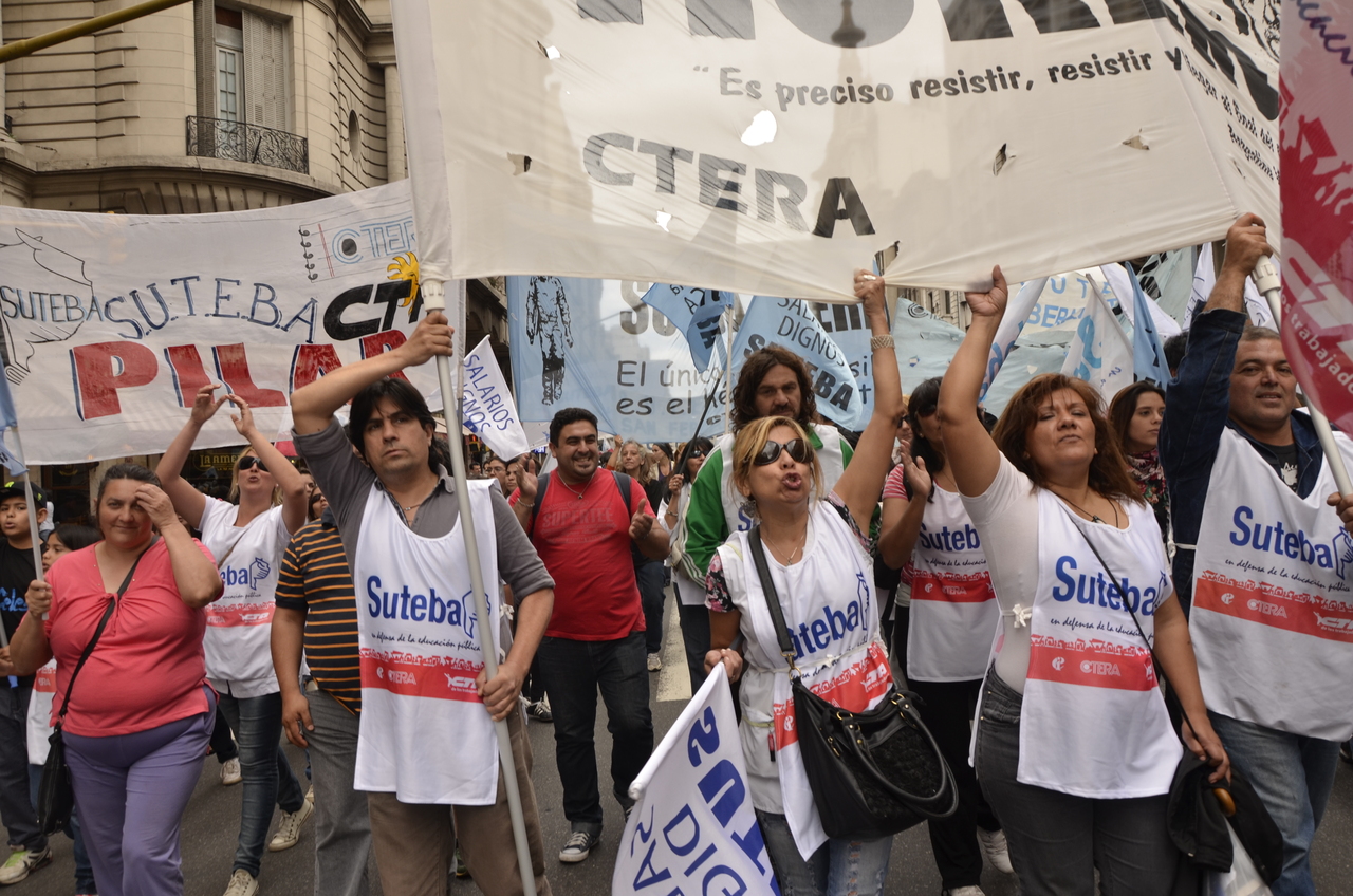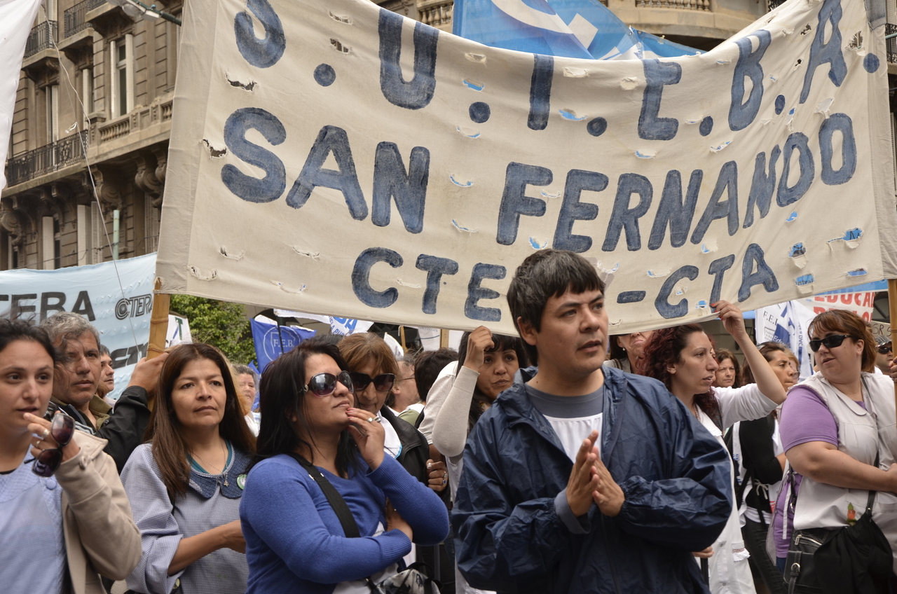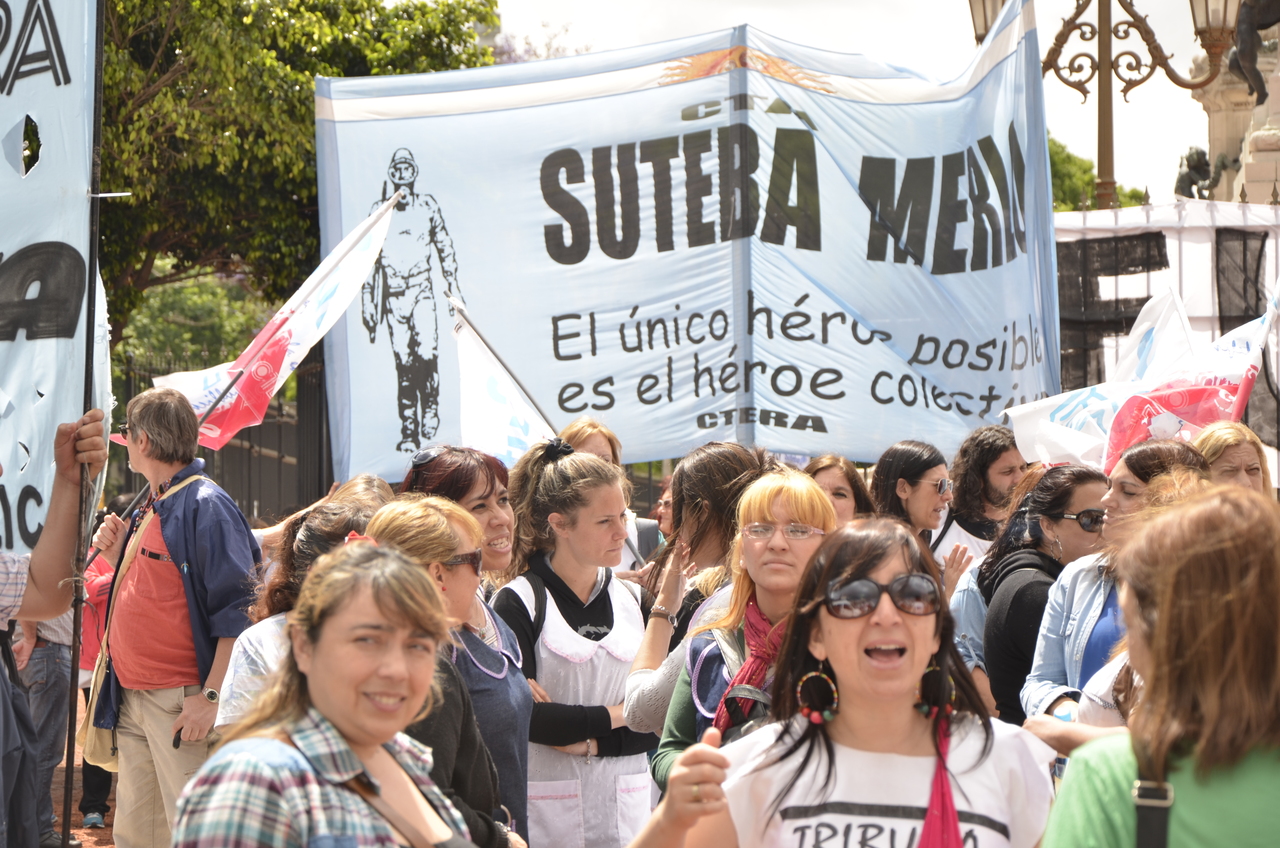 Allí, el Secretario General de SUTEBA, Roberto Baradel, declaró: "Esta movilización de hoy se enmarca en la unidad y en la lucha del Frente Gemial Docente Bonaerense que viene peleando por los derechos de todos los Trabajadores de la Educación desde el conflicto con el aguinaldo del año pasado".
