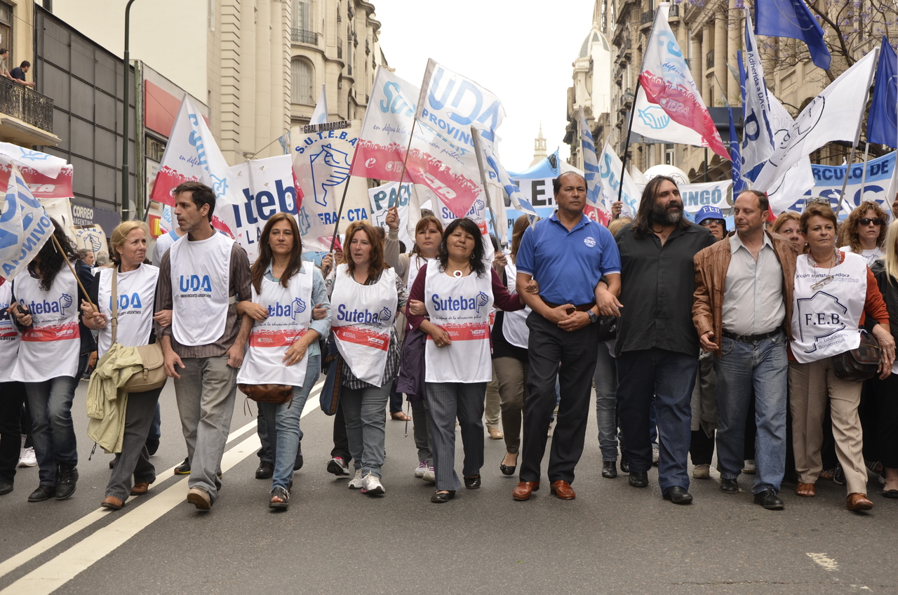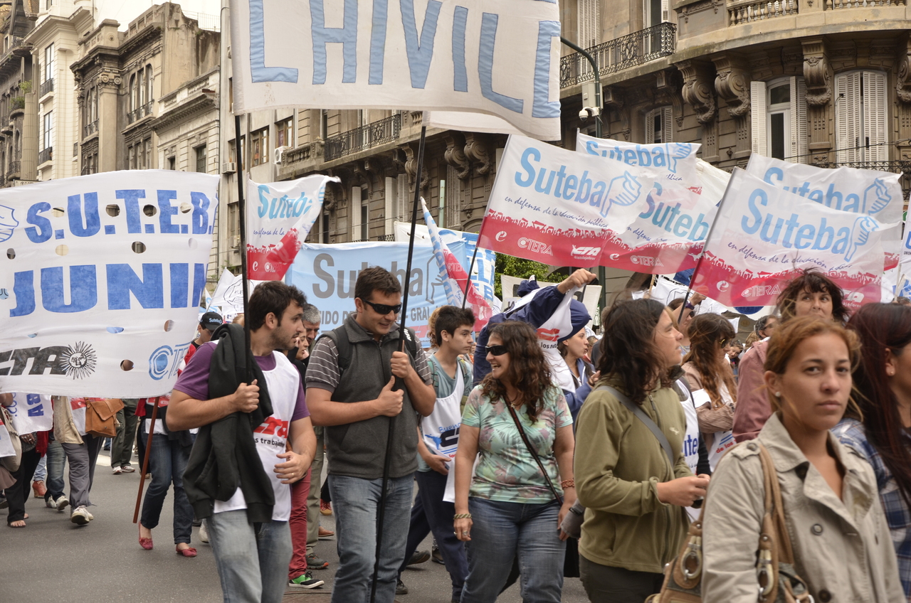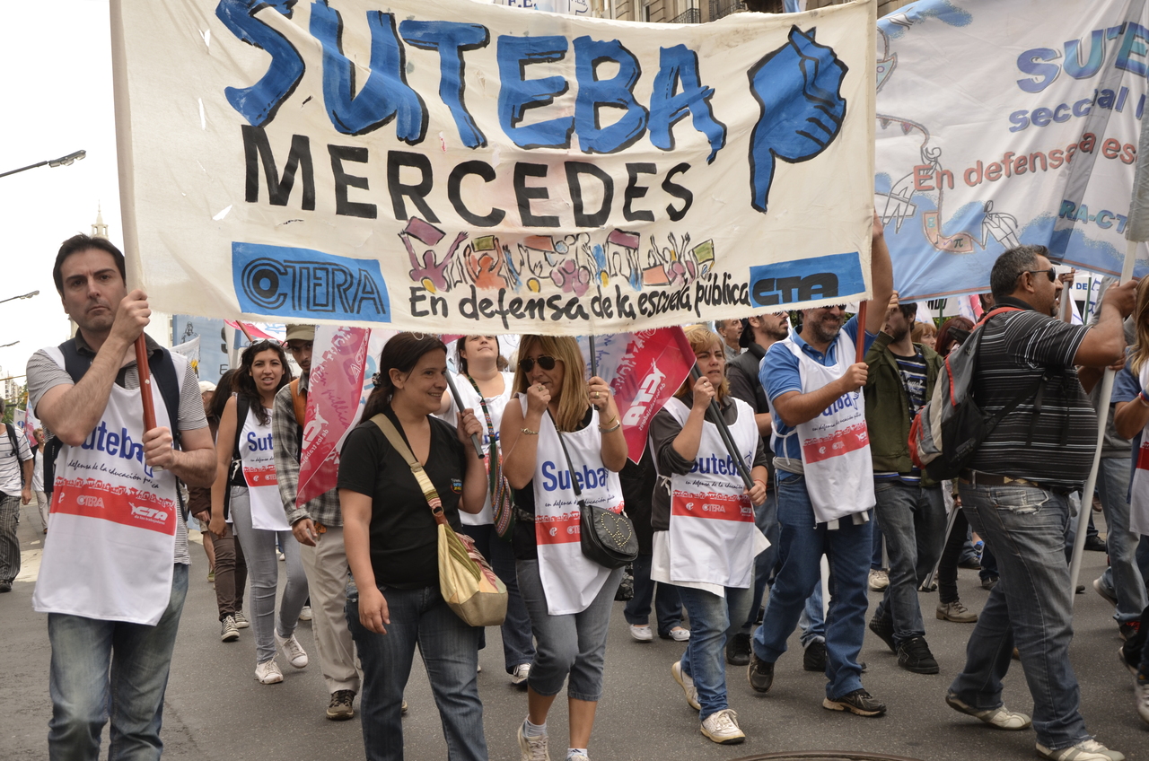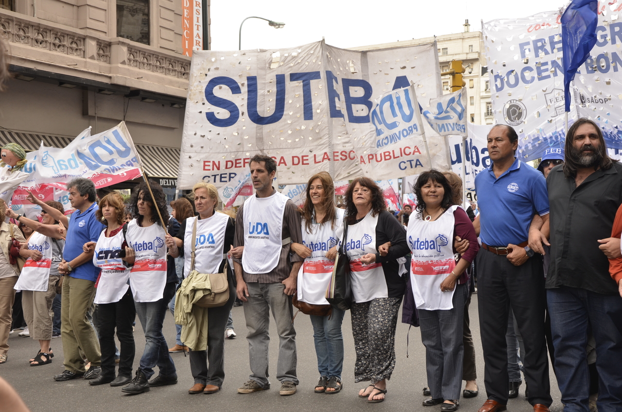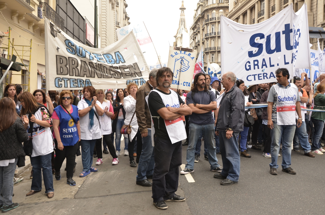 Allí, el Secretario General de SUTEBA, Roberto Baradel, declaró: "Esta movilización de hoy se enmarca en la unidad y en la lucha del Frente Gemial Docente Bonaerense que viene peleando por los derechos de todos los Trabajadores de la Educación desde el conflicto con el aguinaldo del año pasado".