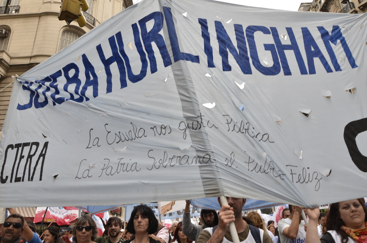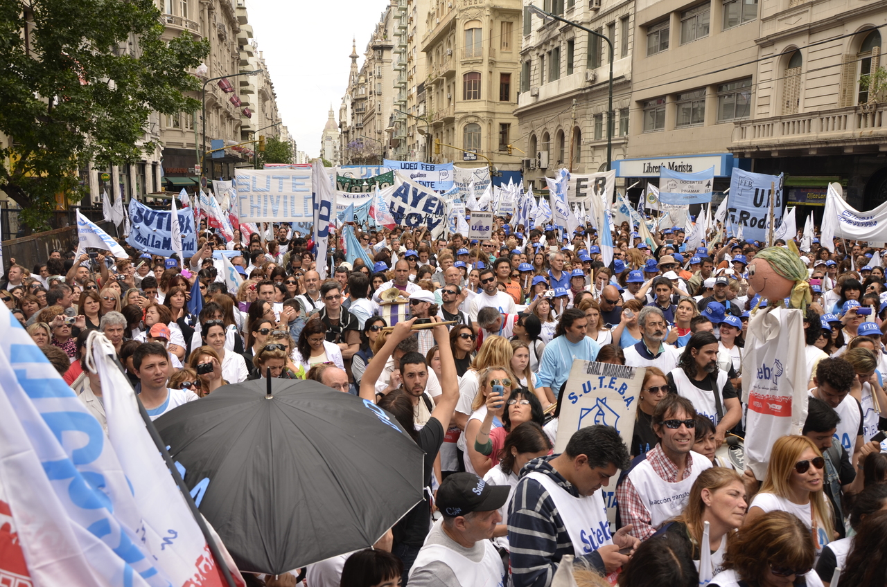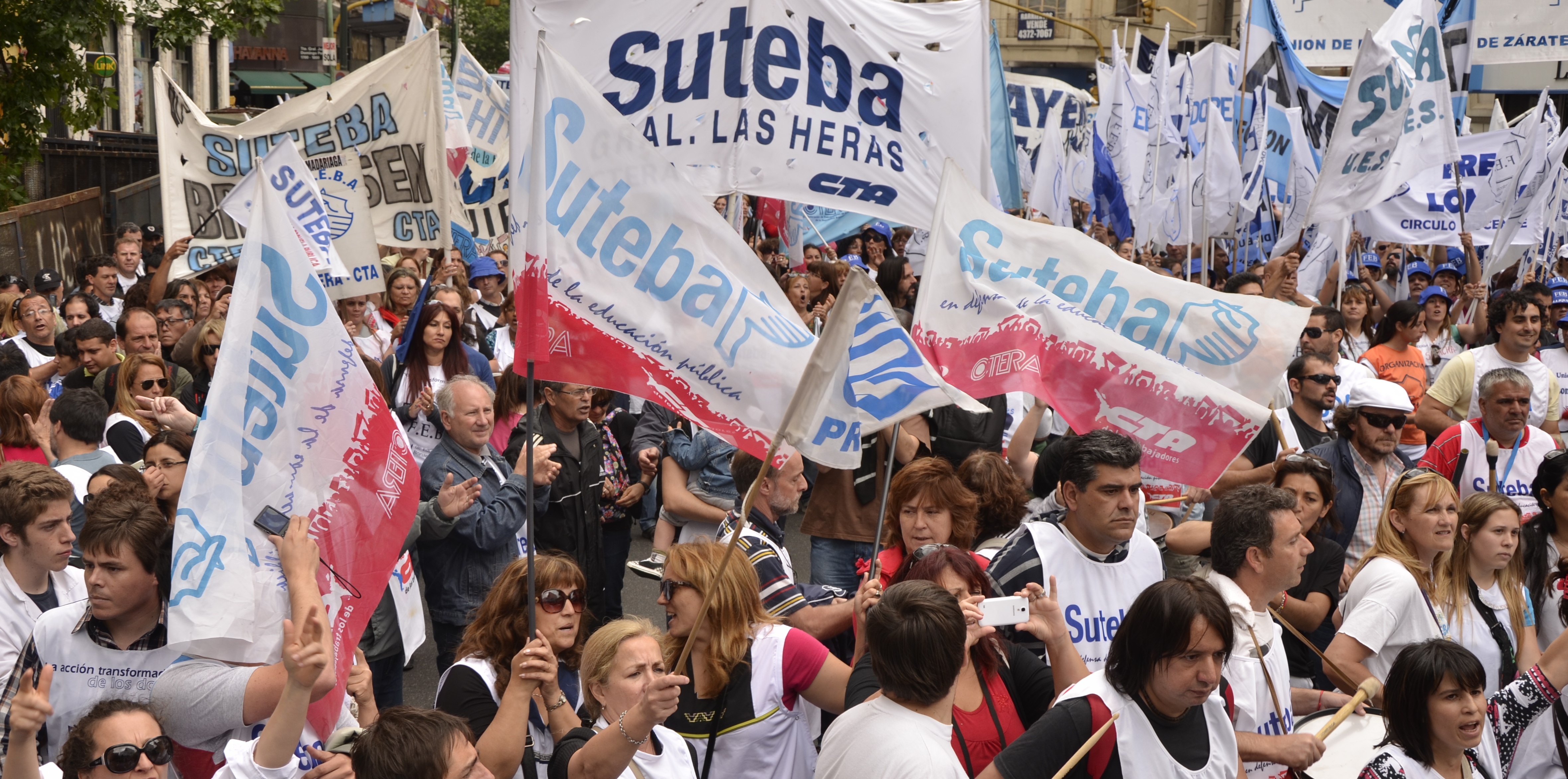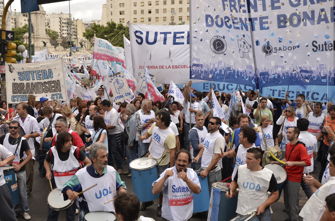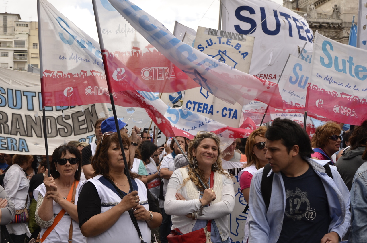 Allí, el Secretario General de SUTEBA, Roberto Baradel, declaró: "Esta movilización de hoy se enmarca en la unidad y en la lucha del Frente Gemial Docente Bonaerense que viene peleando por los derechos de todos los Trabajadores de la Educación desde el conflicto con el aguinaldo del año pasado".