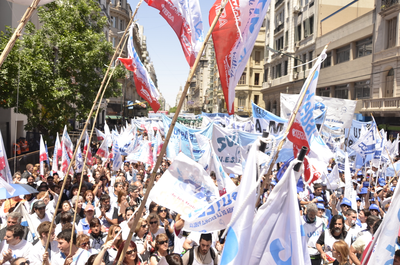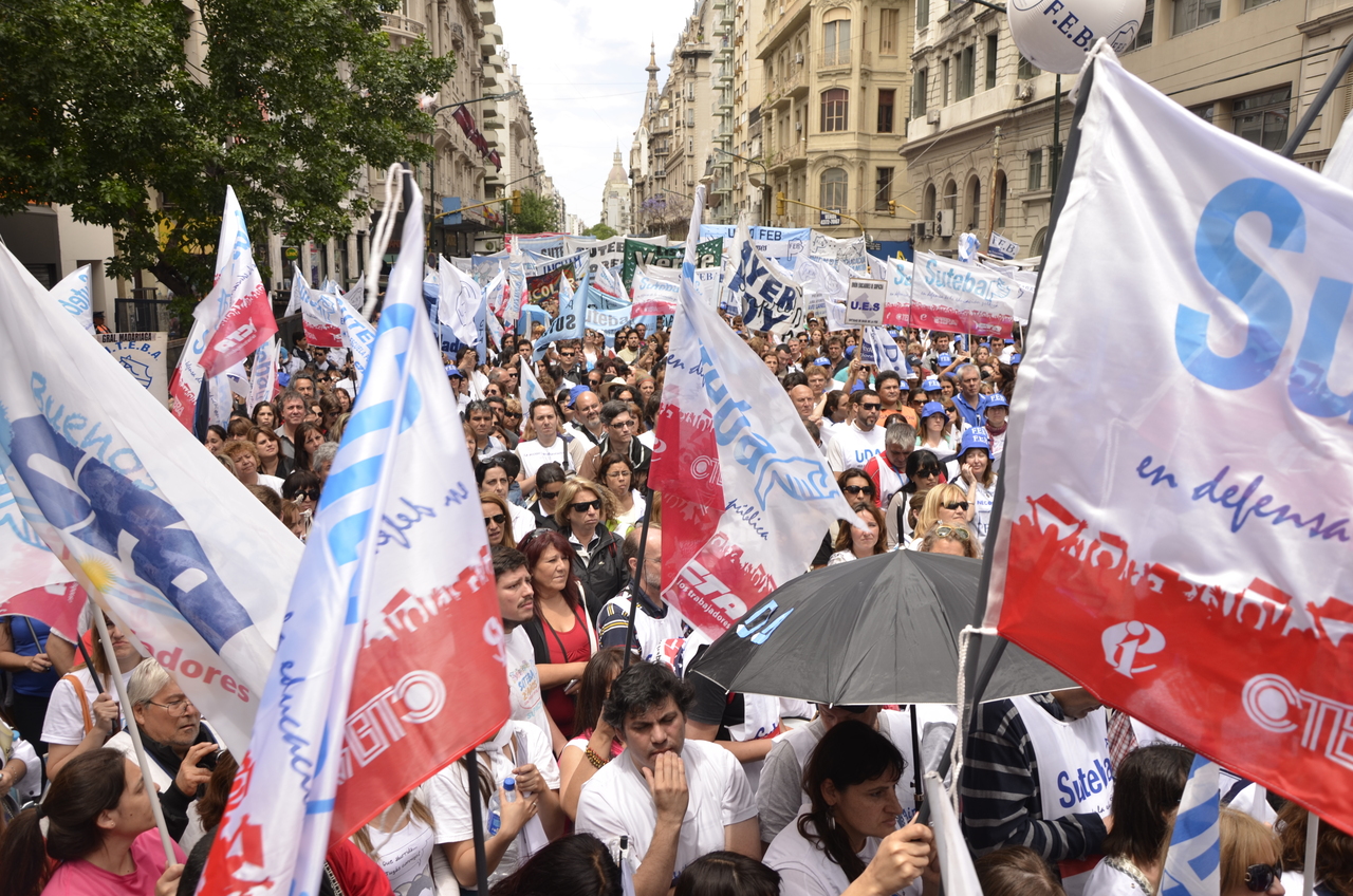 Sobre infraestructura, Baradel advirtió: "A donde haya escuelas con riesgo para los chicos y para los trabajadores, vamos a hacer una denuncia penal por incumplimiento de los deberes de funcionario público y por abandono de persona". "Además se tiene que terminar con los negociados, no queremos más prestatarias, queremos que el servicio sea estatal y para todos y en beneficio de todos los trabajadores", remarcó.