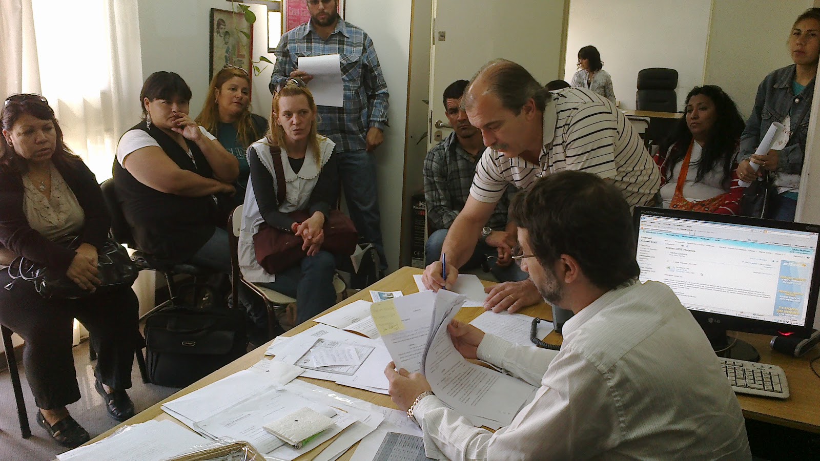 Varios de los compañeros/as perjudicados se hicieron presentes entre las 10:30 y las 11, acompañados por la Secretaria Gremial, Ana Cassinelli, la Secretaria Administativa, Lilian Spinelli y Luis Pieroni, Secretario General Adjunto.