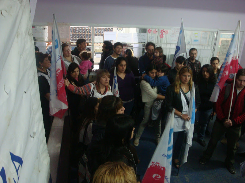 Una veintena de compañeros entraron al despacho del Presidente del Consejo Escolar y entregaron los recursos de los respectivos reclamos, mientras que el Secretario Gremial, Pedro De Gaudio, confeccionó un acta en la que se dejó constancia del reclamo y se instó al Presidente del Consejo a que gestione su resolución.