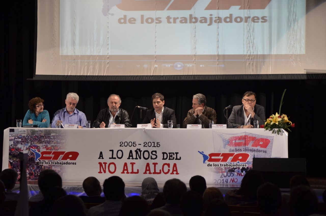 Este miércoles 4 de noviembre se realizó un acto para recordar los 10 años del histórico rechazo a la formación de un Área de Libre Comercio de las Américas, que impulsaba Estados Unidos. El emotivo homenaje tuvo lugar en la sede de FOETRA y contó con la presencia de dirigentes de la CTA, importantes funcionarios nacionales e invitados de distintos países de América Latina que fueron protagonistas del rechazo al ALCA. El panel de cierre lo encabezaron el Ministro de Economía Axel Kicillof y el Secretario General de la CTA Hugo Yasky.