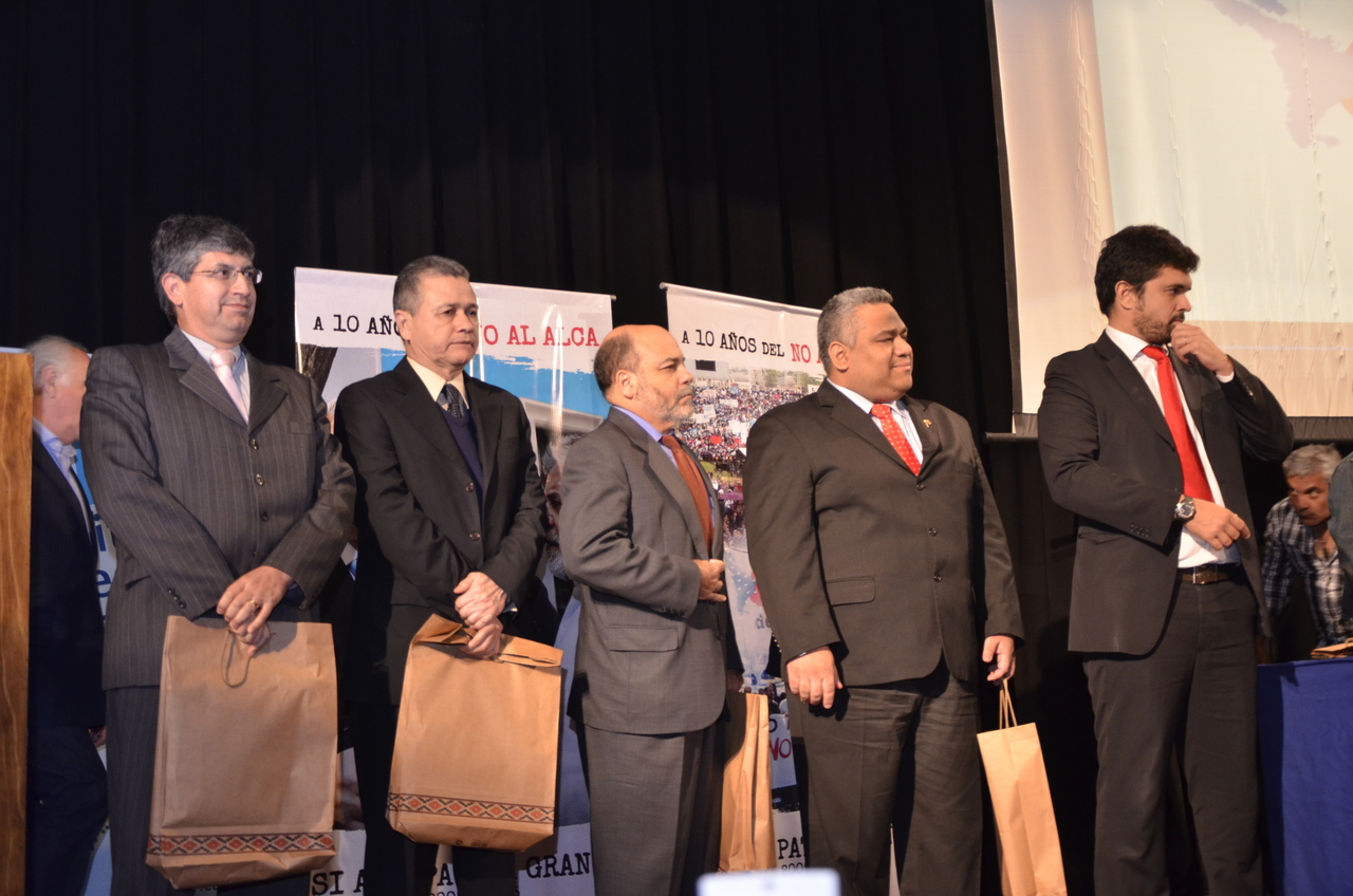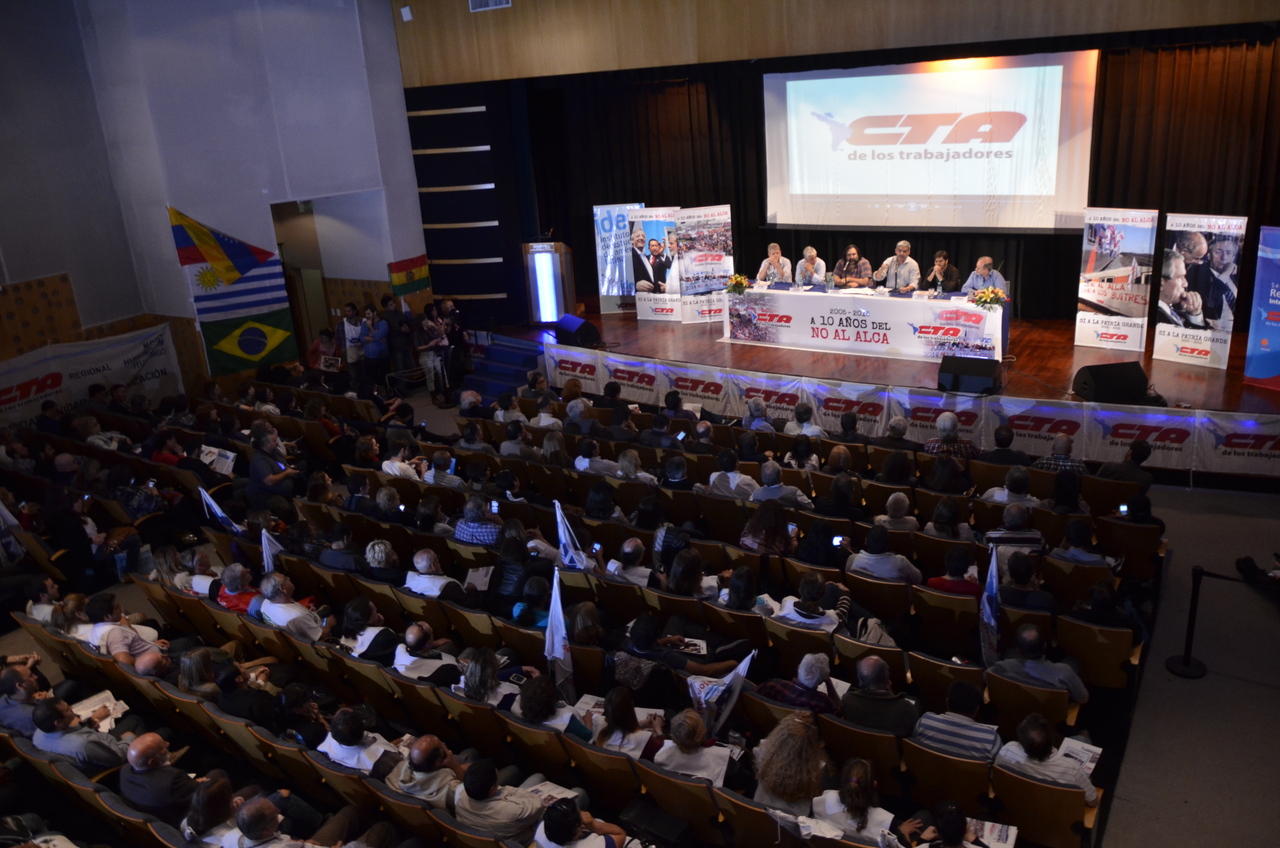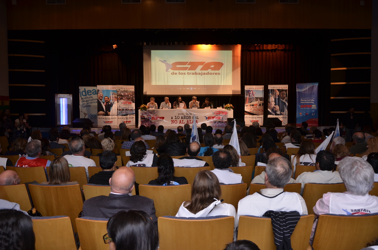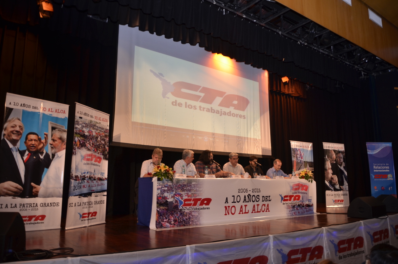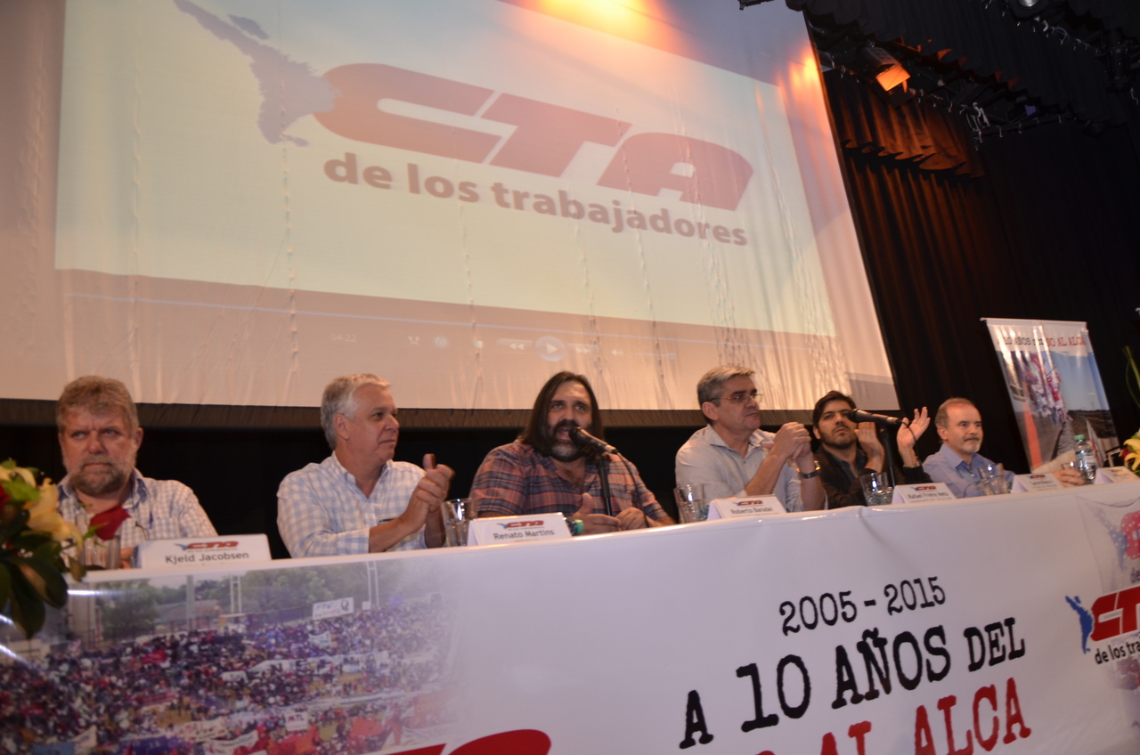 Roberto Baradel, Secretario General del SUTEBA y Secretario de Relaciones Internacionales de la CTA, dio la bienvenida "a las centrales sindicales de América Latina y de otros países, en un gesto de unidad de la Clase Trabajadora". "A diez años del No al ALCA, nos encontramos en este acto en un compromiso para sostener estos procesos políticos, cuando claramente avanzan otros tratados con el mismo espiritu del ALCA. Por eso decimos que hoy, más que nunca, redoblamos el esfuerzo de lucha de los trabajadores".