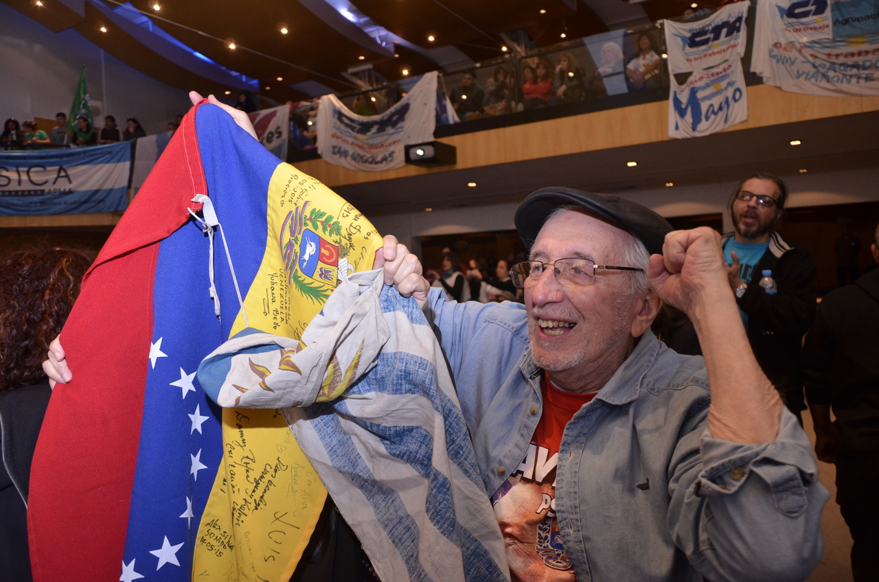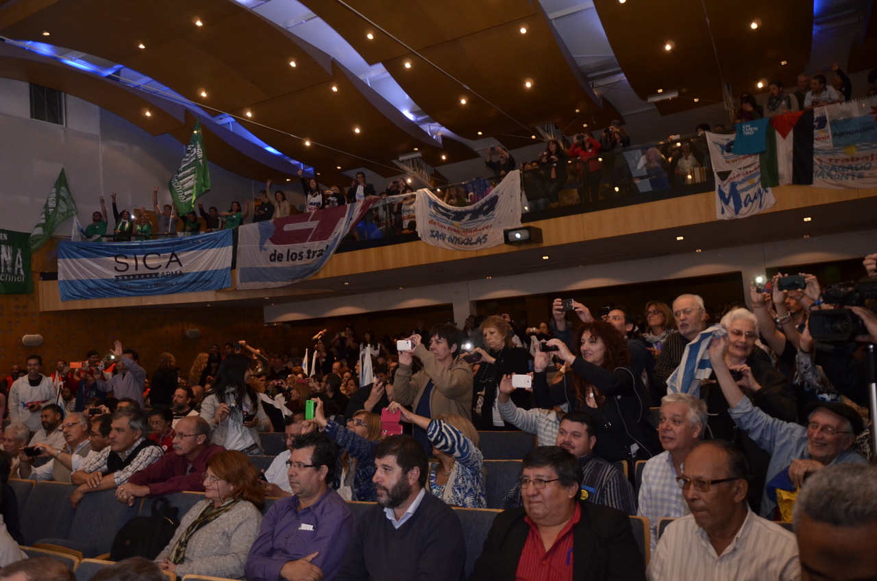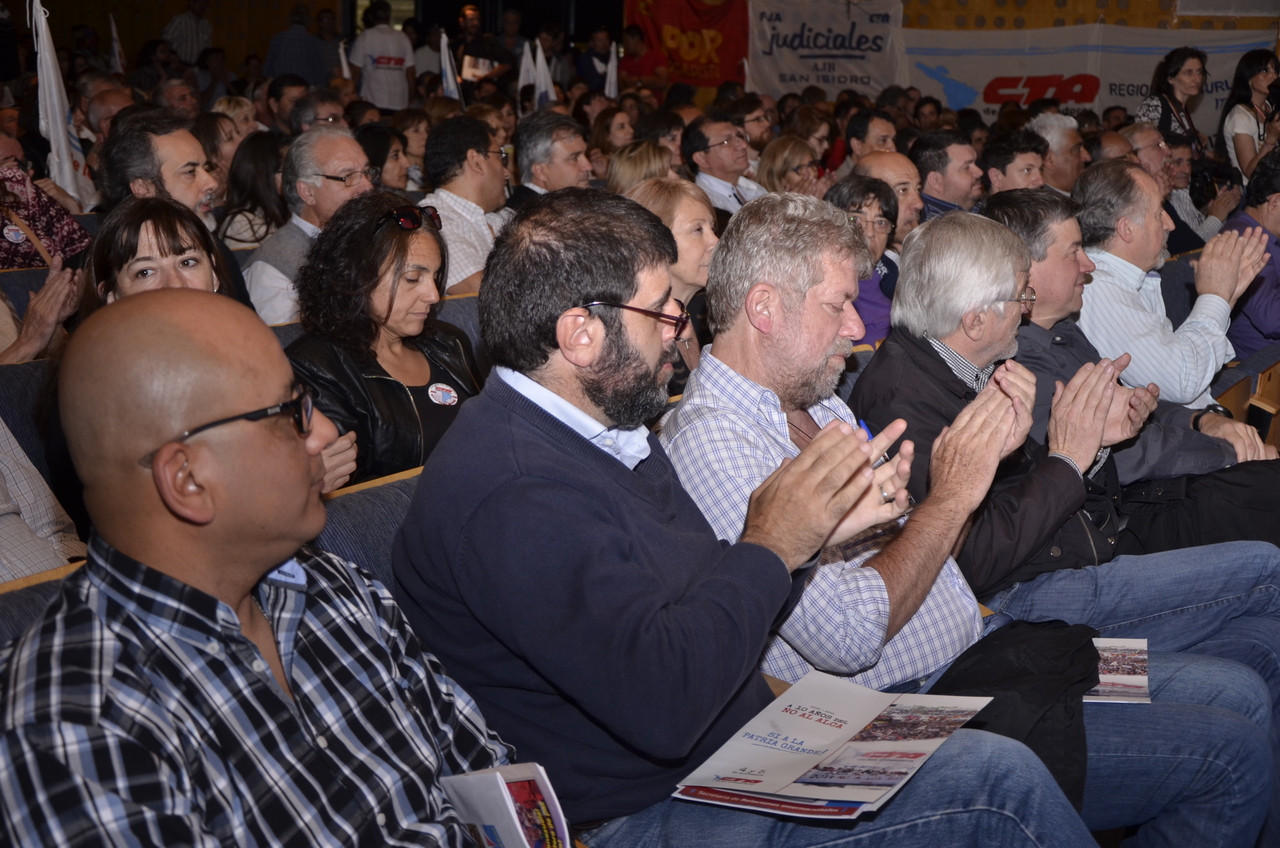 Los representantes sindicales provenientes de los paísies hermanos, trajeron su mensaje y se expresaron en este acto. Así lo hizo Fernando Pereyra de la PII-CNT Uruguay, trajo el saludo afectuso de los trabajadores de su país y expresó: "queremos decirles compañeros que hoy no hay contradicciones, el camino es siempre la izquierda, por más contradicciones que haya en el campo popular. Es obvio que falta mucho pero... el 22 de noviembre, en la Argentina, hay mucho en juego y se terminó el tiempo del complejo. No siempre cambiar es bueno y en este caso es un retroceso. Ya no hay medias tintas los gobiernos se tienen que mantener con una mayor distribución de la riqueza. El mensaje es la unidad y sólo la unidad del pueblo y el triunfo del 22".