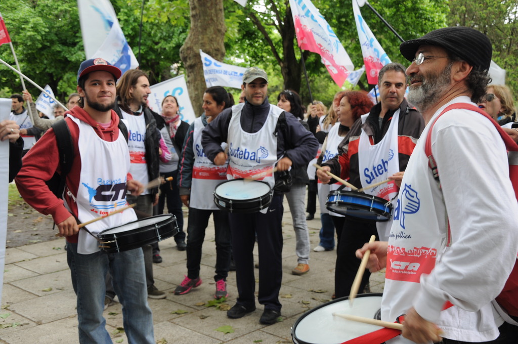 La nutrida movilización, encabezada por los referentes del SUTEBA, FEB, AMET, y UDA, partió de Plaza Moreno y al llegar a las puertas de la Dirección General de Cultura y Educación fue recibida por la Junta Interna de ATE y una importante cantidad de trabajadores de esa dependencia que al grito del “unidad de los trabajadores” unificaron sus reclamos en un solo acto realizado en las escalinatas.