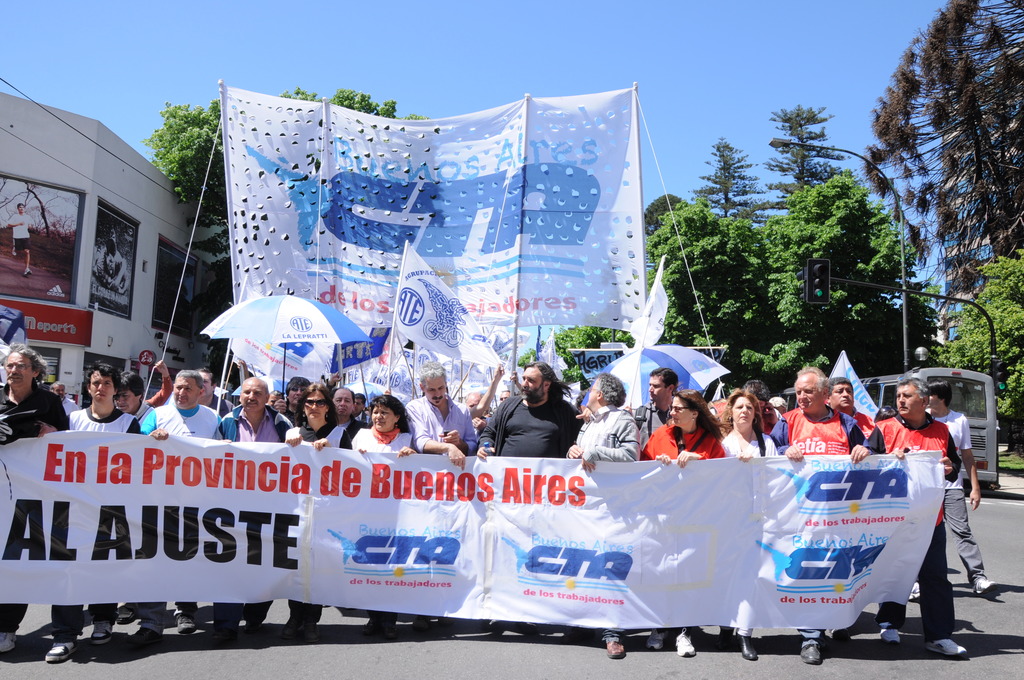 “No hay diálogo con la Provincia. Repudiamos la política de ajuste que lleva adelante la administración Scioli”, manifestó ante los presentes Roberto Baradel, Secretario General de la CTA Provincia. Además indicó que “están subejecutando las partidas presupuestarias para destinar el dinero a otras áreas”.