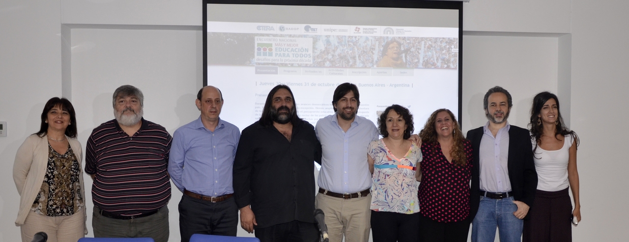 En el día de hoy, en el marco del lanzamiento del Encuentro, se realizó una conferencia de prensa donde estuvieron presentes Roberto Baradel (SUTEBA), Adrián Cannellotto (UNIPE), Mara Brawer (Diputada Nacional), Nicolás Trotta (UMET) y Pablo Gentili (CLACSO/UMET), entre otros. El desafío del Encuentro es promover un amplio debate y presentar posicionamientos respecto de la educación pública de calidad.
