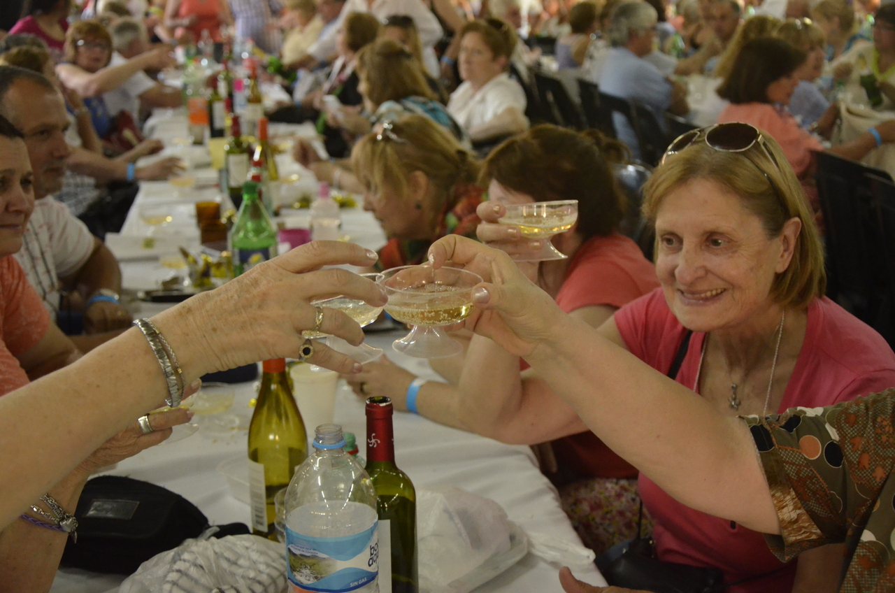 Mientras los jubilados disfrutaban de un rico asado, la fiesta tuvo shows y sorteos. Primero los animadores Anita y Laureano entretuvieron a los presentes cuando le sacaron brillo a la pista bailando "Gallo ciego" y "Milonga de mis amores", y después cuando brindaron una clase de tango a los jubilados de cada seccional.
