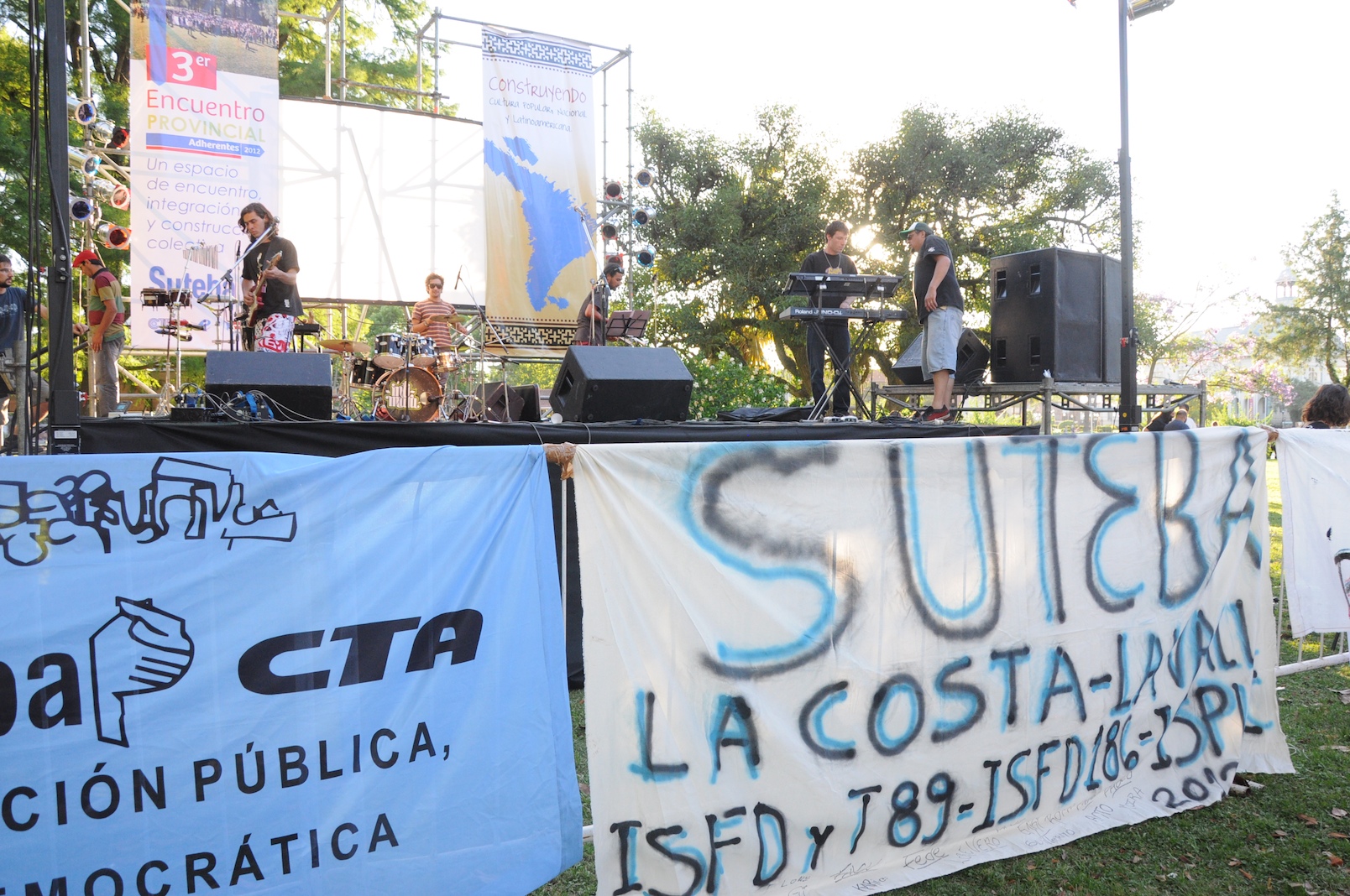 Es el tercer año que SUTEBA desarrolla este Encuentro y esta vez hubo dos bandas invitadas: Intimuru y Superlógico. Asistieron compañeros de las Seccionales de Gral. Sarmiento, Merlo, San Isidro, San Martín, 3 de Febrero, Vicente López, Baradero, San Nicolás, Brandsen, Cañuelas, Esteban Echeverría, Florencio Varela, La Matanza, Bragado, Chivilcoy, Pehuajó, Lezama, La Costa, Las Flores, Adolfo Alsina, Bahía Blanca, González Chávez, Coronel Rosales, Guaminí, Carmen de Patagones, Puán, Tres Arroyos, Villarino, Salliqueló, Laprida, Azul, Bolivar, Tapalqué, Saladillo, Morón, San Miguel, José C. Paz, Punta Indio, Tigre y Punta Alta.