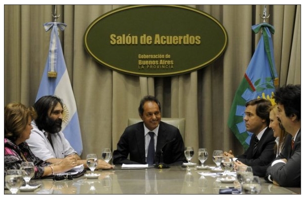 Los referentes de los sindicatos del Frente Gremial Docente Bonaerense se reunieron este mediodía con el gobernador Daniel Scioli a quien le plantearon trabajar para mejorar la calidad de la educación en la provincia de Buenos Aires.
