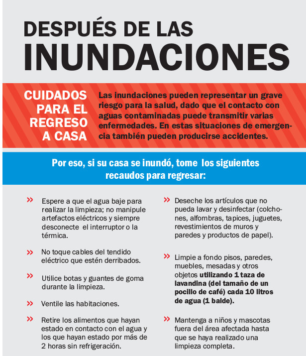 | LIMPIEZA LUEGO DE QUE BAJE EL AGUA | - Espere a que el agua baje para realizar la limpieza; no manipule artefactos eléctricos y siempre desconecte el interruptor o la térmica.