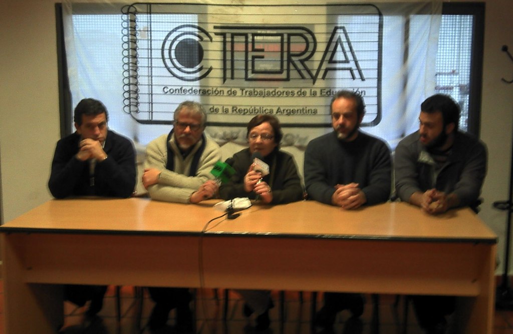 Participaron de la conferencia Eduardo López -Sec. General de UTE-CTERA, Eduardo Pereira -Sec. Relac. Internacionales de CTERA y miembro de SUTEBA-, Felipe Vega -en representación de estudiantes universitarios de UTE- y Alejo Demichelis -Sec. de Prensa de CTERA-.