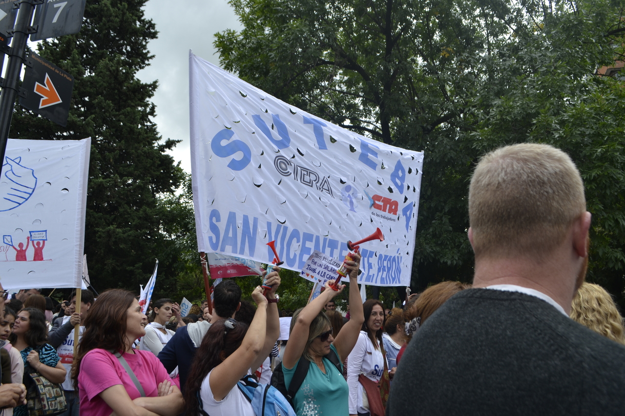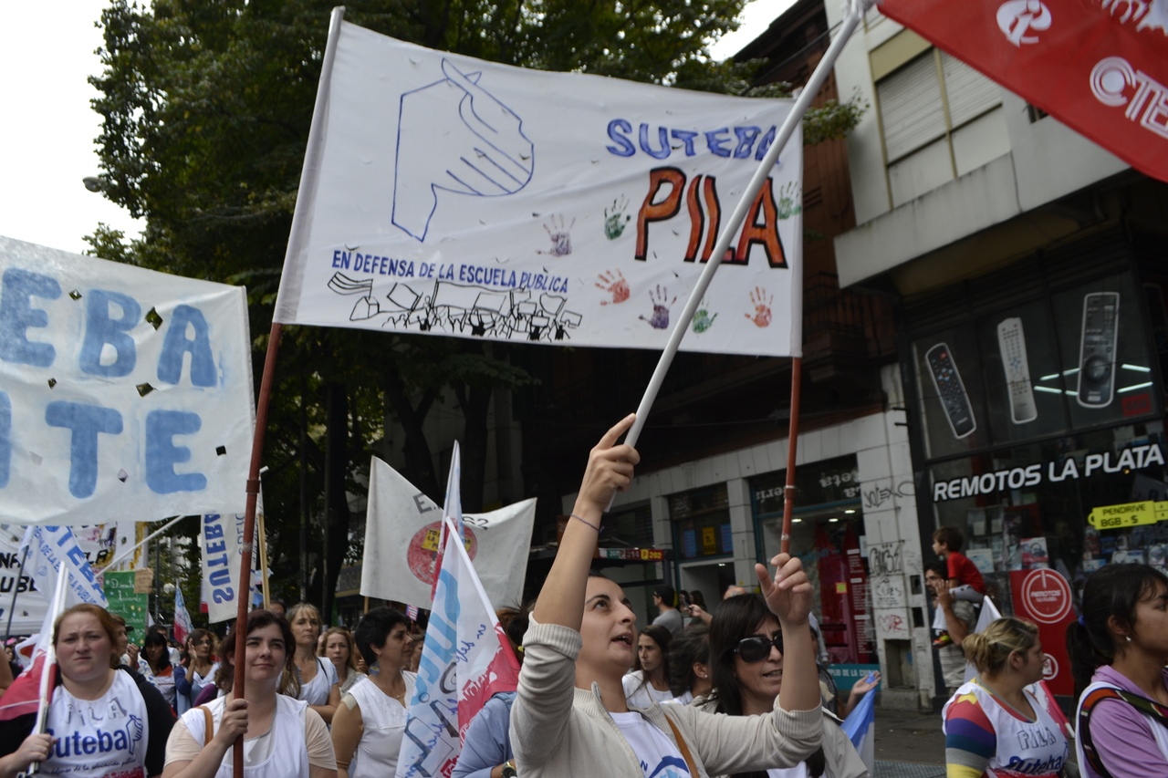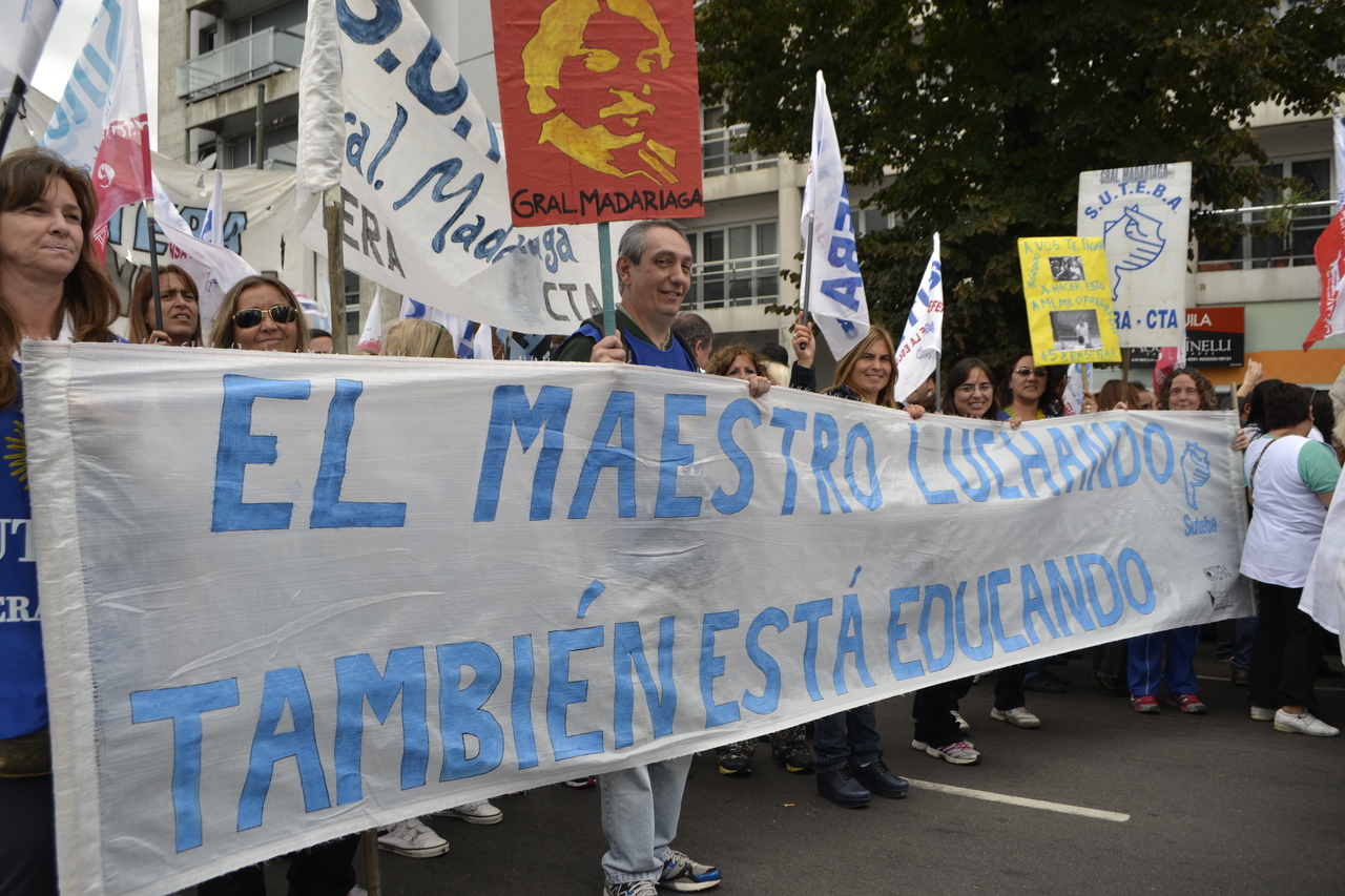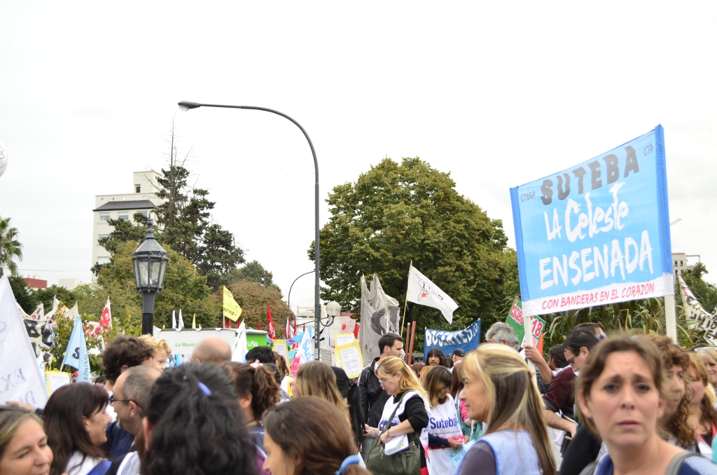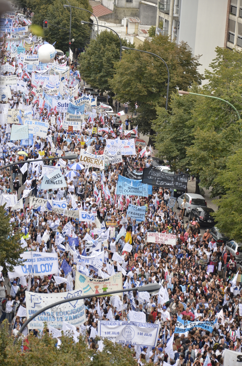 Toda la ciudad de La Plata se transformó en una escuela. Más de 25 cuadras de la avenida 7 desbordaban de docentes. Los Trabajadores de la Educación reemplazaron la tiza y los libros por las banderas y los bombos y se hicieron sentir en toda la ciudad, con la tranquilidad de saber que el docente que lucha también está enseñando y con el acompañamiento de los padres y niños que al costado, en las veredas, aplaudían, en una clara señal de apoyo a la lucha docente, a los trabajadores mientras marchaban.
