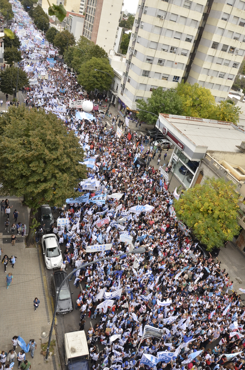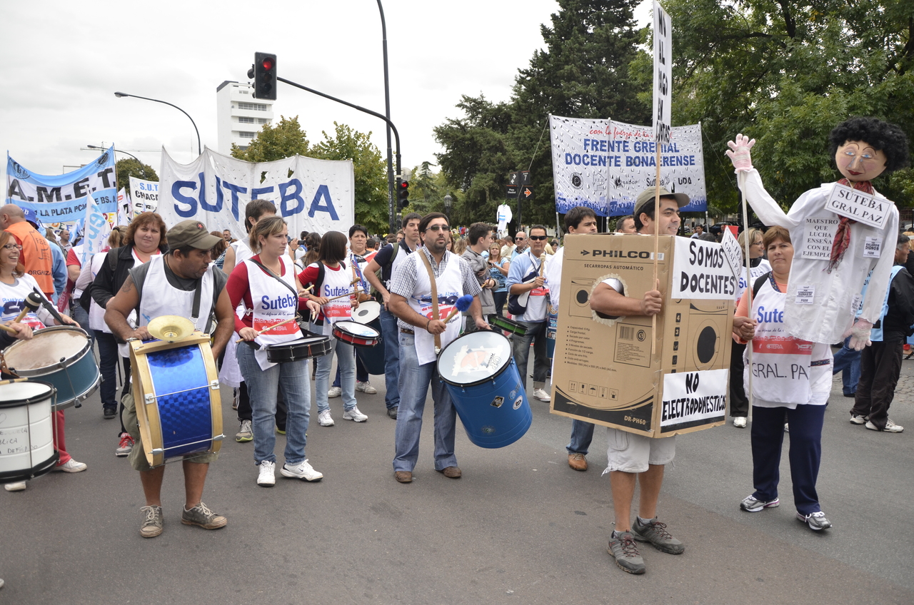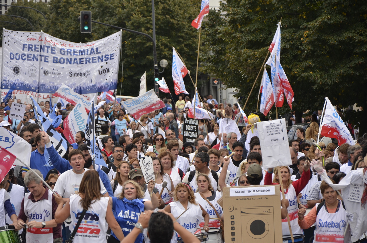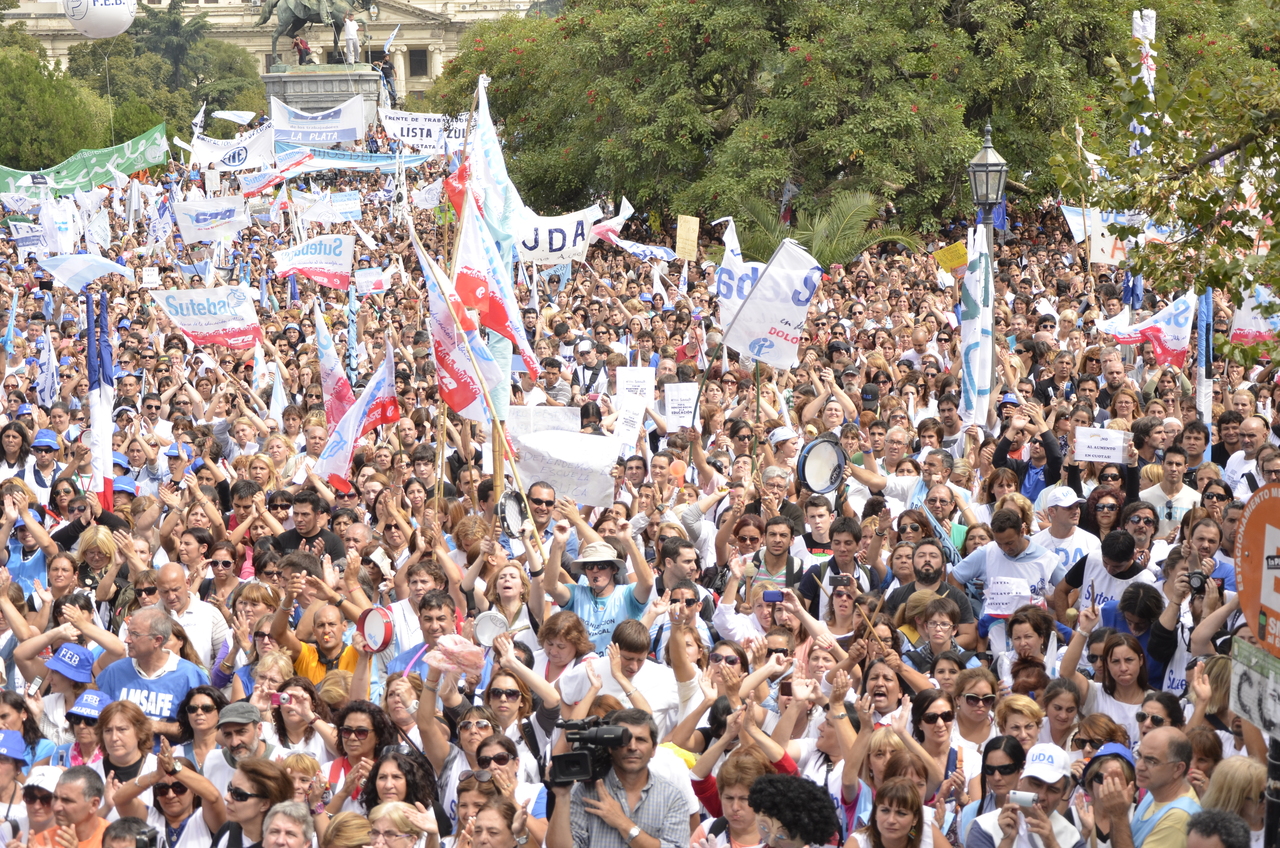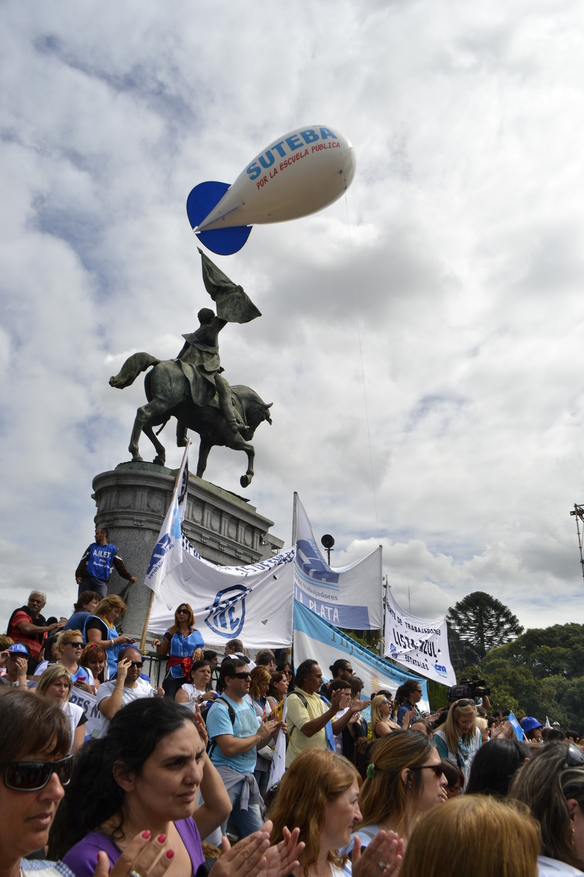 Toda la ciudad de La Plata se transformó en una escuela. Más de 25 cuadras de la avenida 7 desbordaban de docentes. Los Trabajadores de la Educación reemplazaron la tiza y los libros por las banderas y los bombos y se hicieron sentir en toda la ciudad, con la tranquilidad de saber que el docente que lucha también está enseñando y con el acompañamiento de los padres y niños que al costado, en las veredas, aplaudían, en una clara señal de apoyo a la lucha docente, a los trabajadores mientras marchaban.