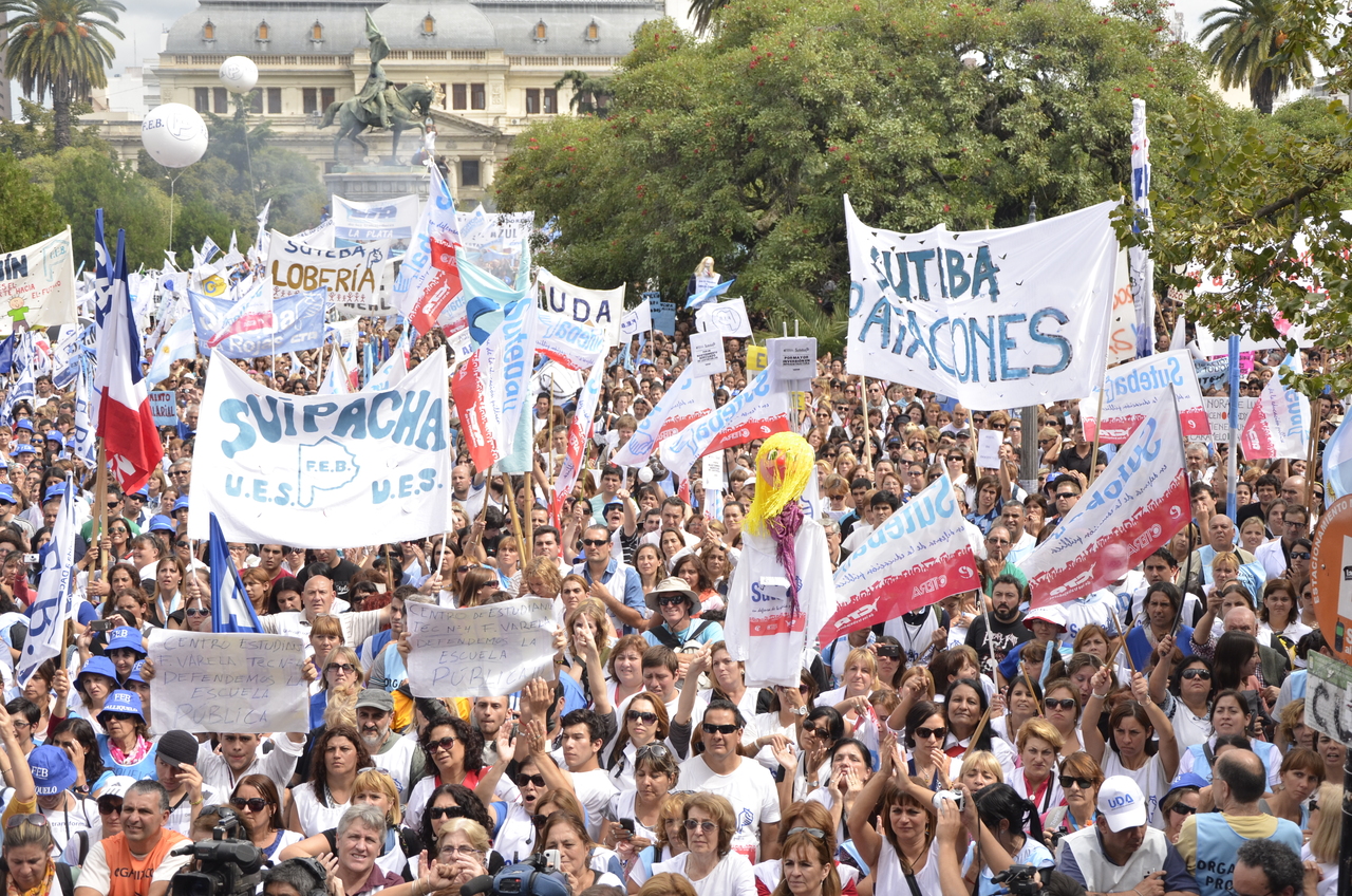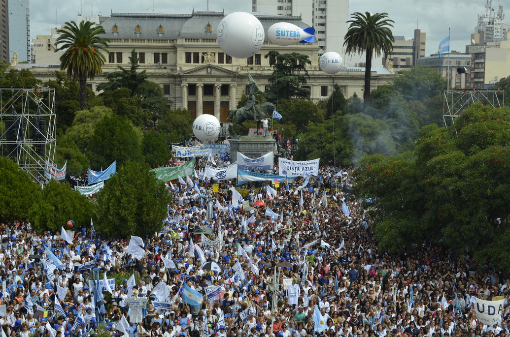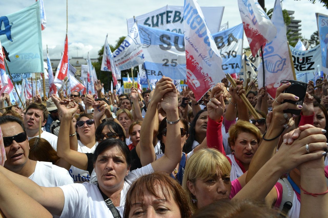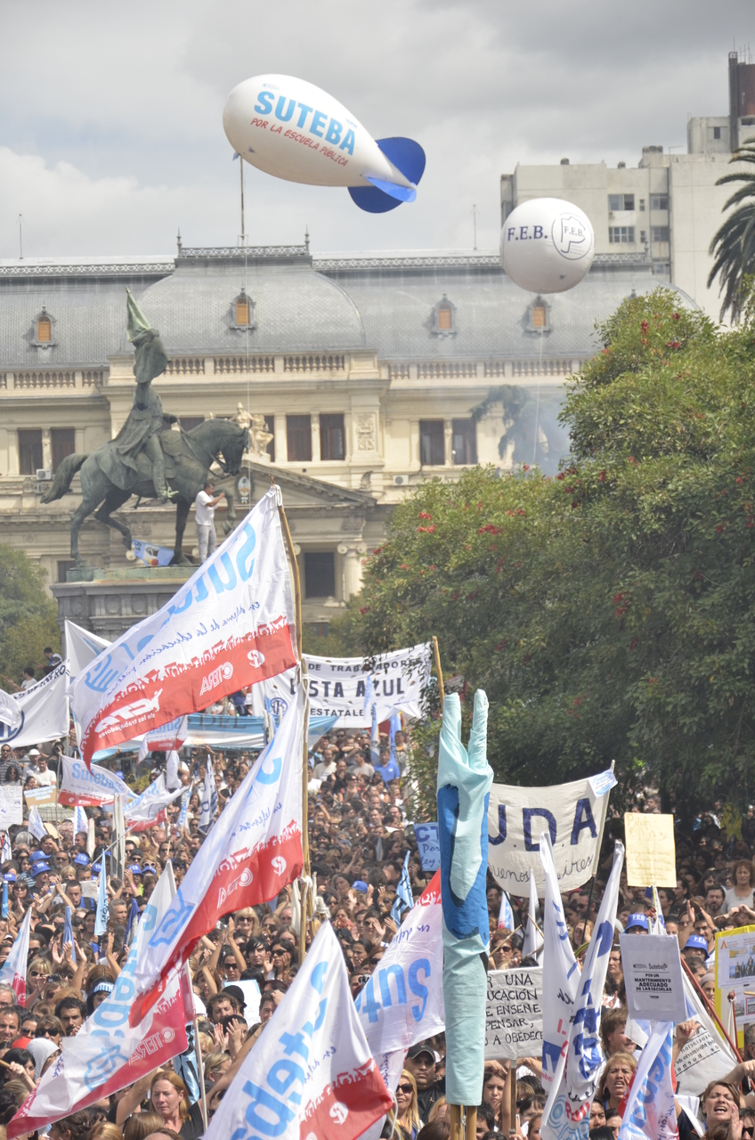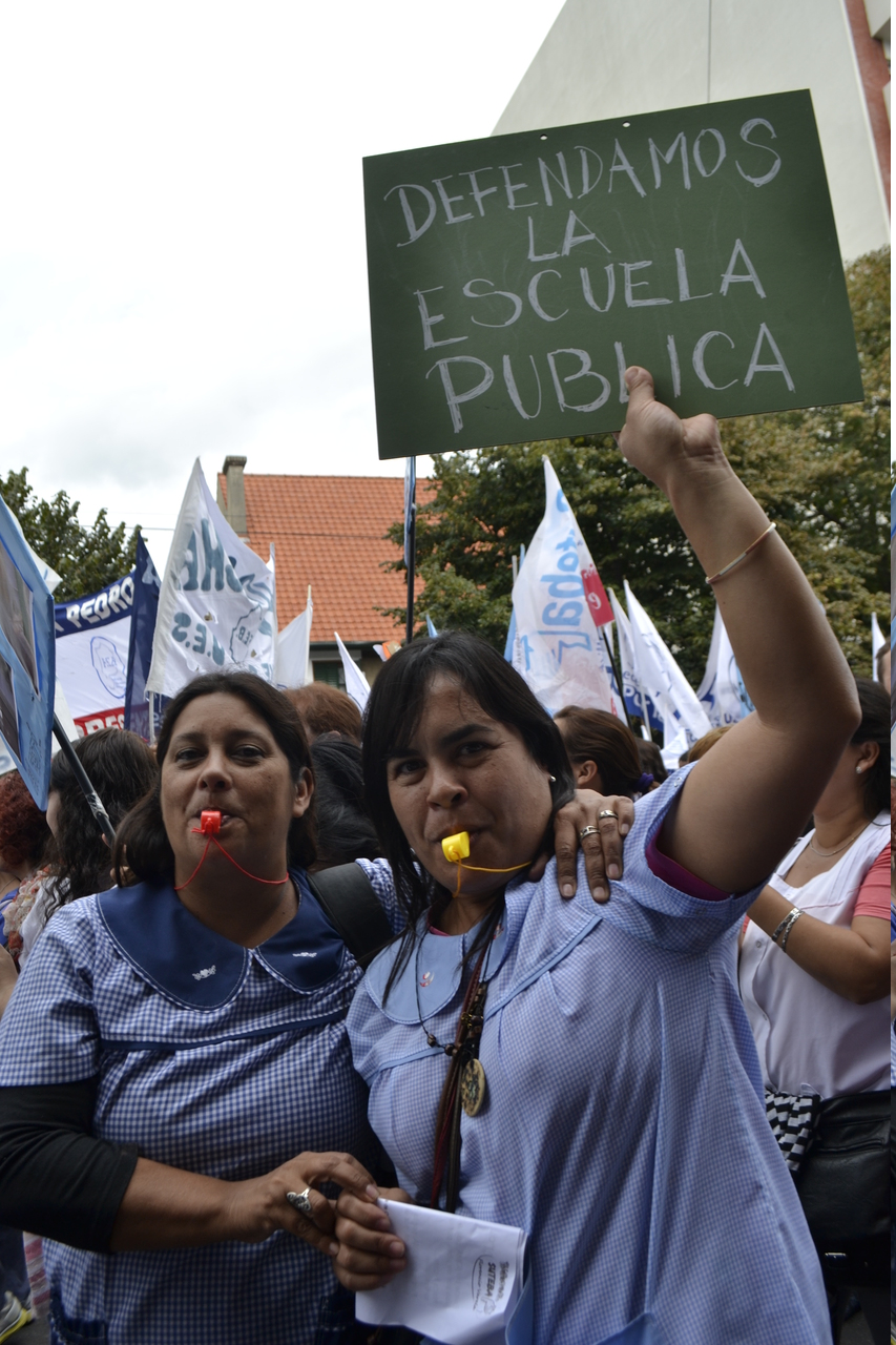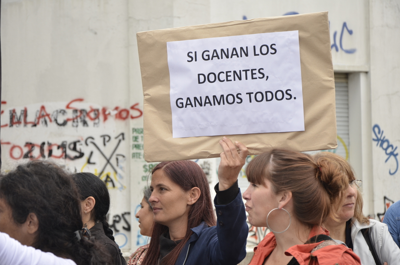 Toda la ciudad de La Plata se transformó en una escuela. Más de 25 cuadras de la avenida 7 desbordaban de docentes. Los Trabajadores de la Educación reemplazaron la tiza y los libros por las banderas y los bombos y se hicieron sentir en toda la ciudad, con la tranquilidad de saber que el docente que lucha también está enseñando y con el acompañamiento de los padres y niños que al costado, en las veredas, aplaudían, en una clara señal de apoyo a la lucha docente, a los trabajadores mientras marchaban.