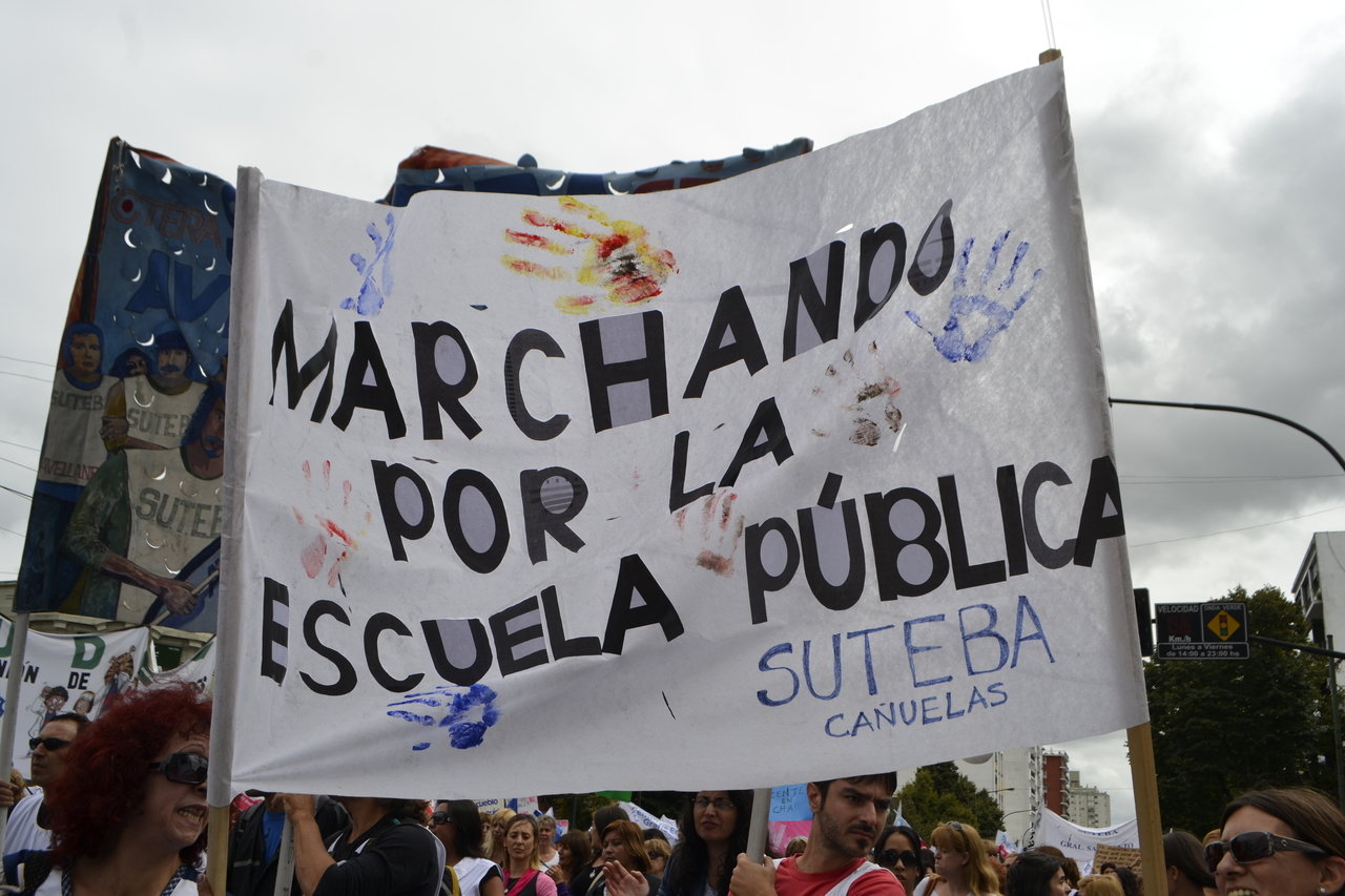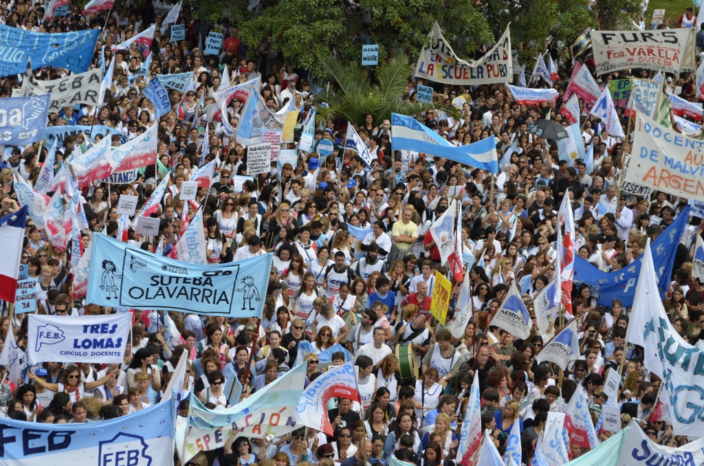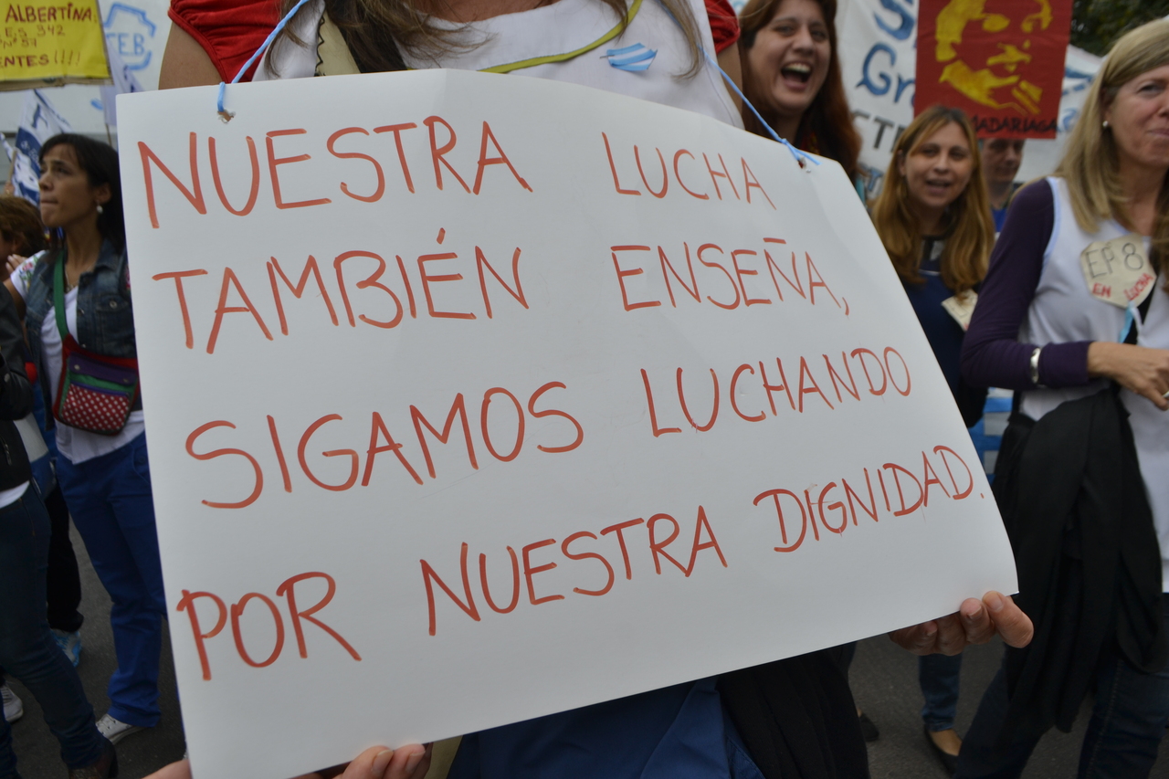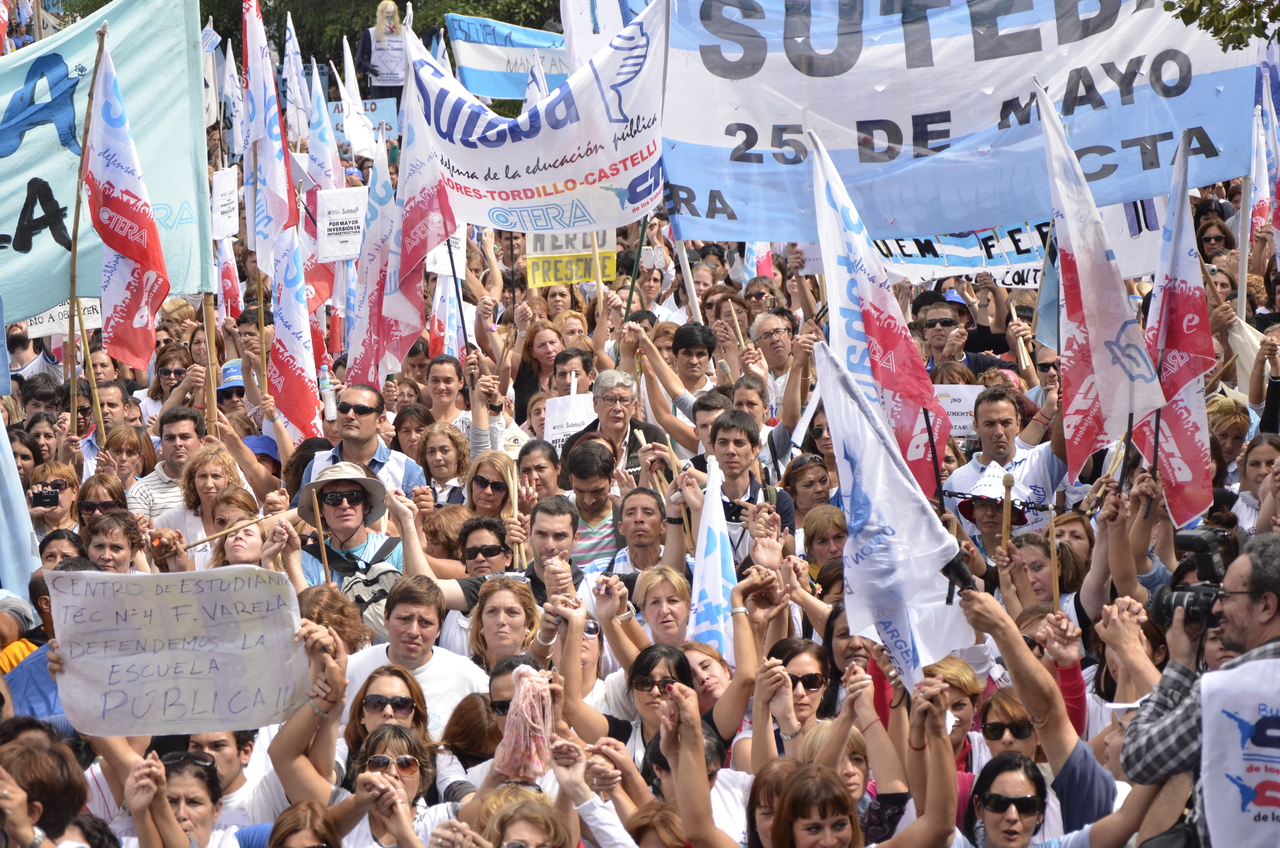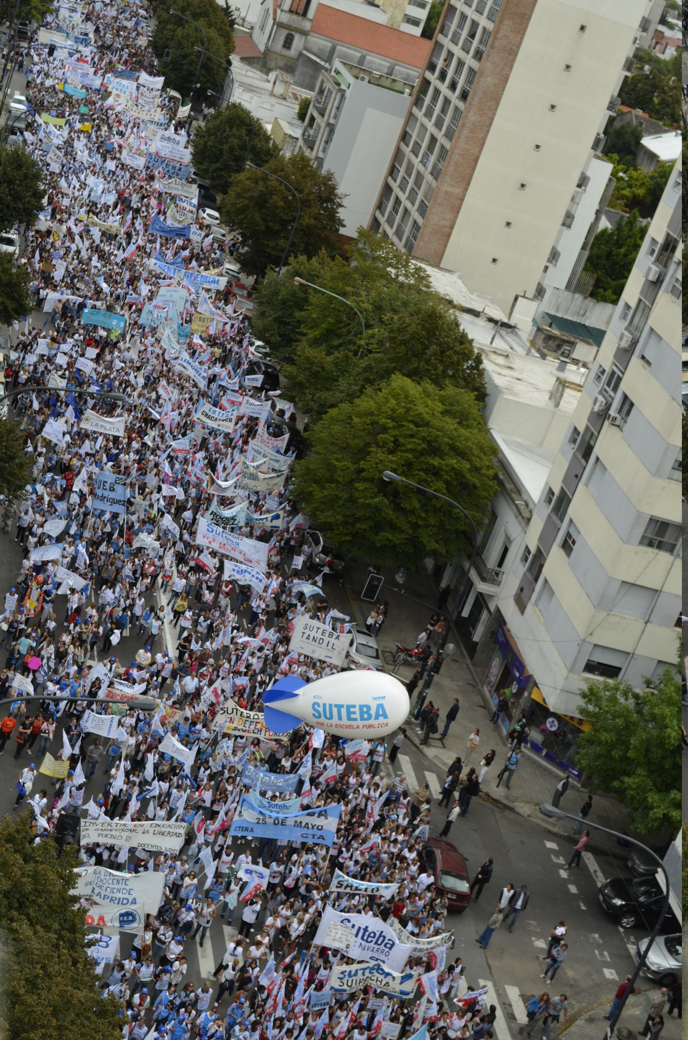 Toda la ciudad de La Plata se transformó en una escuela. Más de 25 cuadras de la avenida 7 desbordaban de docentes. Los Trabajadores de la Educación reemplazaron la tiza y los libros por las banderas y los bombos y se hicieron sentir en toda la ciudad, con la tranquilidad de saber que el docente que lucha también está enseñando y con el acompañamiento de los padres y niños que al costado, en las veredas, aplaudían, en una clara señal de apoyo a la lucha docente, a los trabajadores mientras marchaban.