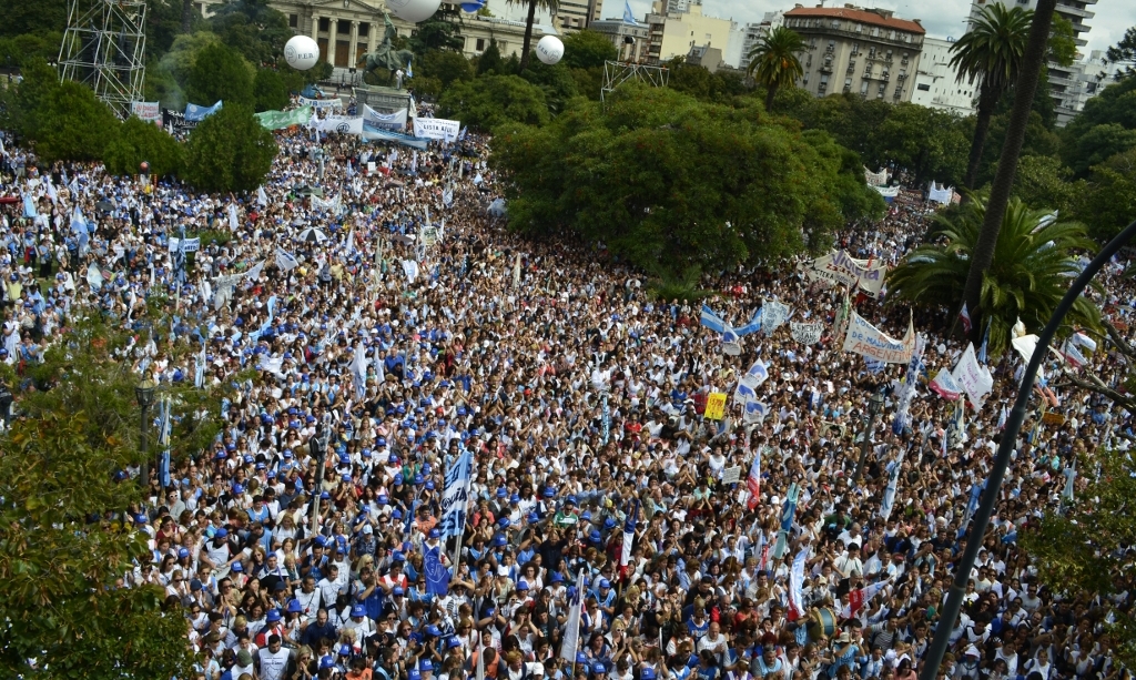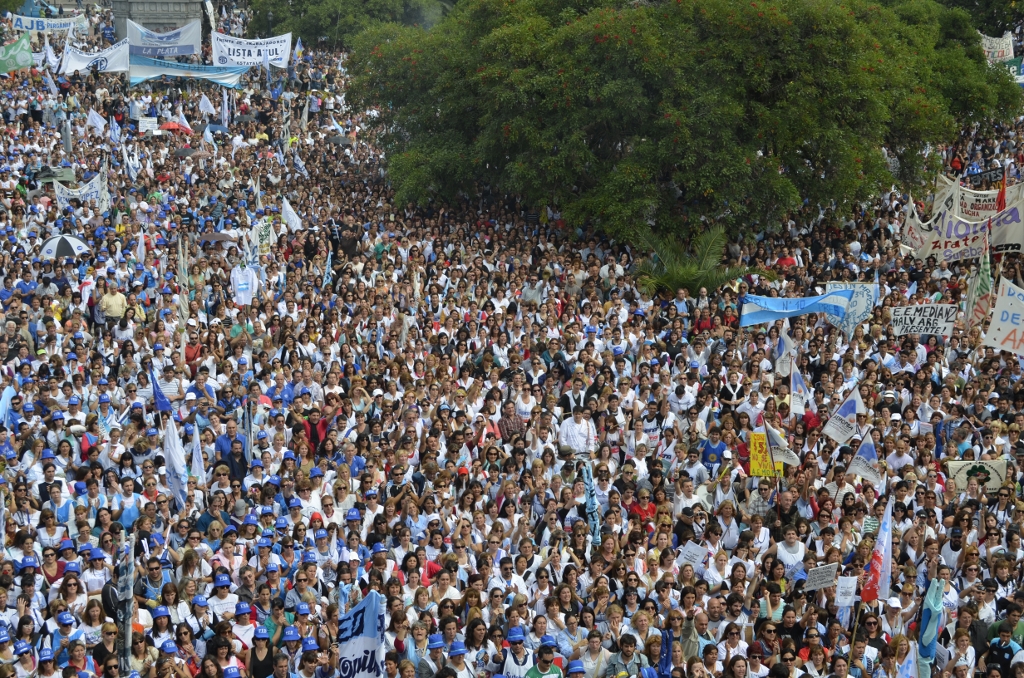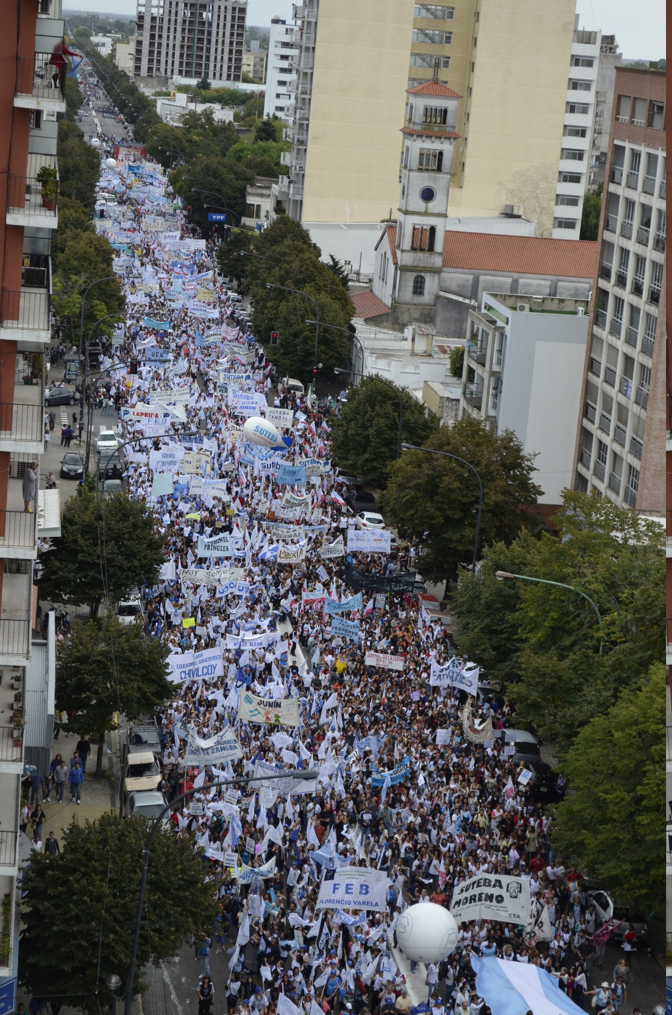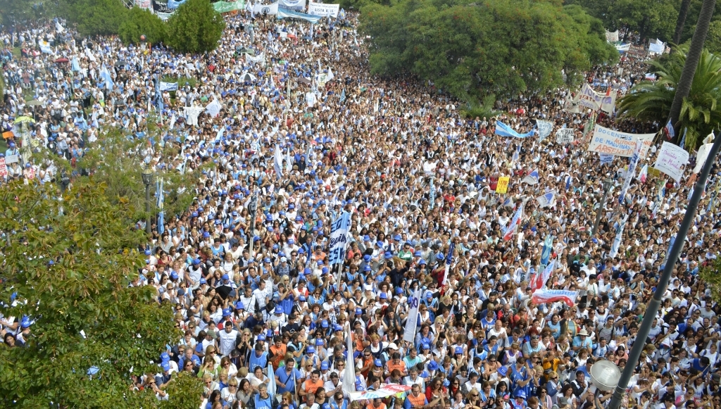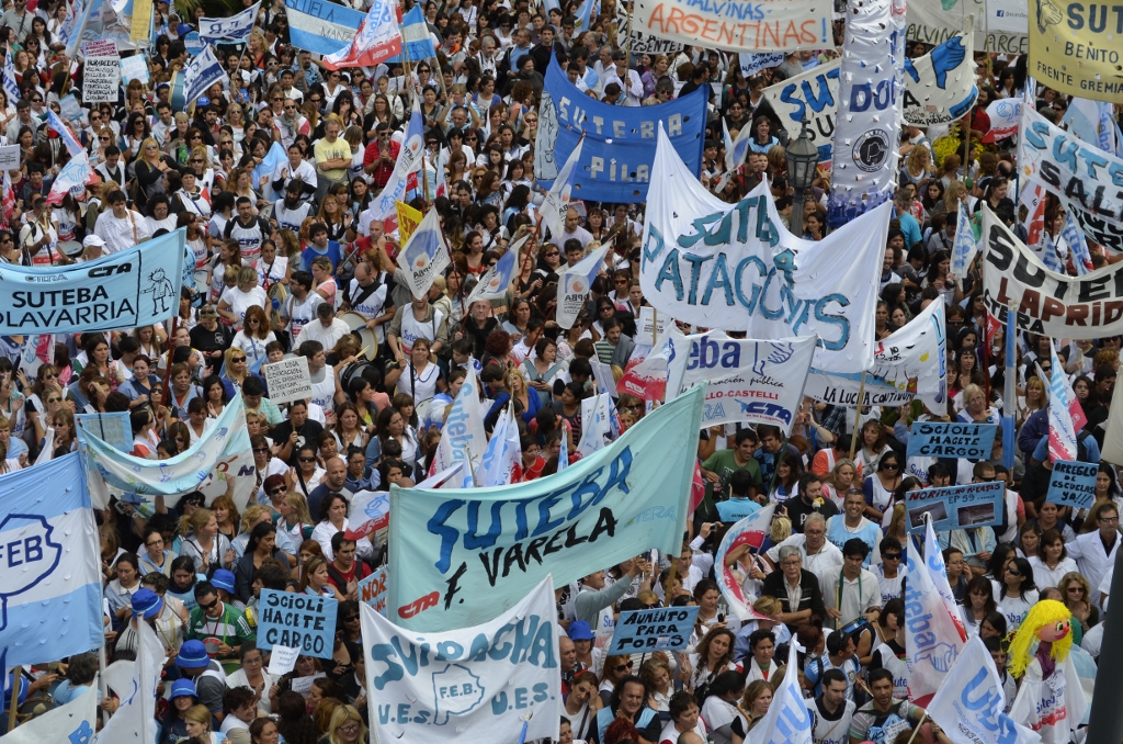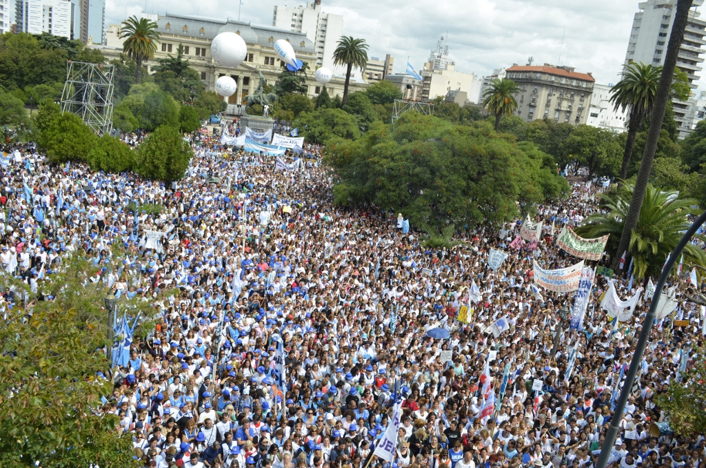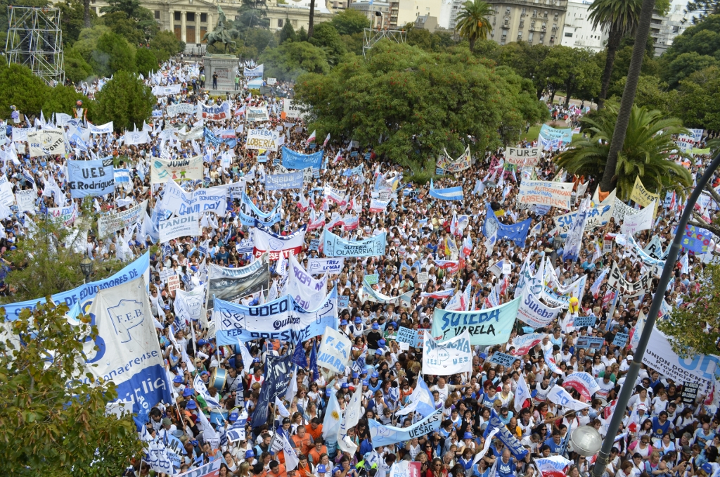 Toda la ciudad de La Plata se transformó en una escuela. Más de 25 cuadras de la avenida 7 desbordaban de docentes. Los Trabajadores de la Educación reemplazaron la tiza y los libros por las banderas y los bombos y se hicieron sentir en toda la ciudad, con la tranquilidad de saber que el docente que lucha también está enseñando y con el acompañamiento de los padres y niños que al costado, en las veredas, aplaudían, en una clara señal de apoyo a la lucha docente, a los trabajadores mientras marchaban.