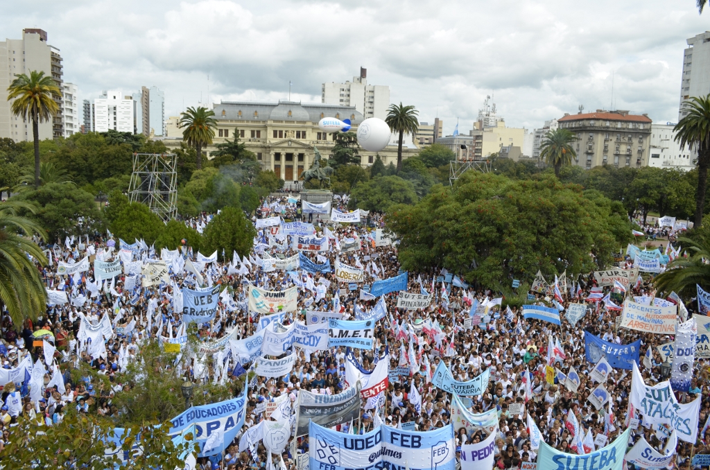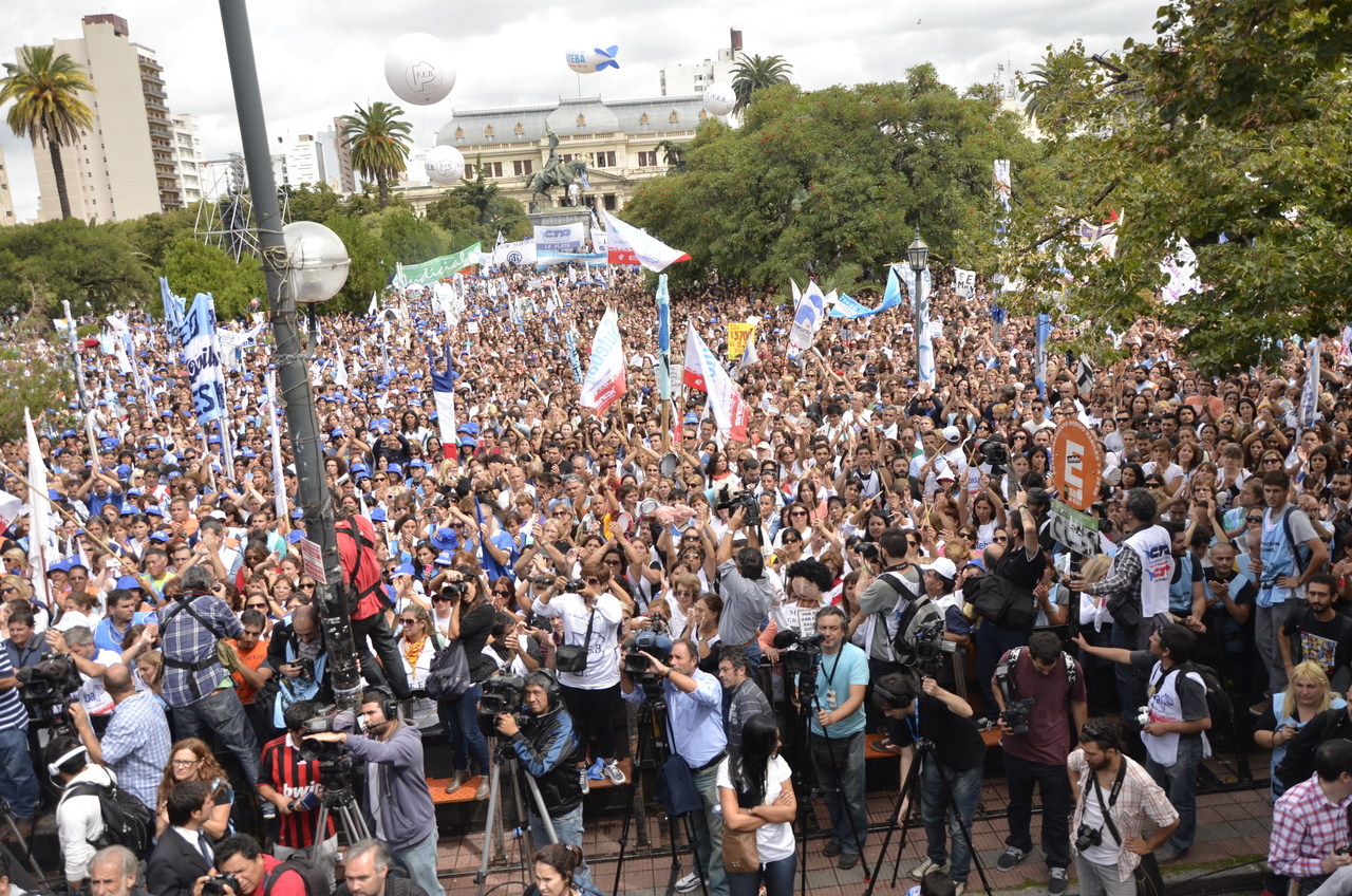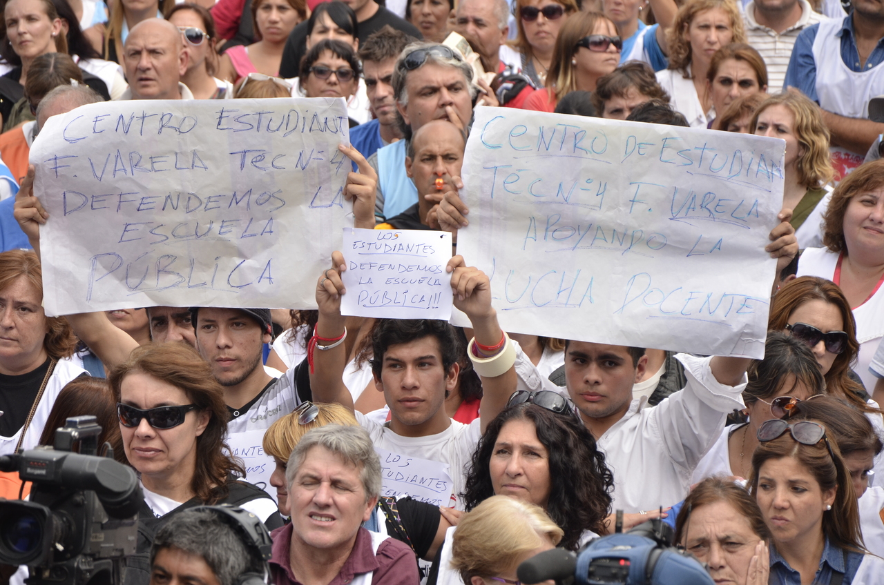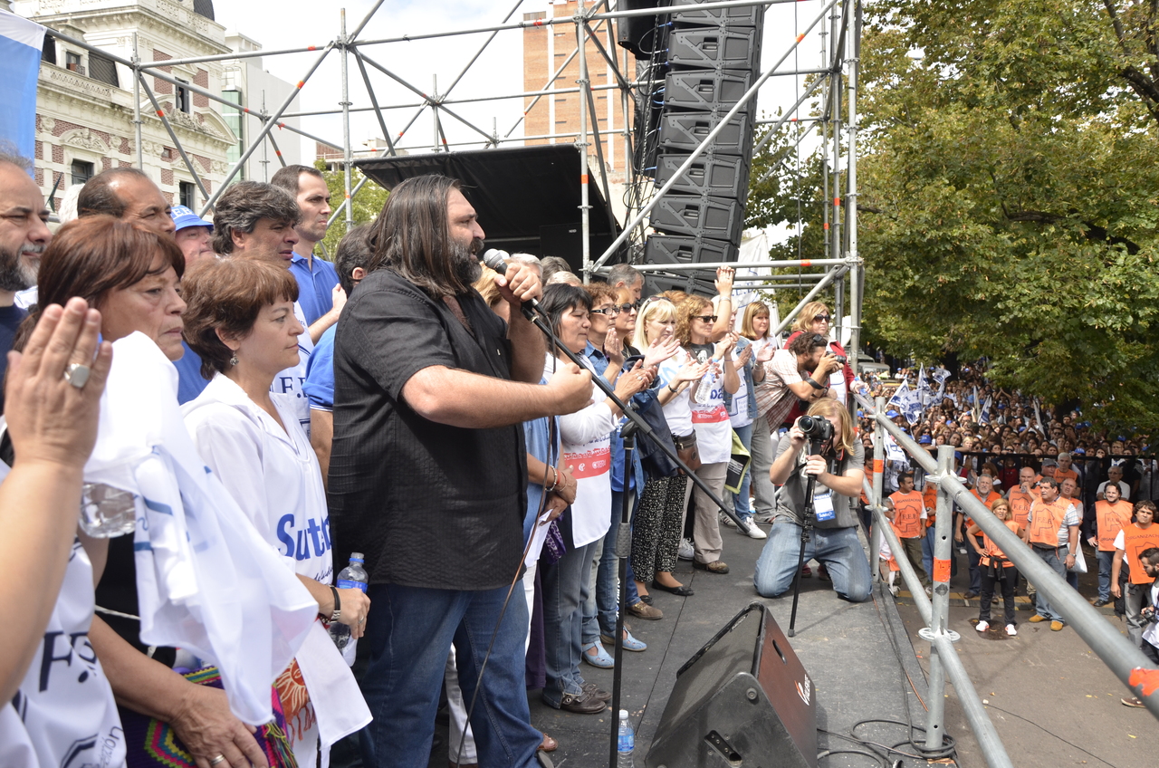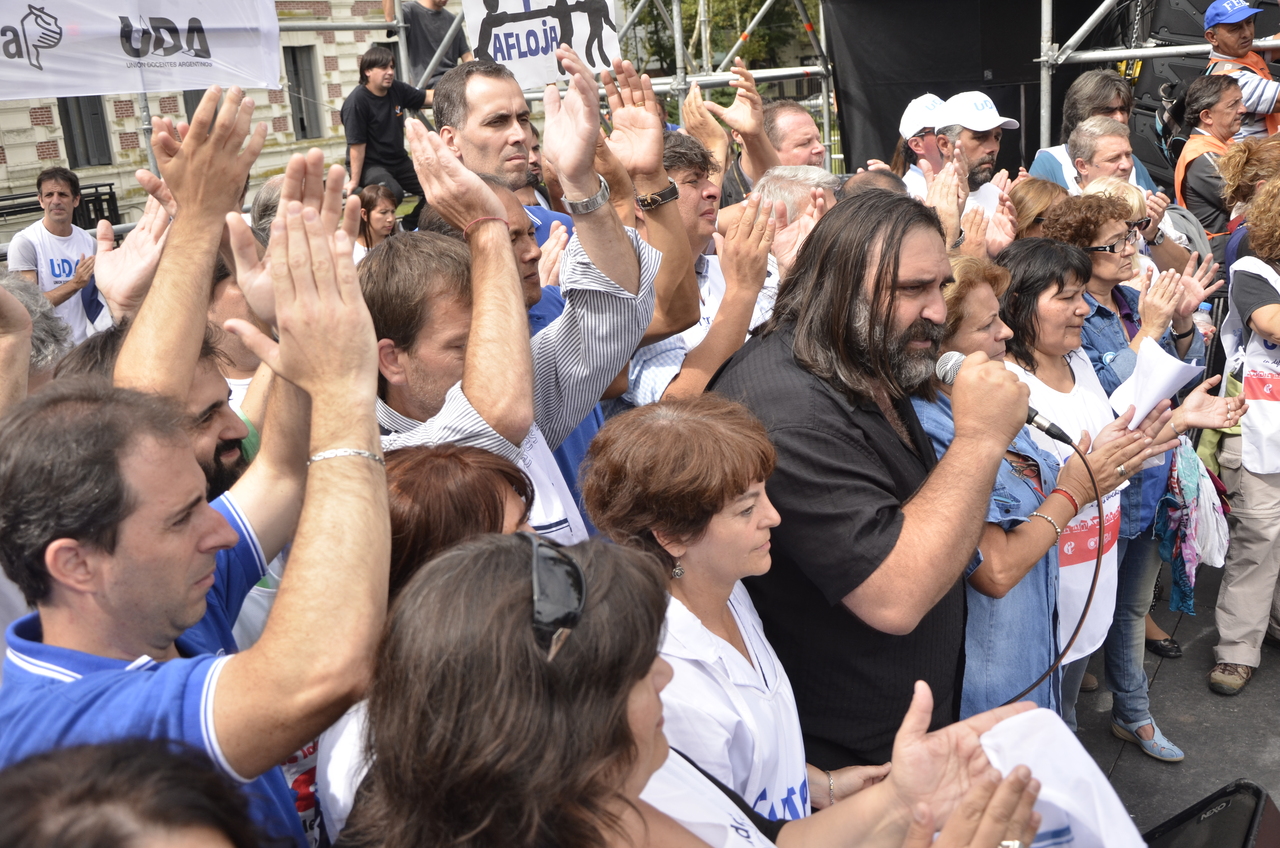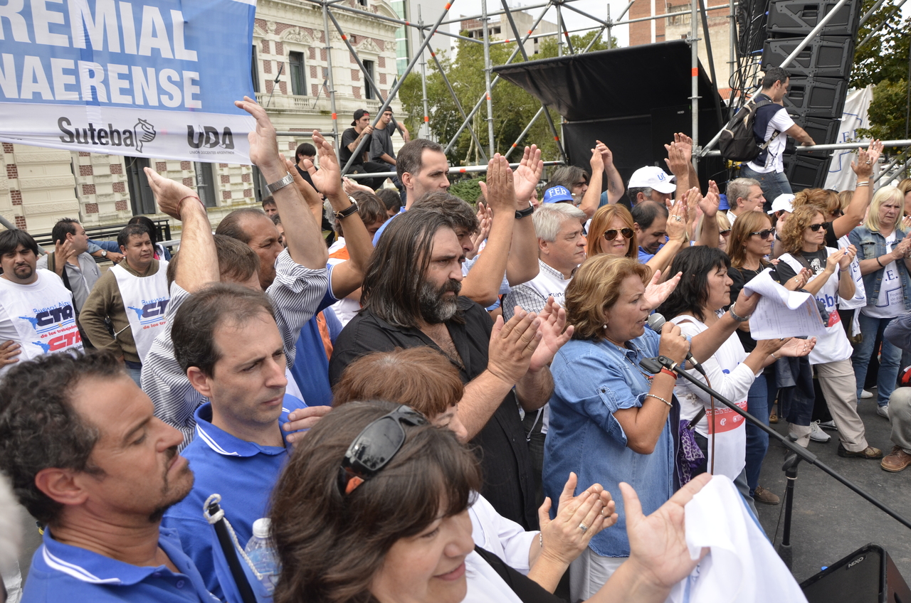 Durante el acto frente a la gobernación hablaron Roberto Baradel, Secretario General de SUTEBA; Mirta Petrocini, Presidenta de la FEB; y Jorge Doval, Secretario General de AMET. Además, el respetuoso silencio de los Trabajadores de la Educación escuchando a los oradores y respondiendo con consignas, hacía pensar que se estaba estableciendo un diálogo entre los oradores y los presentes, en el que todos podían dar su opinión y ser escuchados.
