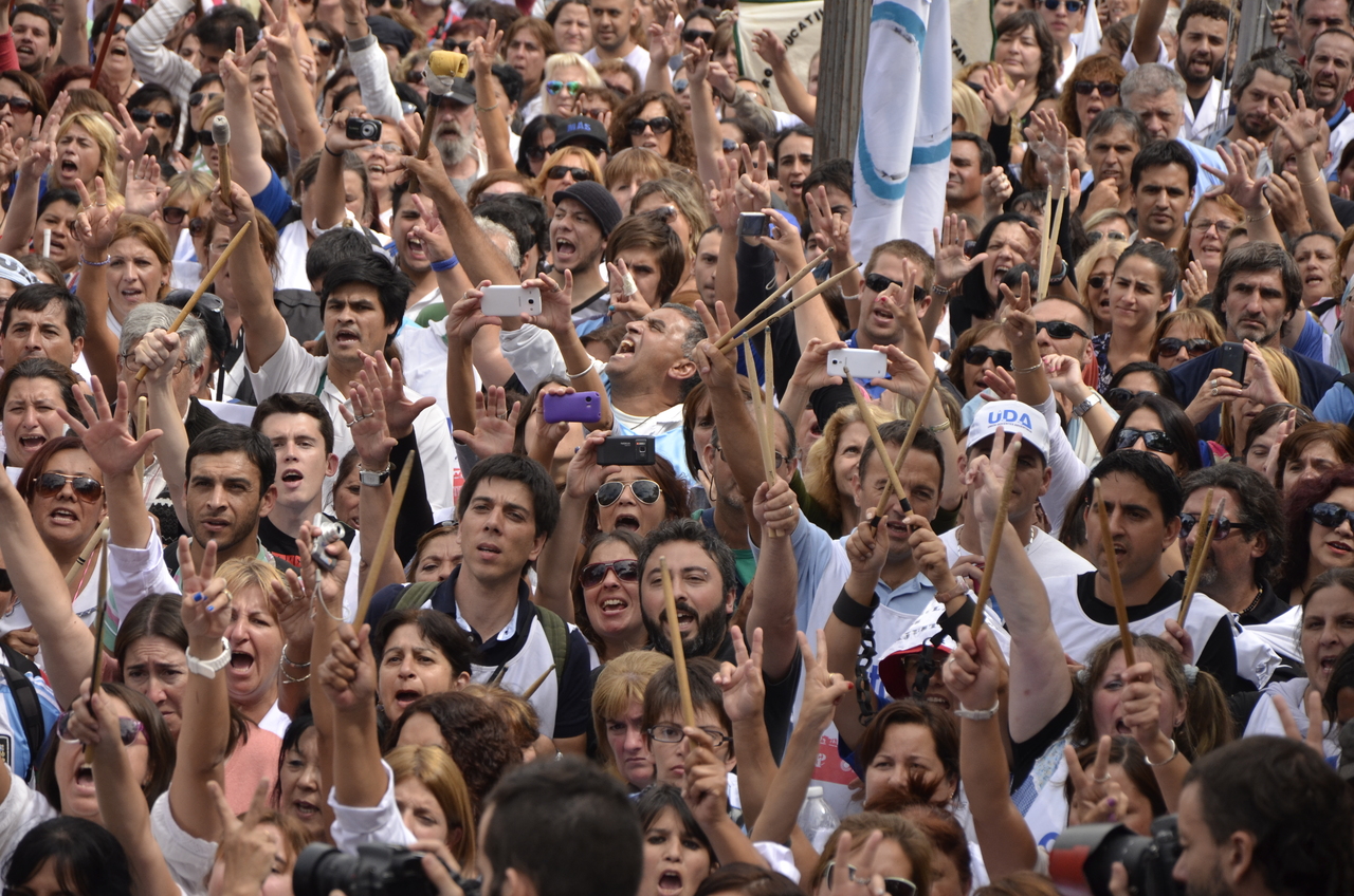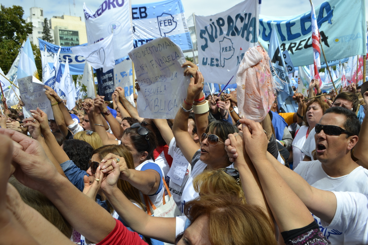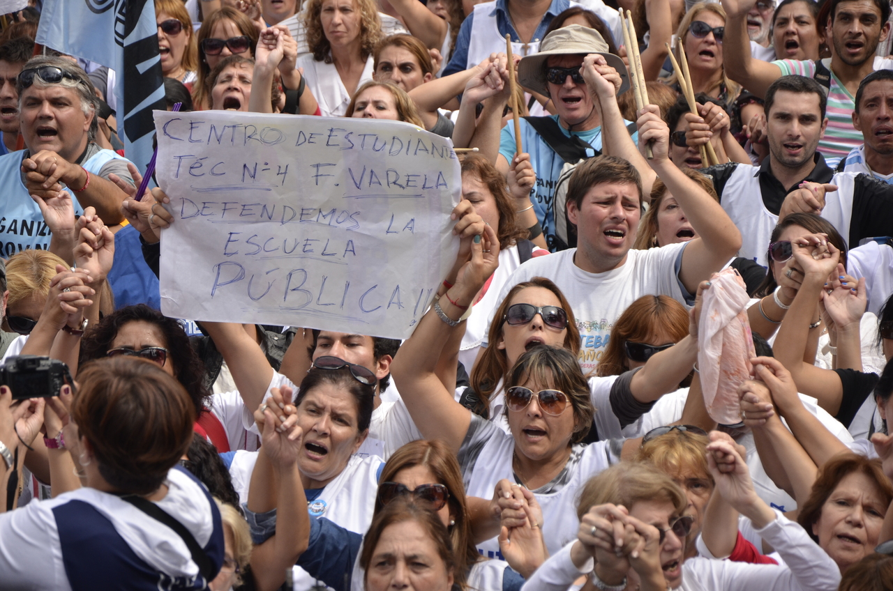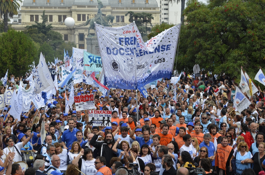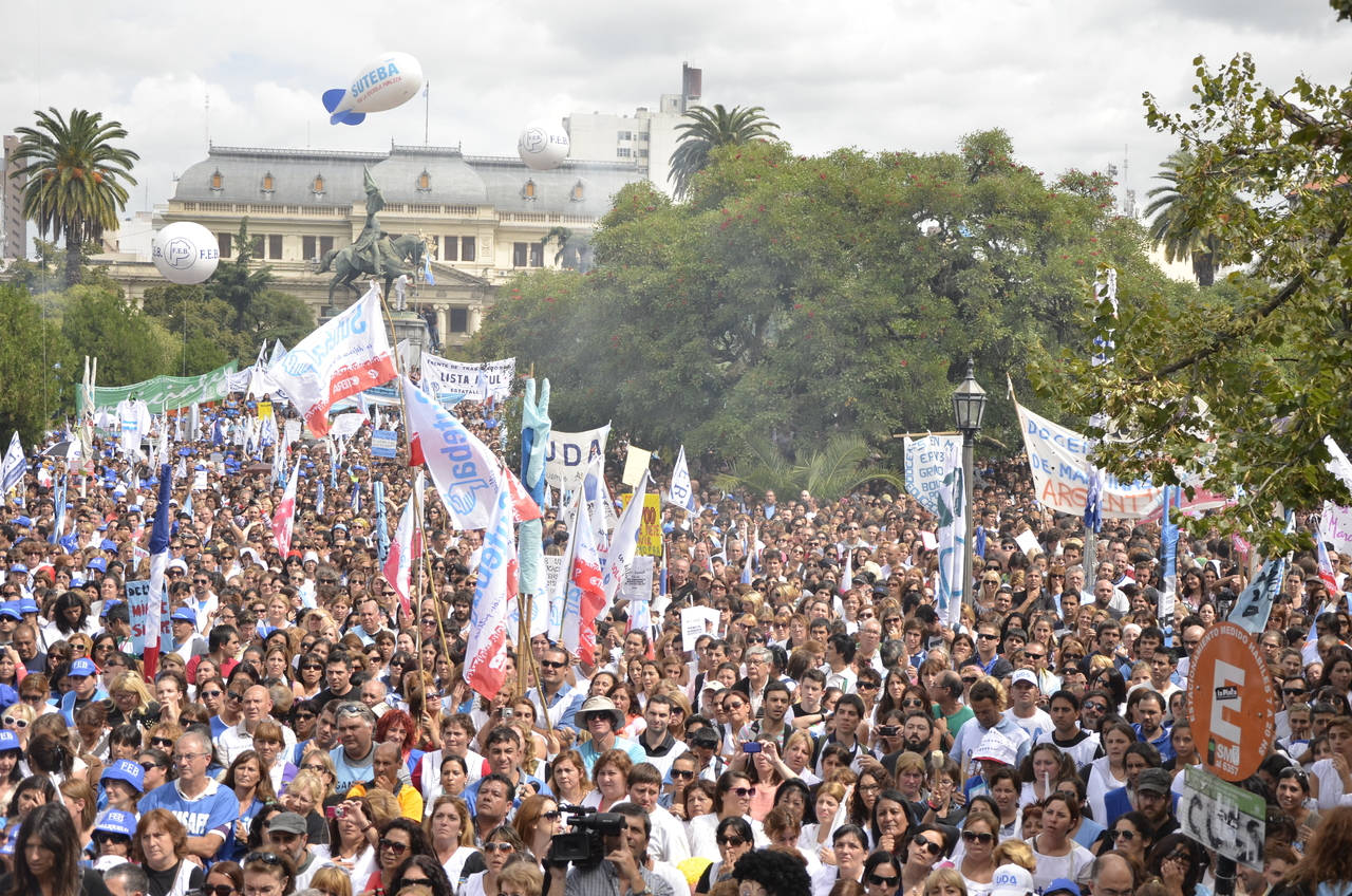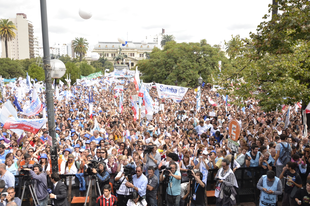 Durante el acto frente a la gobernación hablaron Roberto Baradel, Secretario General de SUTEBA; Mirta Petrocini, Presidenta de la FEB; y Jorge Doval, Secretario General de AMET. Además, el respetuoso silencio de los Trabajadores de la Educación escuchando a los oradores y respondiendo con consignas, hacía pensar que se estaba estableciendo un diálogo entre los oradores y los presentes, en el que todos podían dar su opinión y ser escuchados.