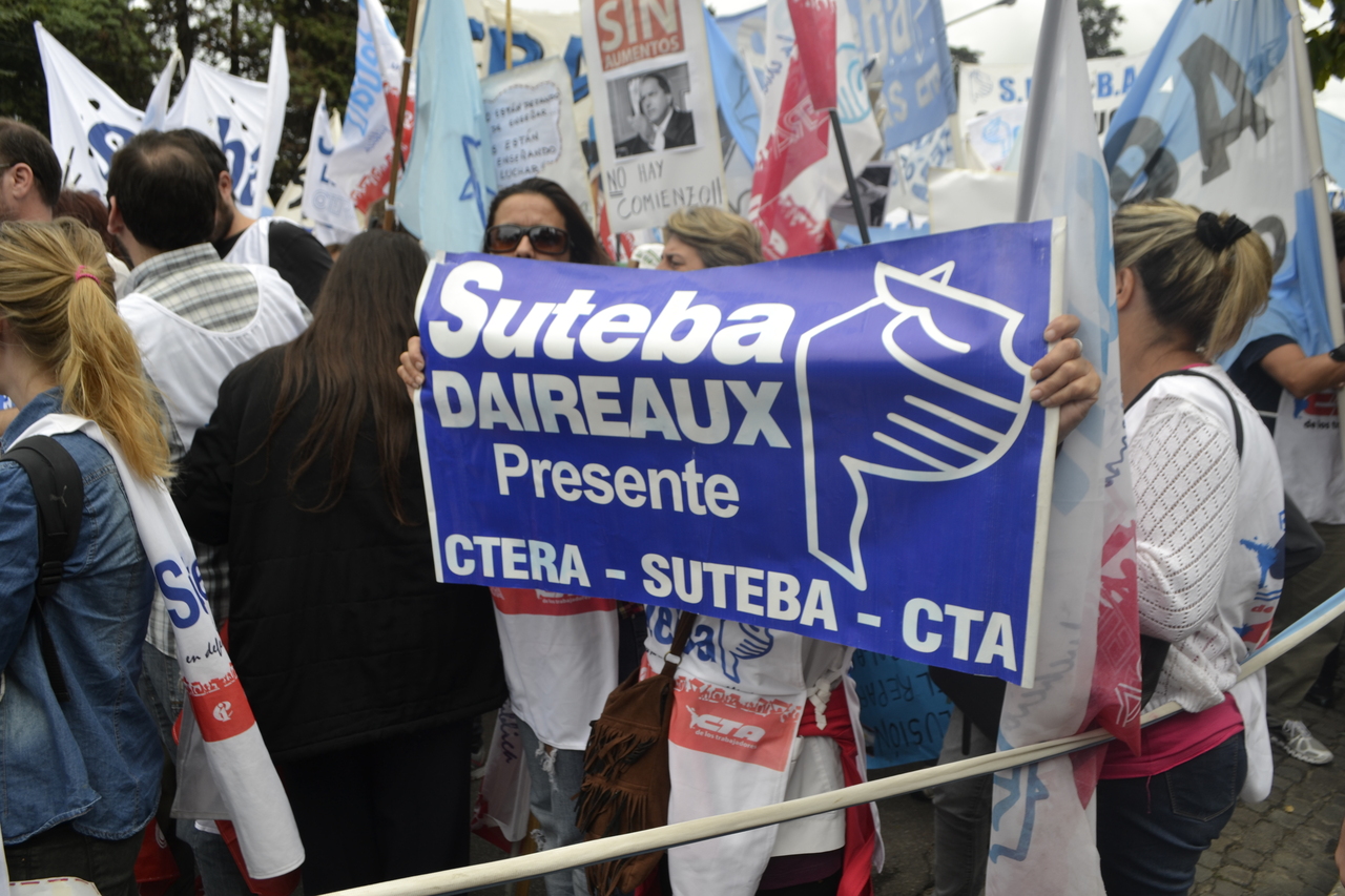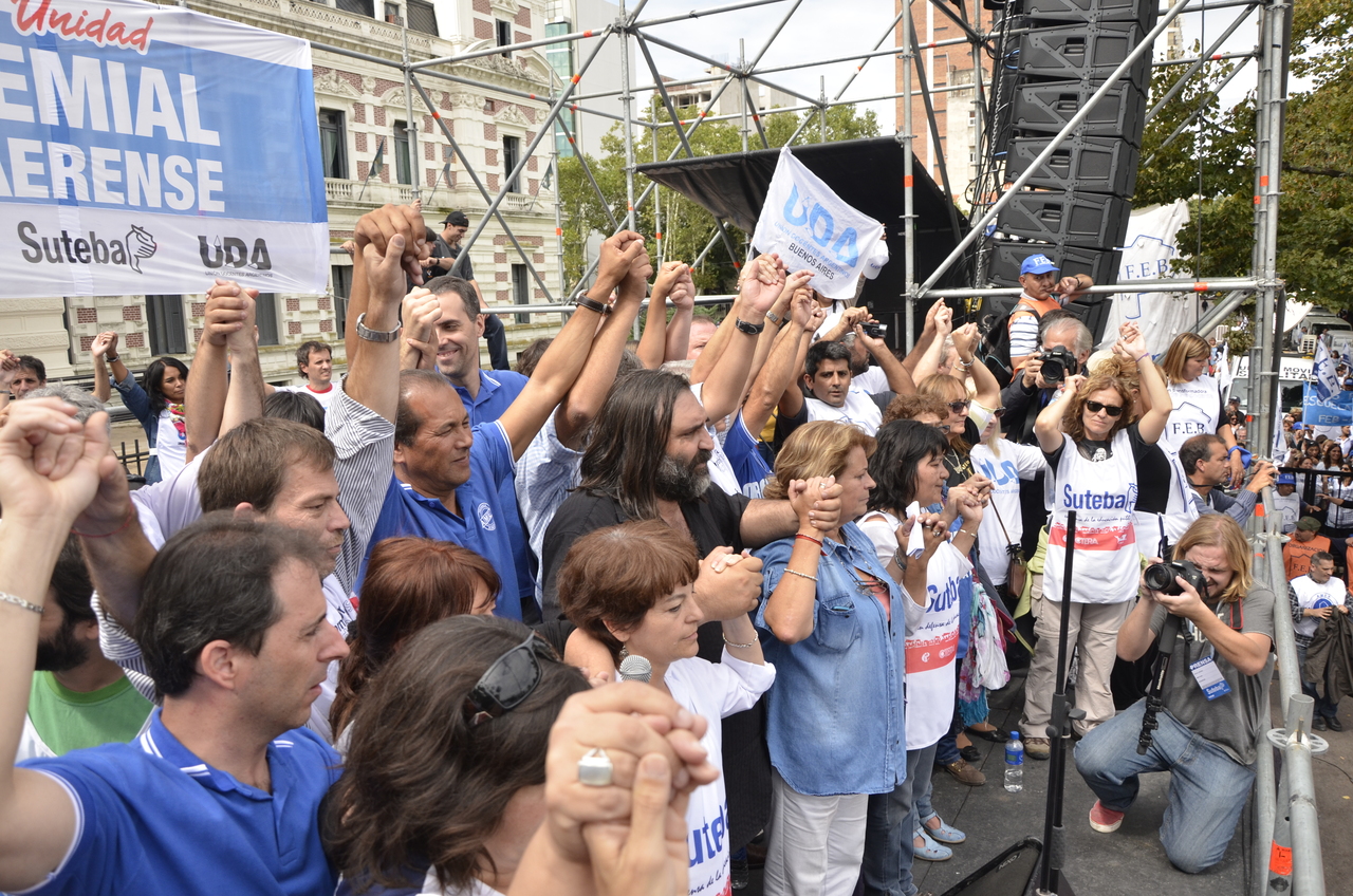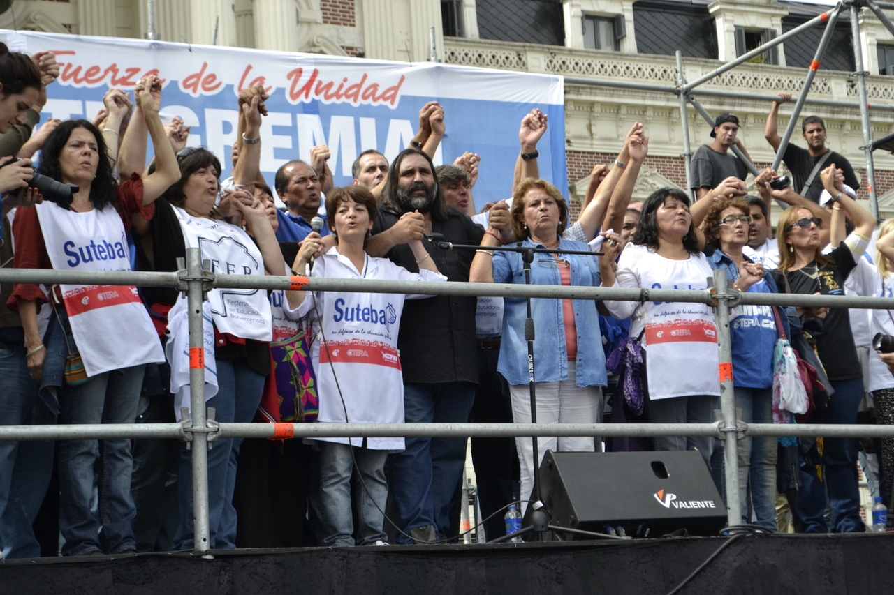 Por último, Baradel sostuvo: "Esto no se resuelve ni con conciliación obligatoria, ni con descuentos de los días de paro, ni con la quita de la personería gremial, se resuelve de una manera: dando un aumento salarial digno a todos los trabajadores de la educación de la Provincia de Buenos Aires".