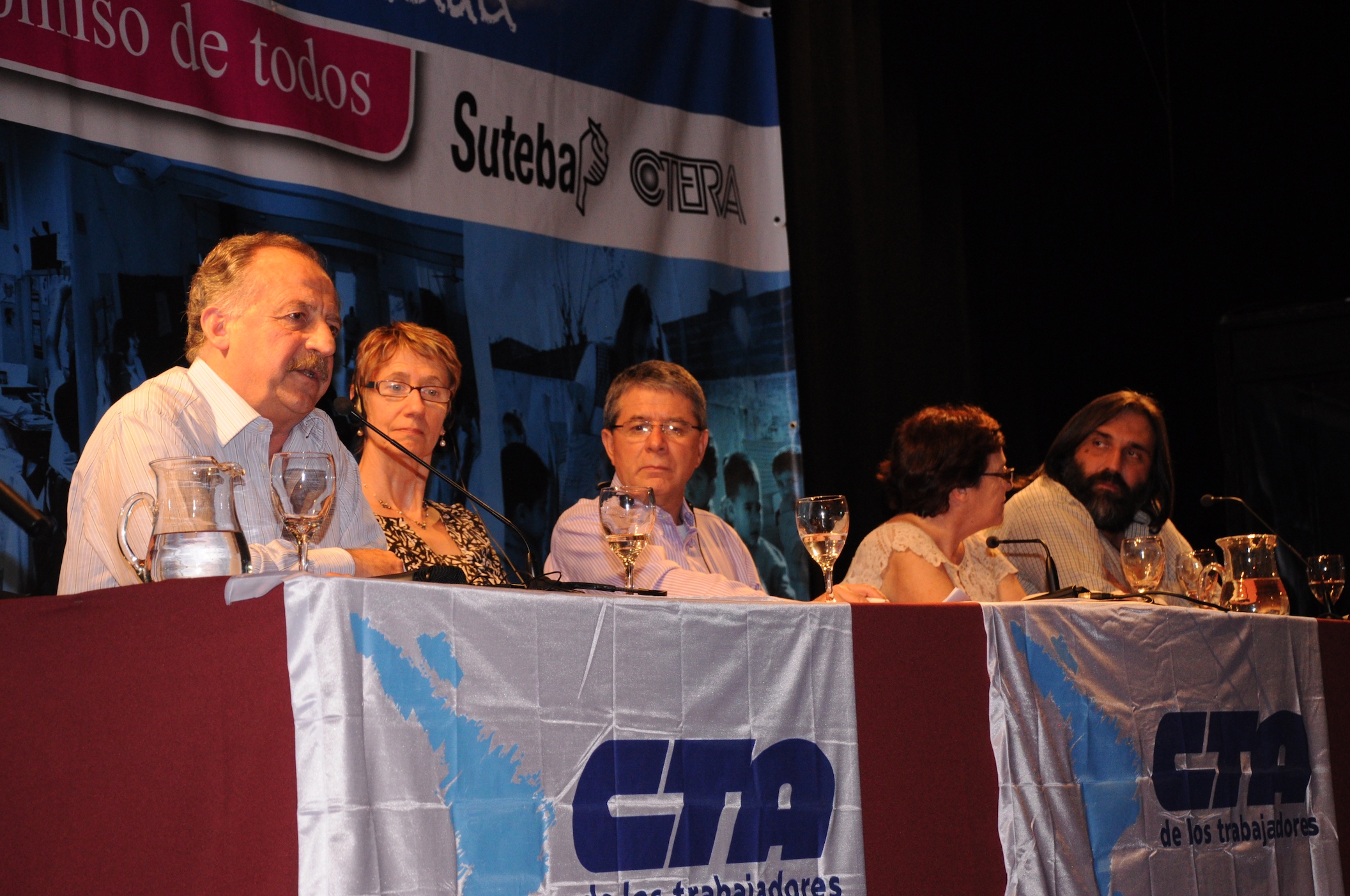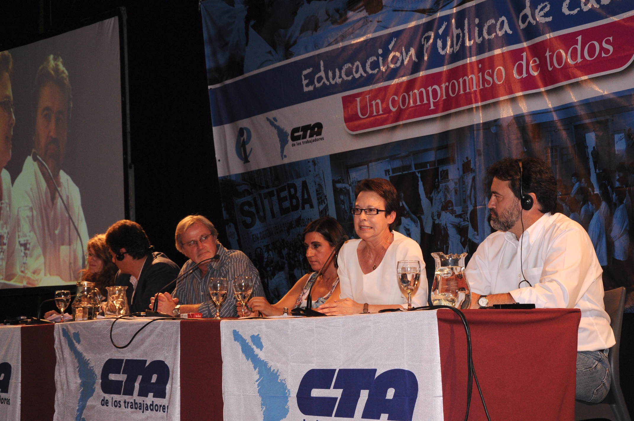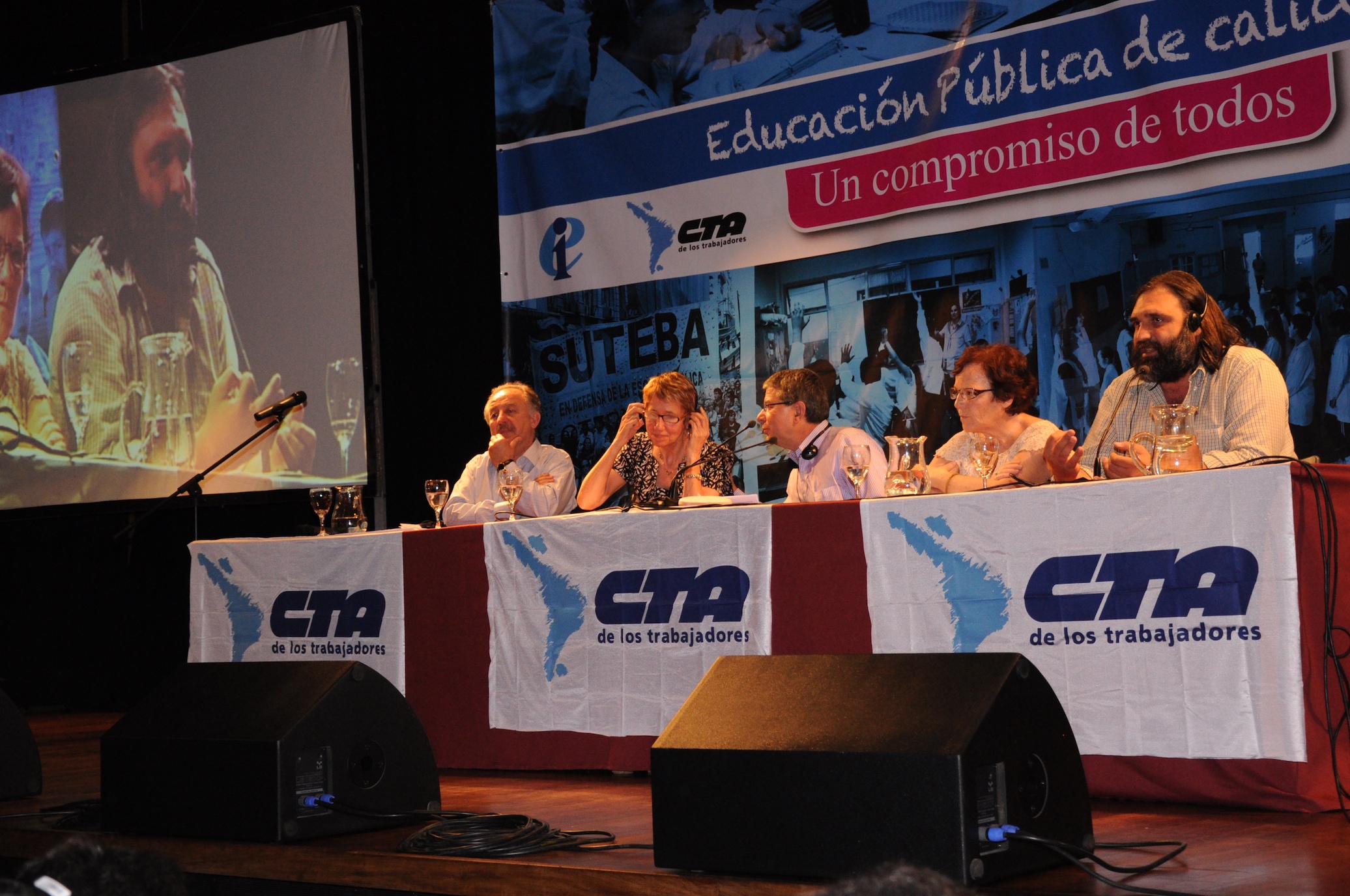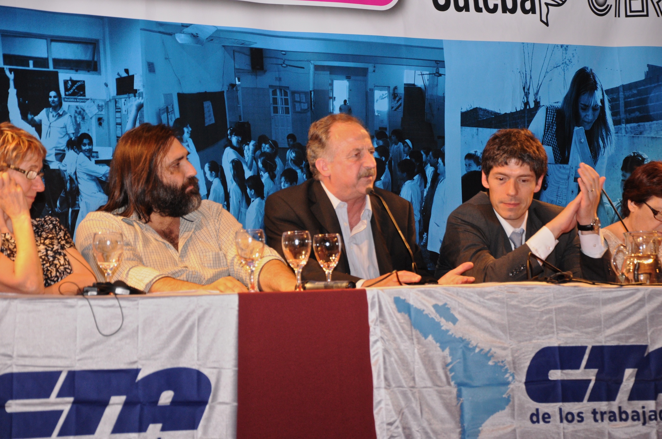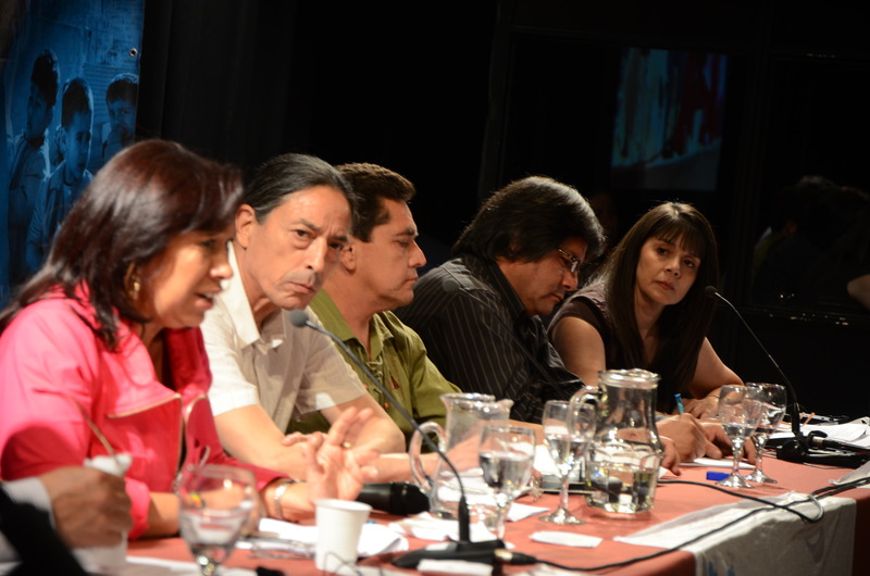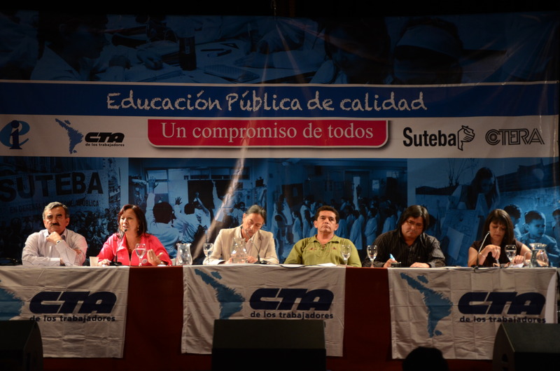 El primer panel “Educación Pública de calidad, Desafíos y perspectivas para las organizaciones de trabajadores de la educación” estuvo integrado por Stella Maldonado, Secretaria General de CTERA, Hugo Yasky, Secretario General de CTA Nacional, Roberto Baradel, Secretario General de SUTEBA y CTA Buenos Aires y Susan Hopgood, Presidenta de la Internacional de la Educación.