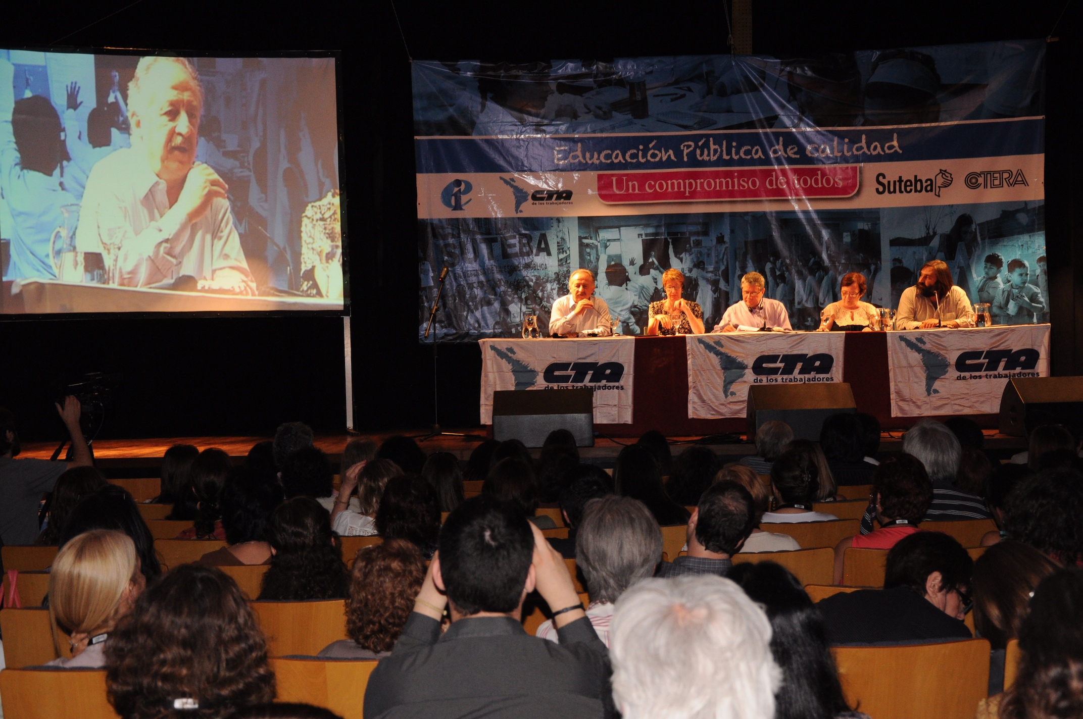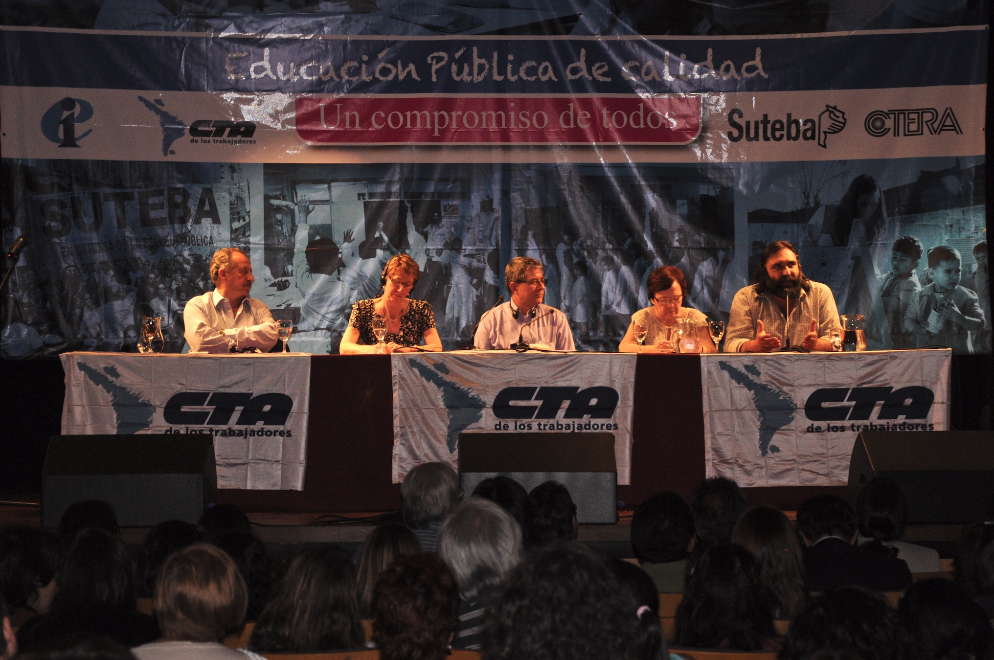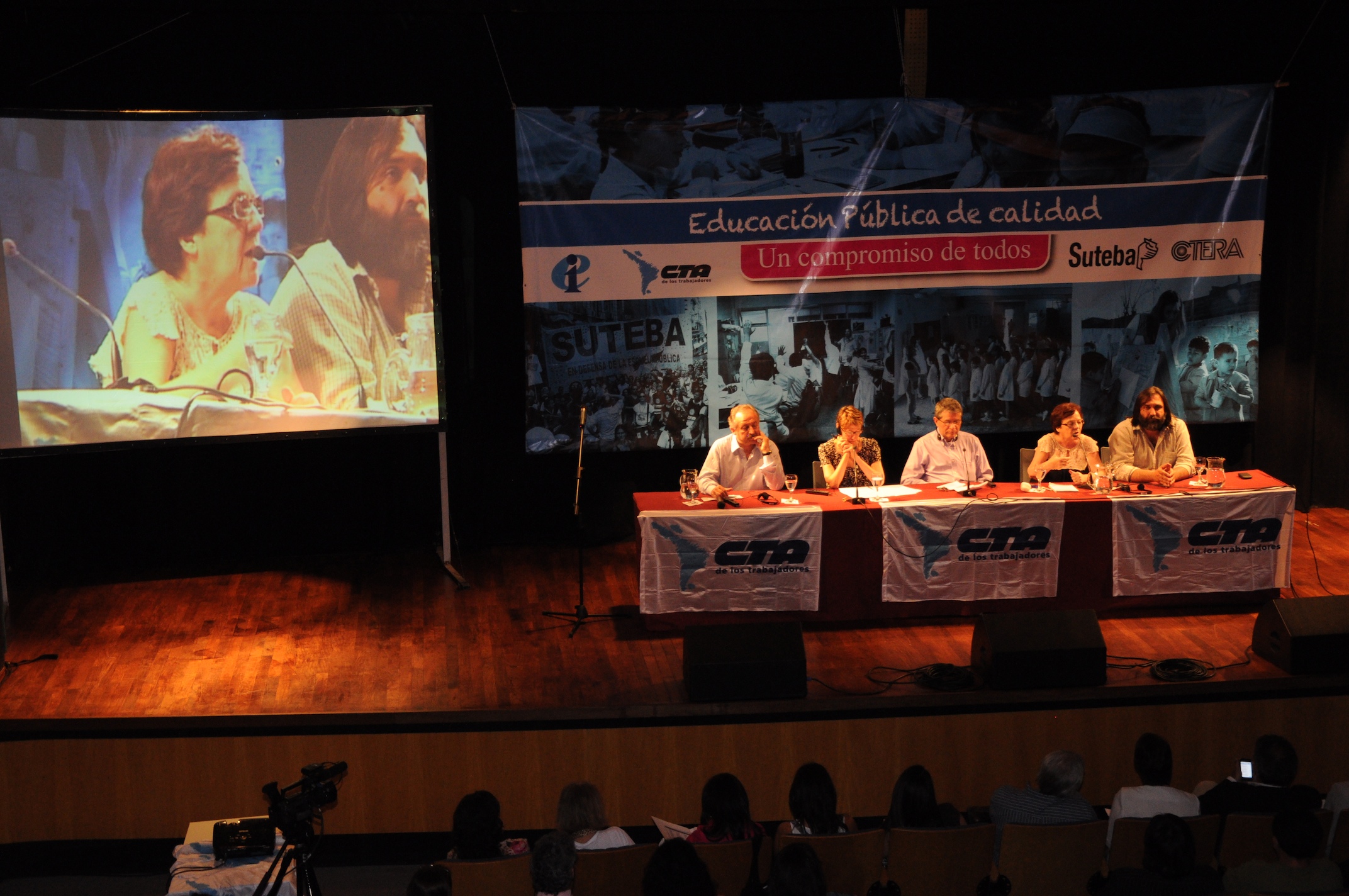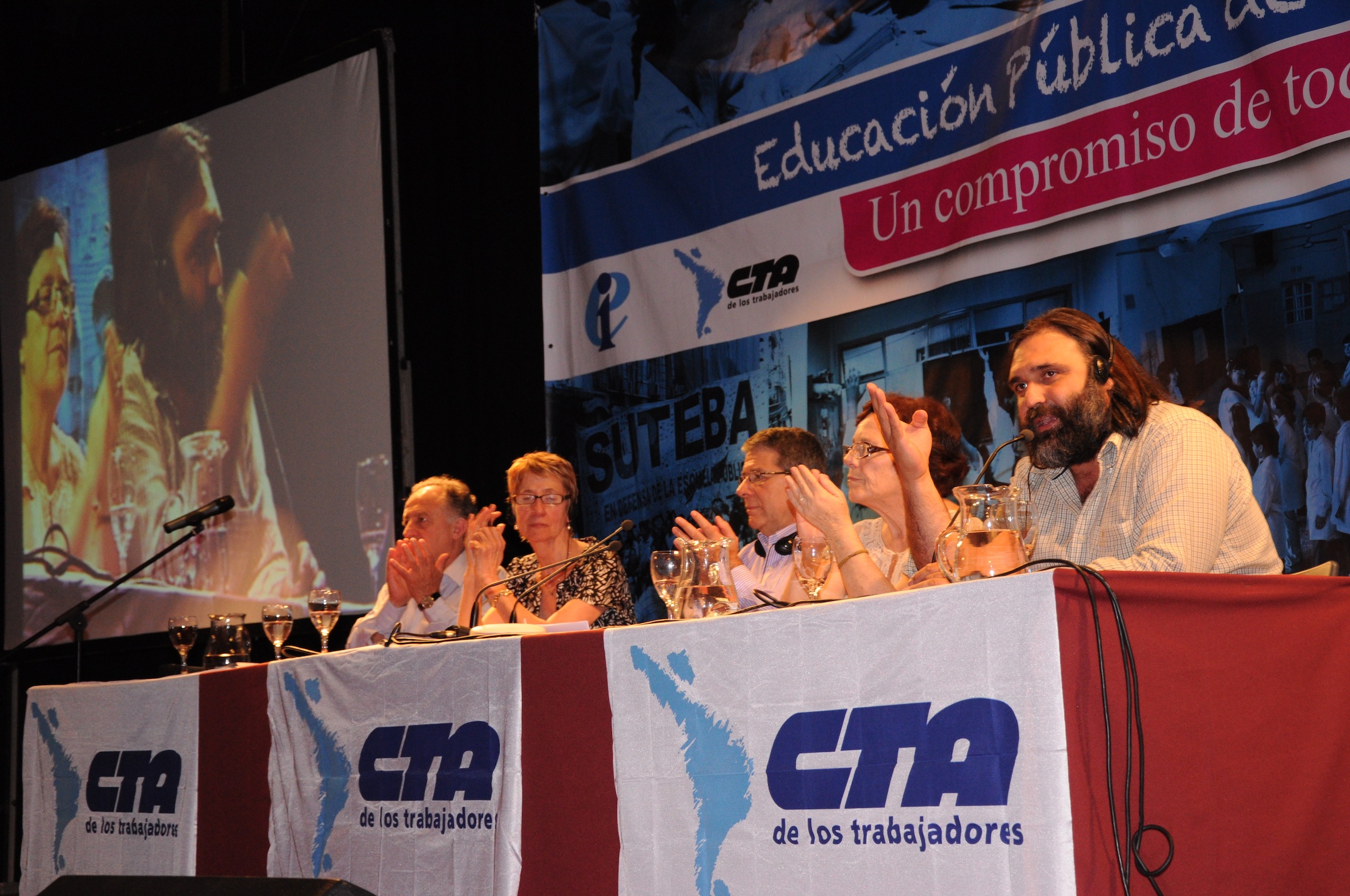 El primer panel “Educación Pública de calidad, Desafíos y perspectivas para las organizaciones de trabajadores de la educación” estuvo integrado por Stella Maldonado, Secretaria General de CTERA, Hugo Yasky, Secretario General de CTA Nacional, Roberto Baradel, Secretario General de SUTEBA y CTA Buenos Aires y Susan Hopgood, Presidenta de la Internacional de la Educación.